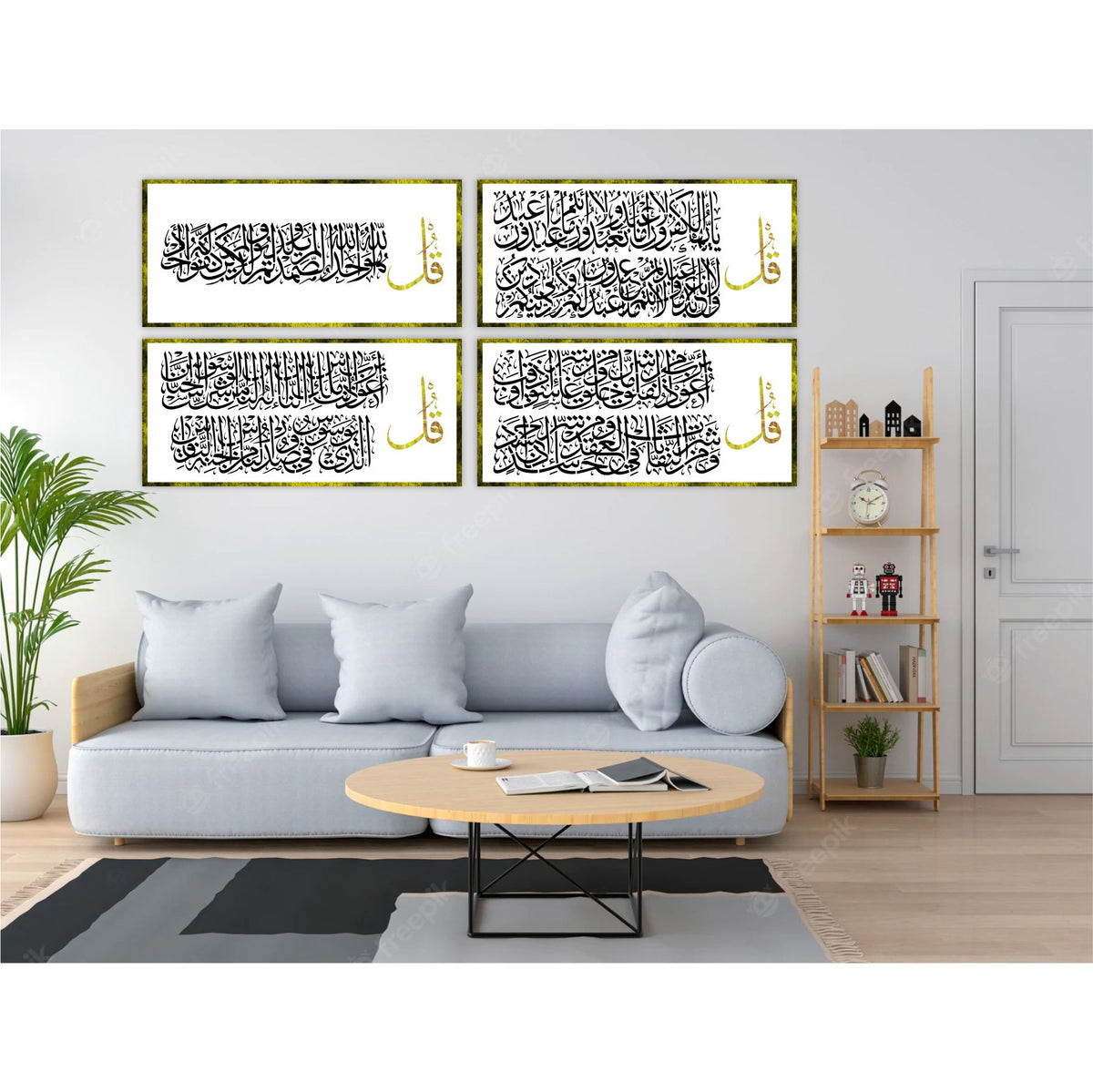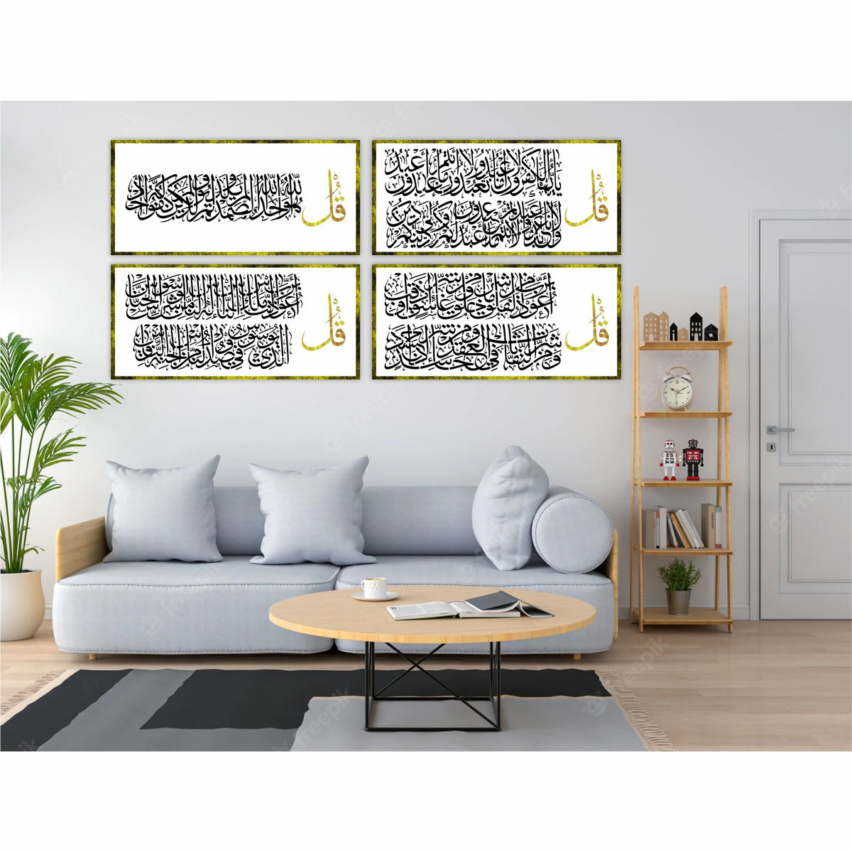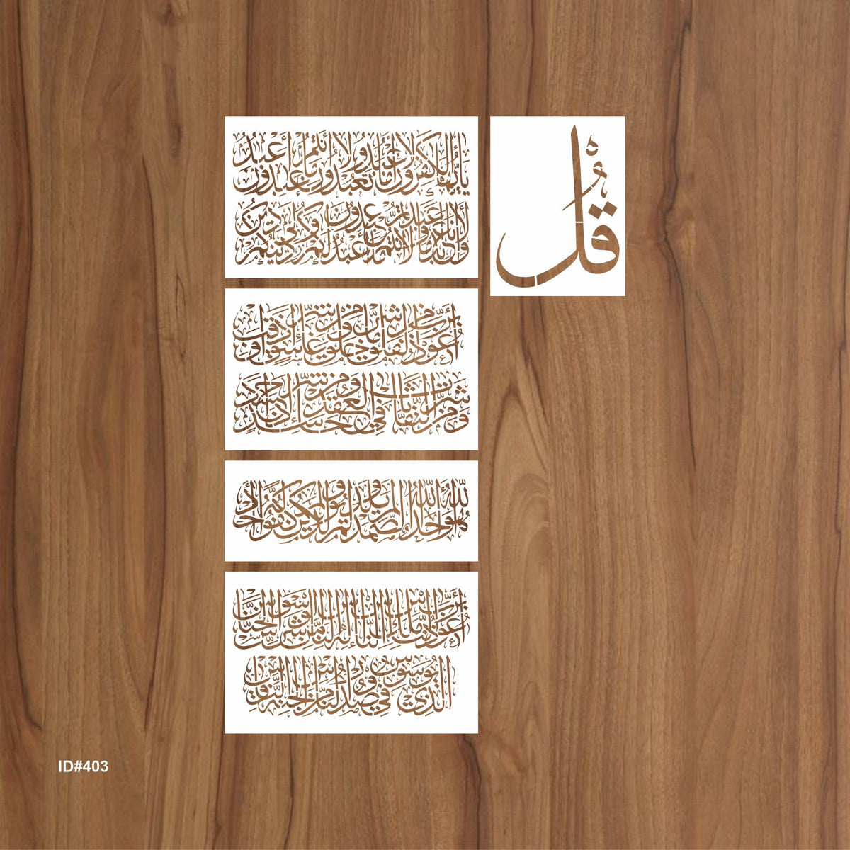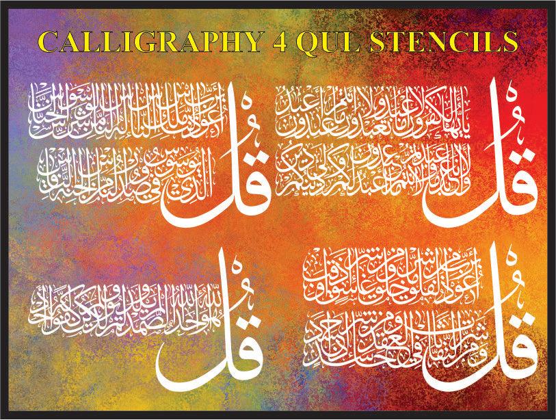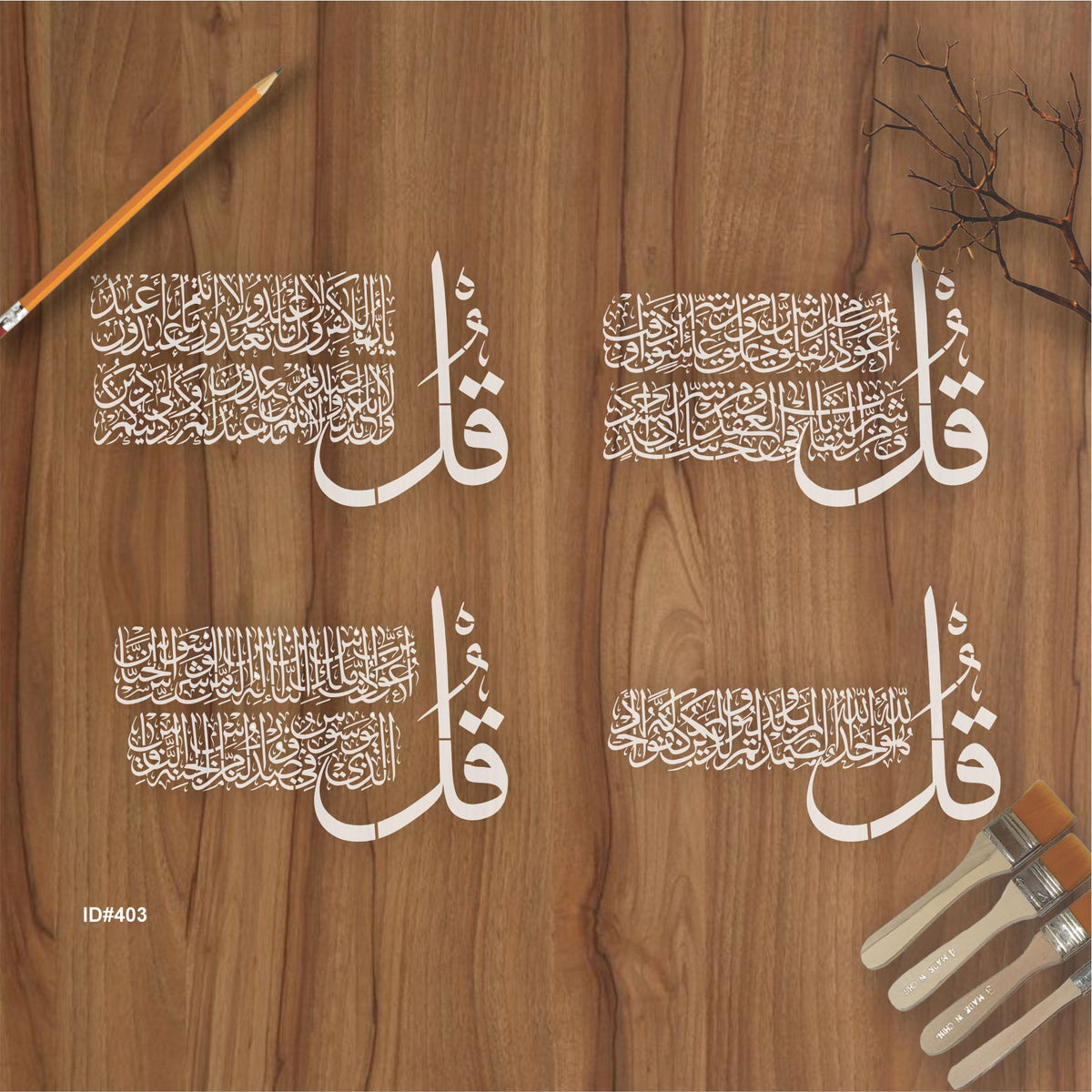 4 Qul Islamic Calligraphy Islamic Reusable Stencil for Canvas and wall painting.ID #403