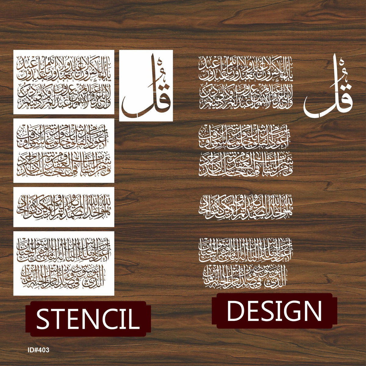 Islamic Calligraphy Stencil of 4 Qul Islamic Calligraphy Islamic For wall decoration, used for Canvas and scrapbooking, Our wall stencils are unbreakable and reusable, which can be used with different kinds of paints and techniques, find more calligraphy stencils, floral stencils, Mandela stencils, in our store.
