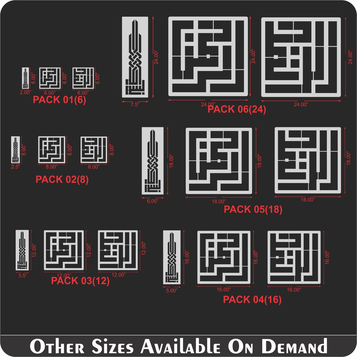 Pack of Three Calligraphy Islamic Reusable Stencil for Canvas and wall painting.ID#4103