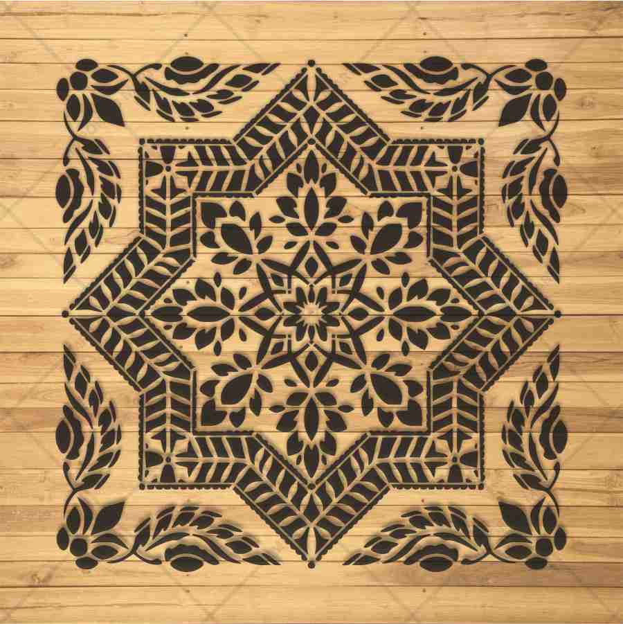Floral Geometric Mandala Stencil for Wall, Floor & Furniture Art – Indian Folk Pattern Design – ID# 700