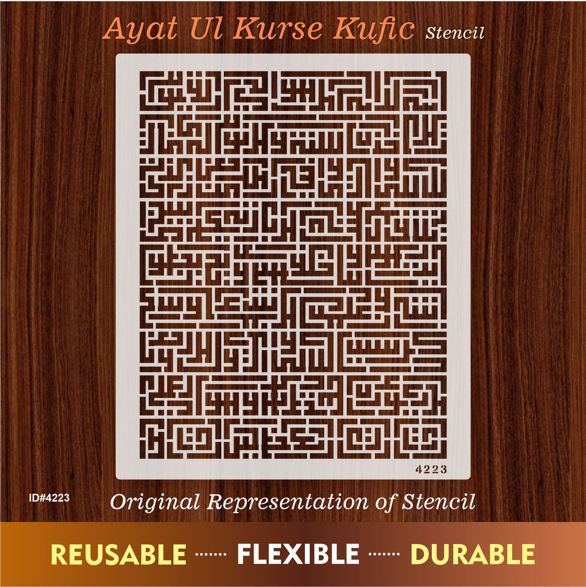 Islamic Calligraphy Stencil of Ayat Ul Kursi For wall decoration, used for Canvas, and scrapbooking, Our wall stencils are unbreakable and reusable and can be used with different kinds of paints and techniques, find more calligraphy stencils, floral stencils, and Mandela stencils, in our store.
