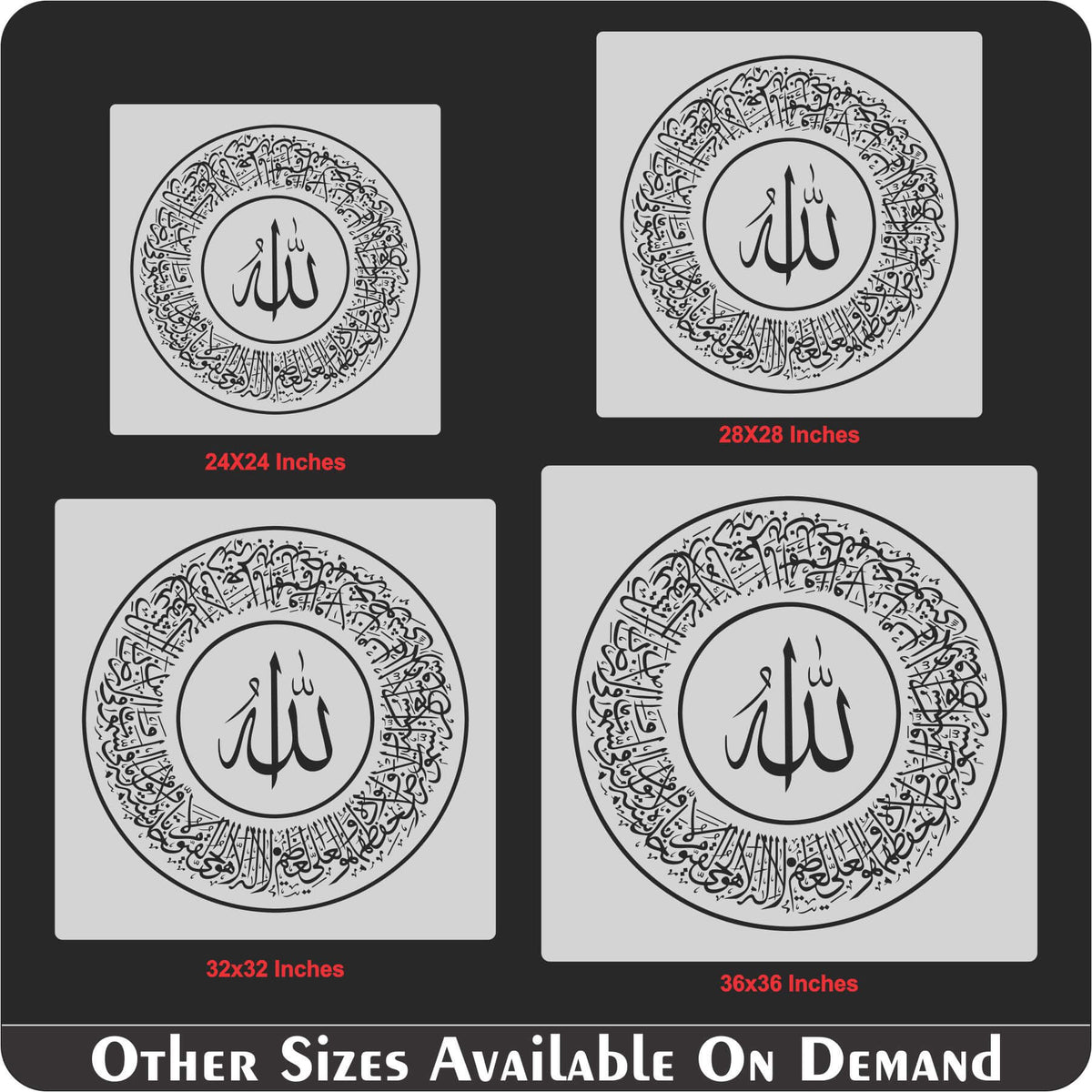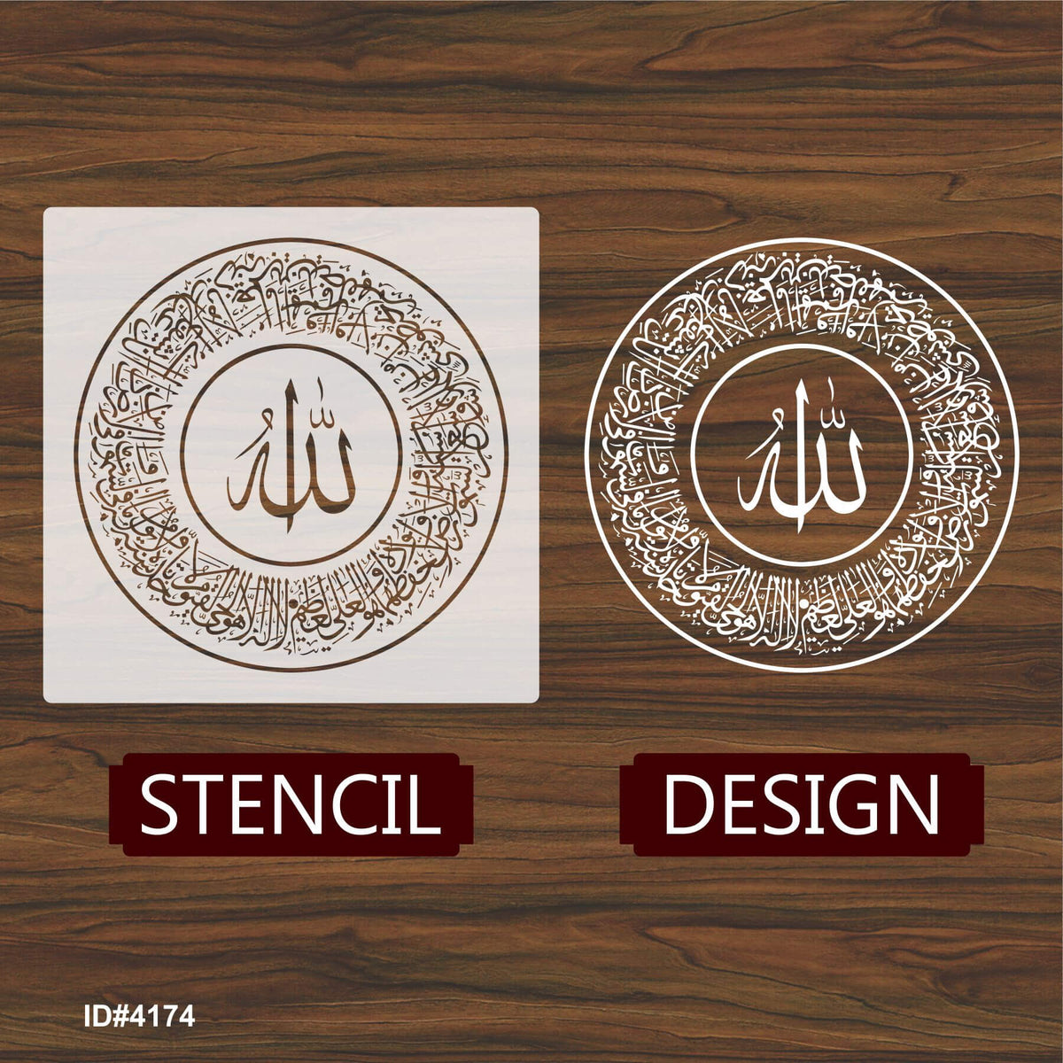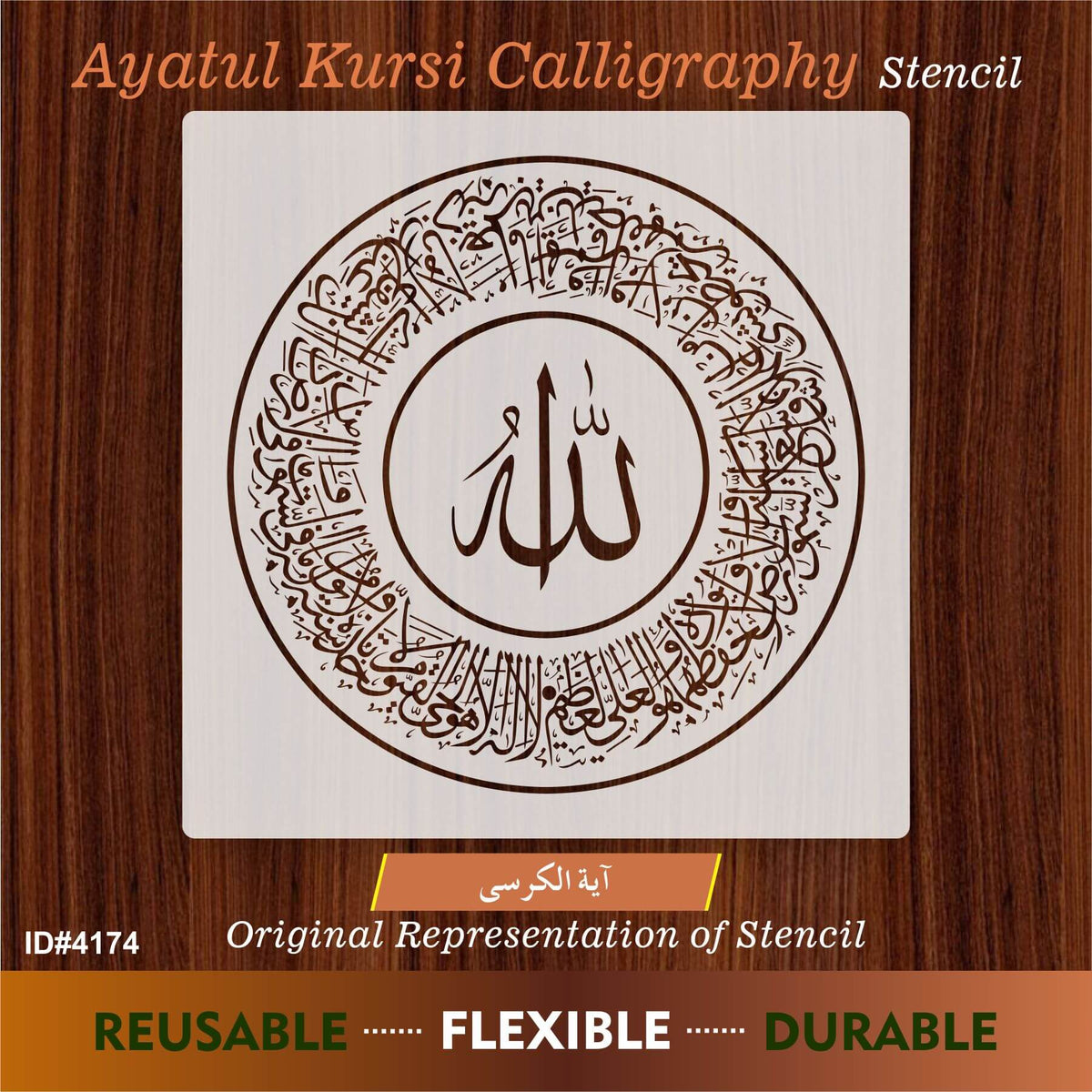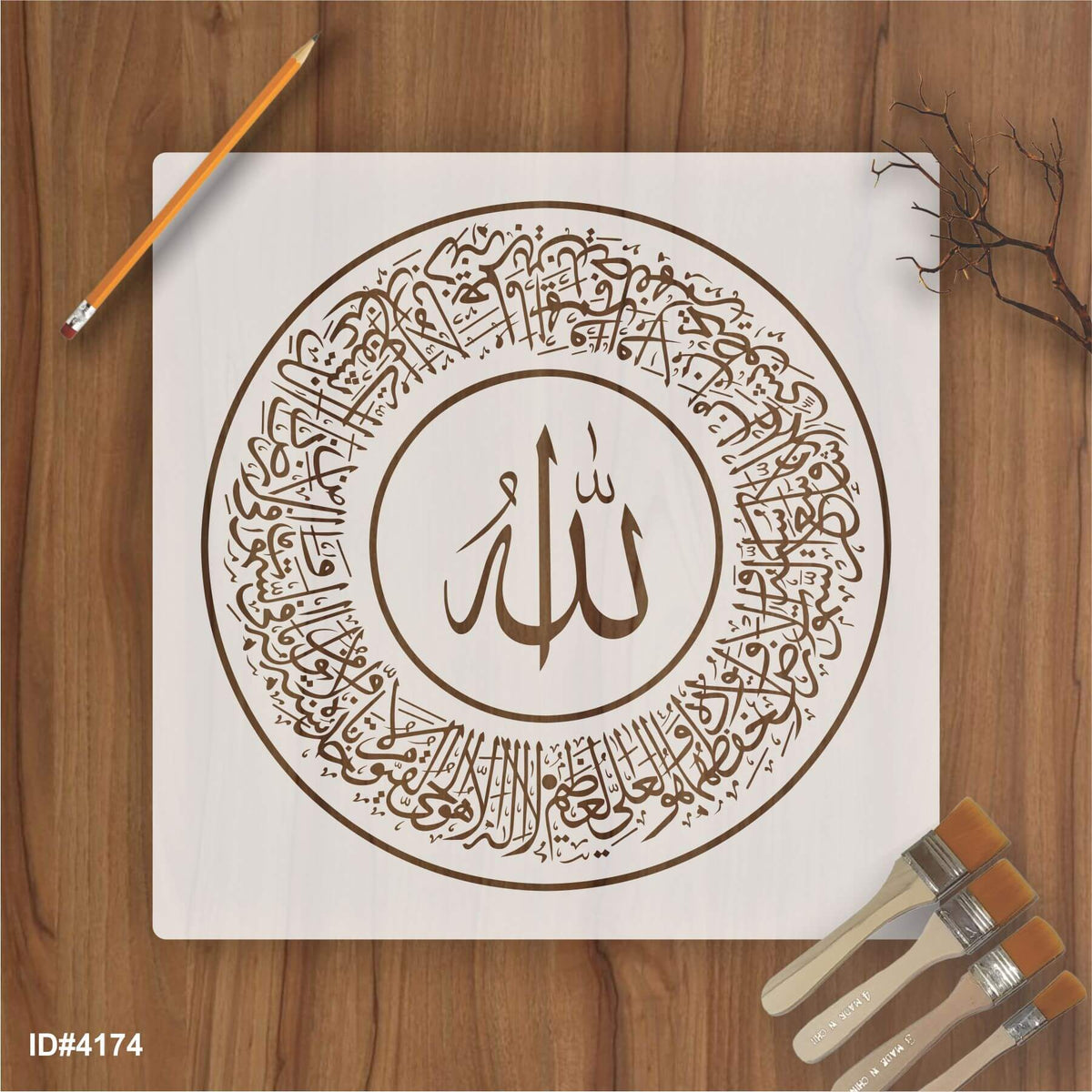 Islamic Calligraphy Stencil of Ayat ul kursi For wall decoration, used for Canvas and scrapbooking, Our wall stencils are unbreakable and reusable, which can be used with different kinds of paints and techniques, find more calligraphy stencils, floral stencils, Mandela stencils, in our store.