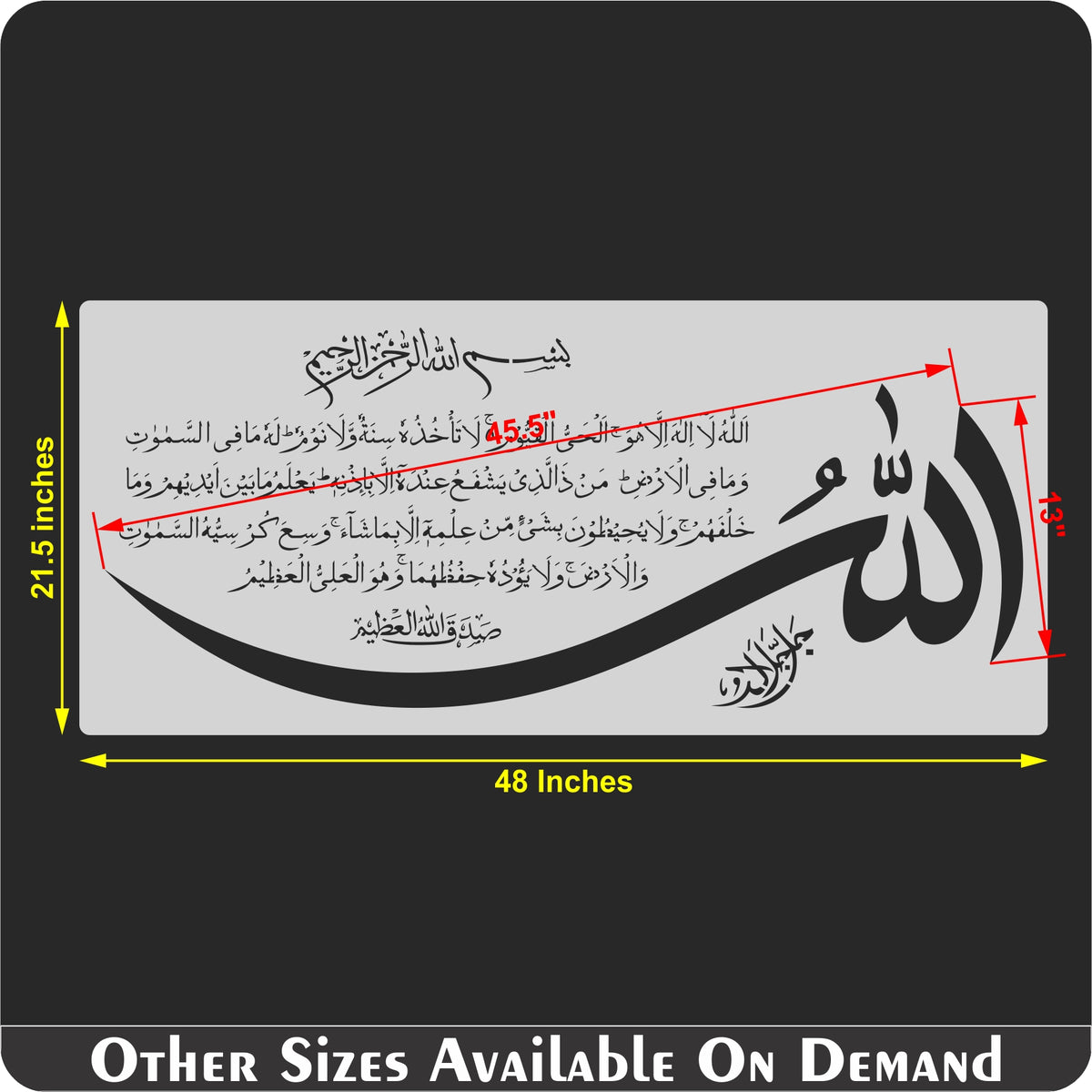 Islamic Calligraphy Stencil of Ayat Ul Kursi For wall decoration, used for Canvas, and scrapbooking, Our wall stencils are unbreakable and reusable and can be used with different kinds of paints and techniques, find more calligraphy stencils, floral stencils, and Mandela stencils, in our store.