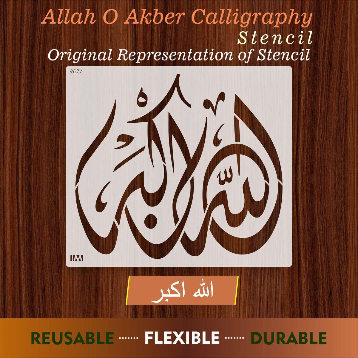 Allah-hu-Akbar Calligraphy Islamic Reusable Stencil for Canvas and wall painting.ID#4071