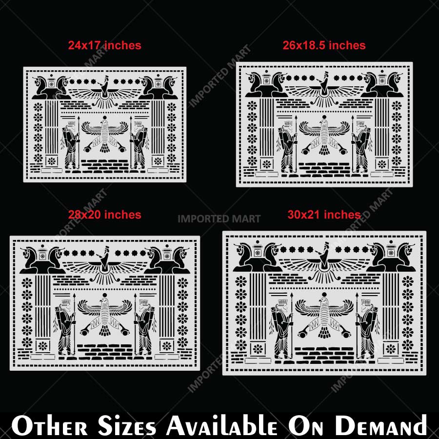 Ancient Persian Frieze Stencil for Wall, Furniture & Floor Décor – Royal Achaemenid Eagle & Guard Pattern – ID# 729