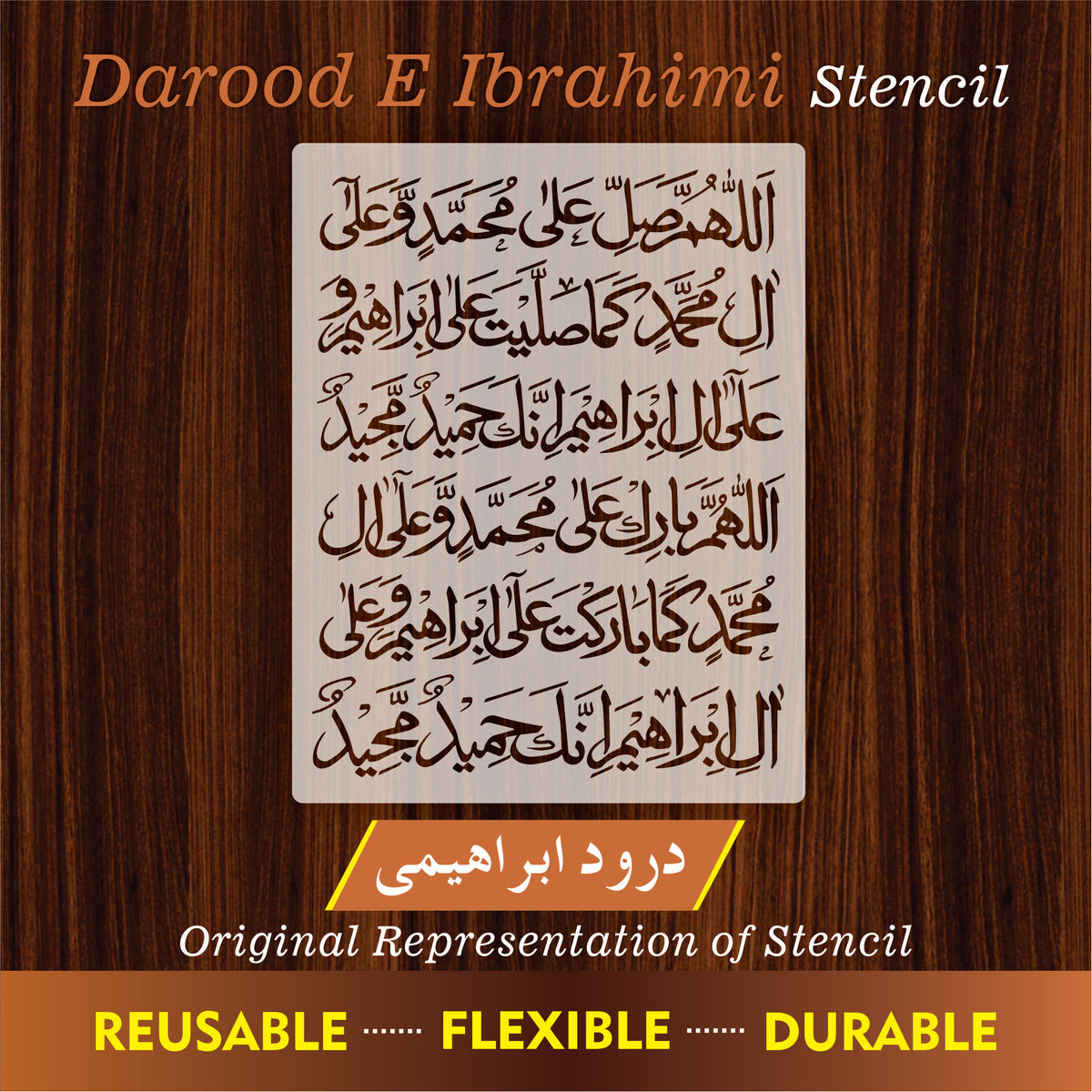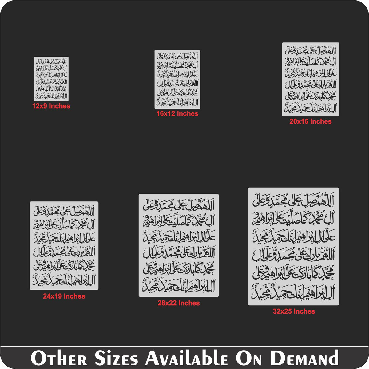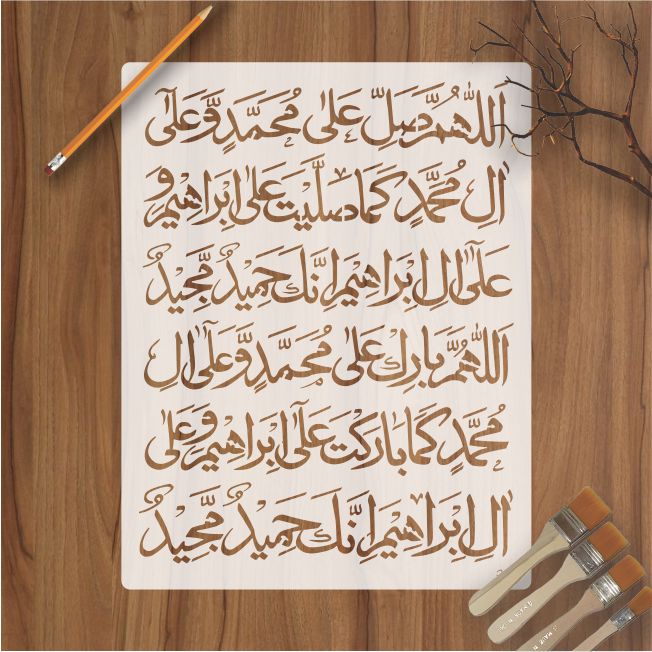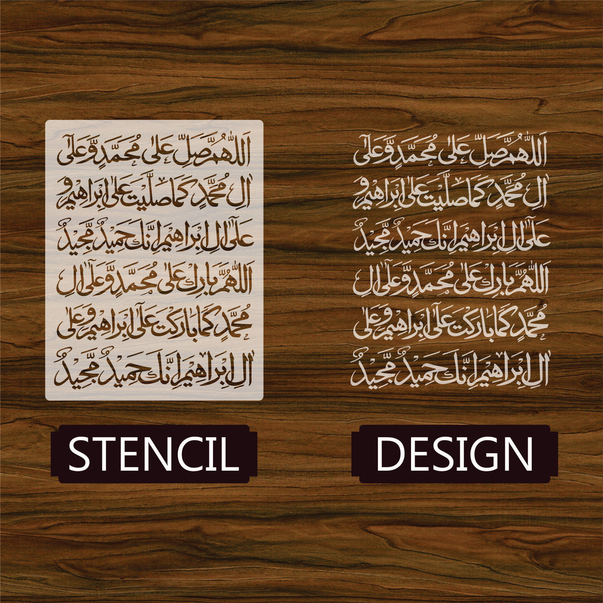 Islamic Calligraphy Stencil of Darood e Ibrahimi Calligraphy Islamic For wall decoration, used for Canvas and scrapbooking, Our wall stencils are unbreakable and reusable, which can be used with different kinds of paints and techniques, find more calligraphy stencils, floral stencils, Mandela stencils, in our store.