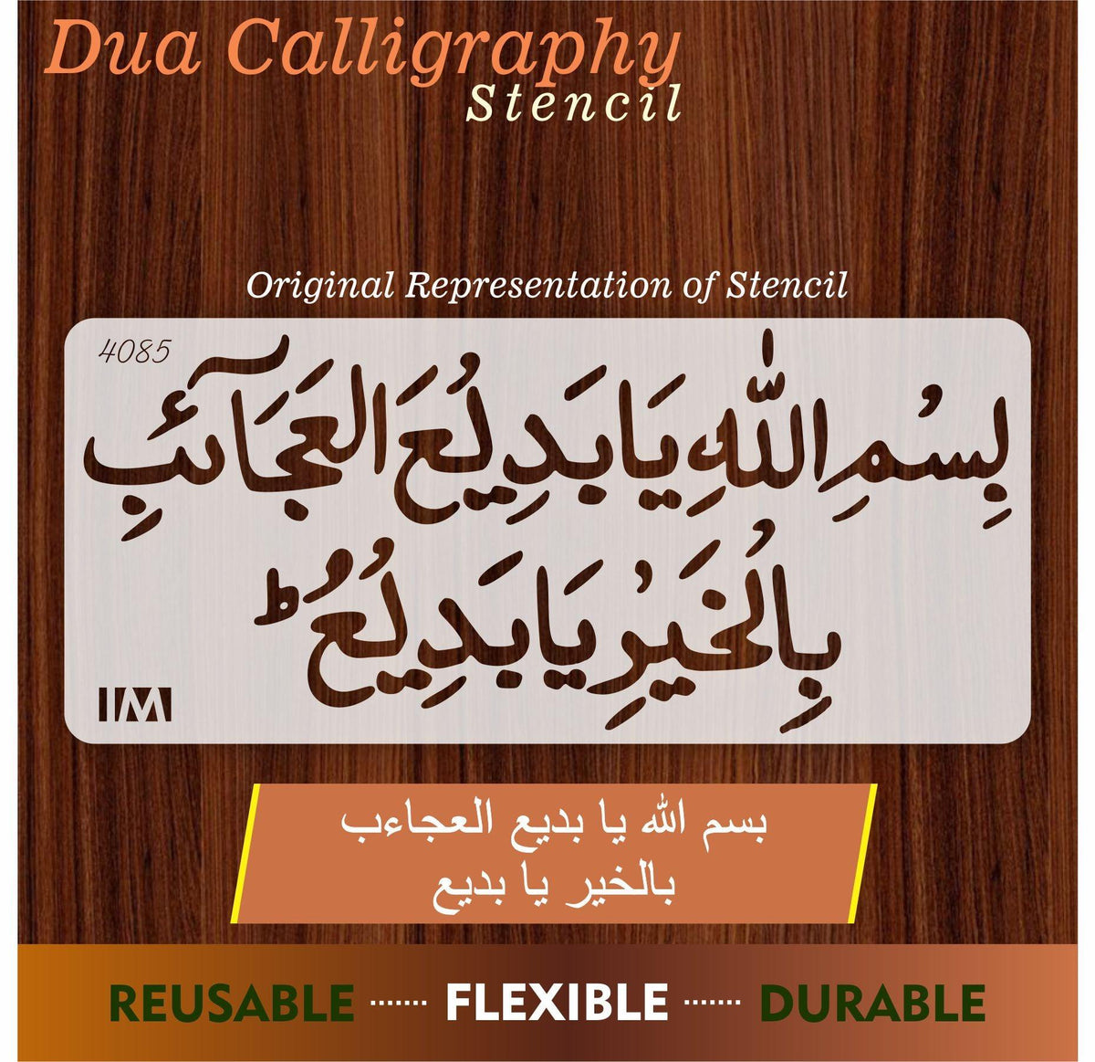 Dua(bismillah he ya badi ul ajaib) Calligraphy Islamic Reusable Stencil for Canvas and wall painting.ID#4085