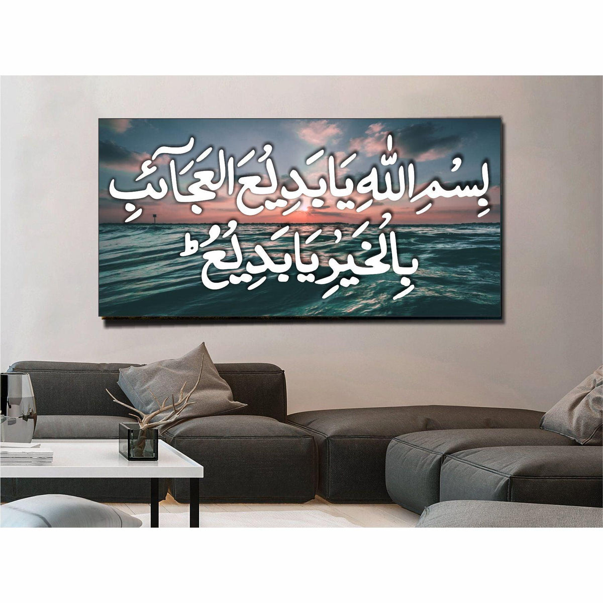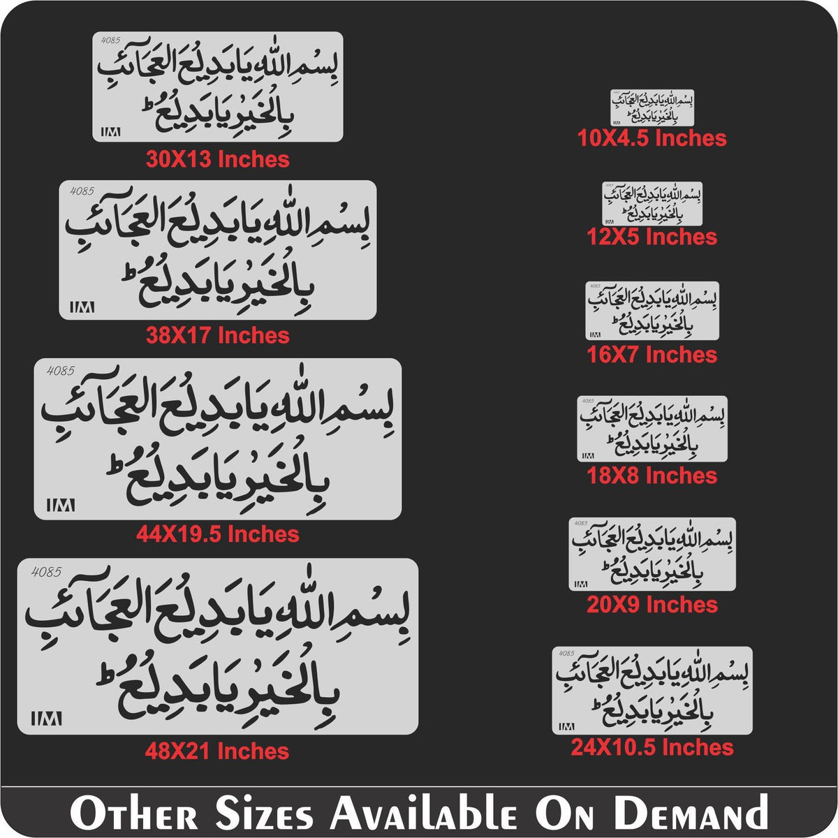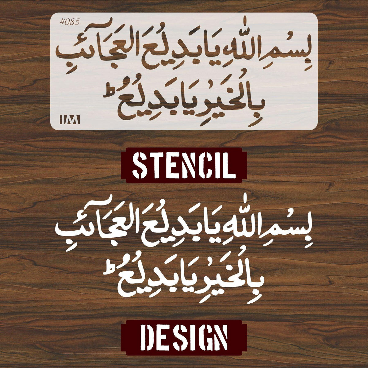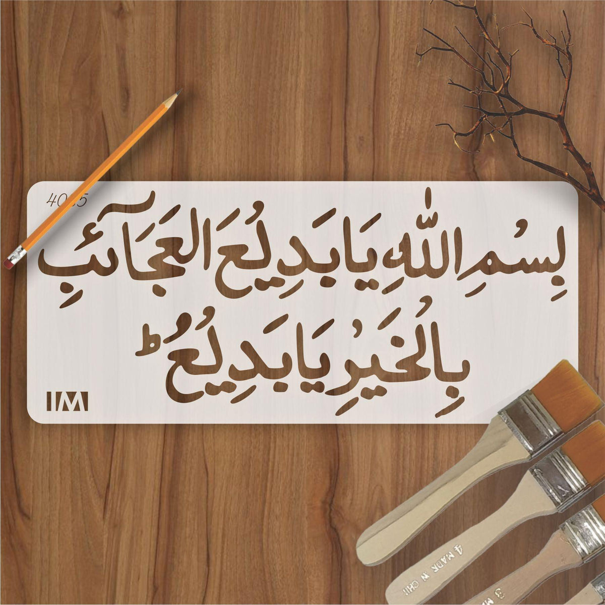Islamic Calligraphy Stencil of Dua(bismillah he ya badi ul ajaib) For wall decoration, used for Canvas and scrapbooking, Our wall stencils are unbreakable and reusable, which can be used with different kinds of paints and techniques, find more calligraphy stencils, floral stencils, Mandela stencils, in our store.