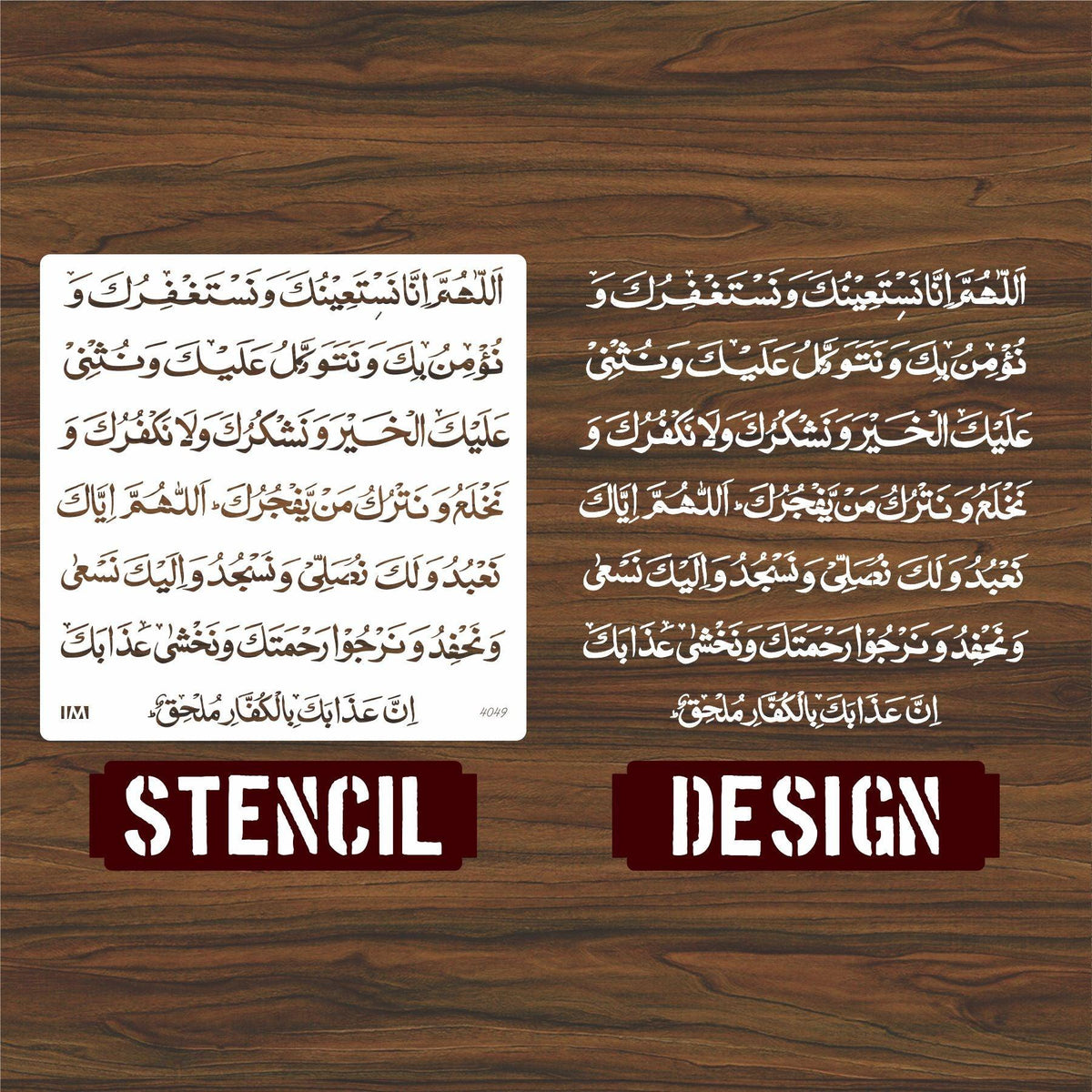 Islamic Calligraphy Stencil of  Dua E Qanoot For wall decoration, used for Canvas and scrapbooking, Our wall stencils are unbreakable and reusable, which can be used with different kinds of paints and techniques, find more calligraphy stencils, floral stencils, Mandela stencils, in our store.
