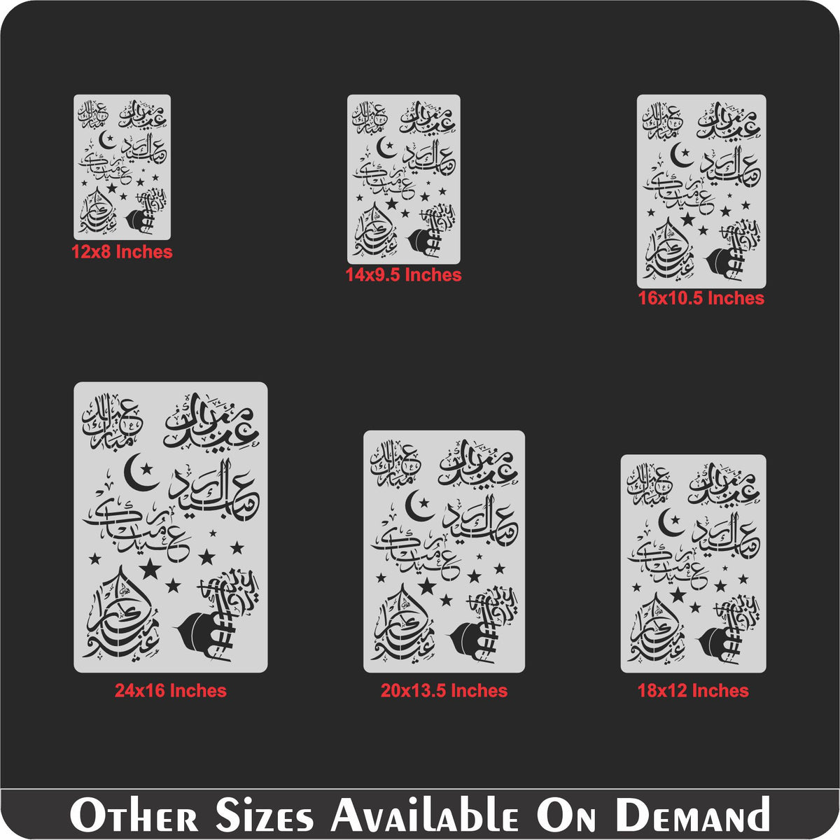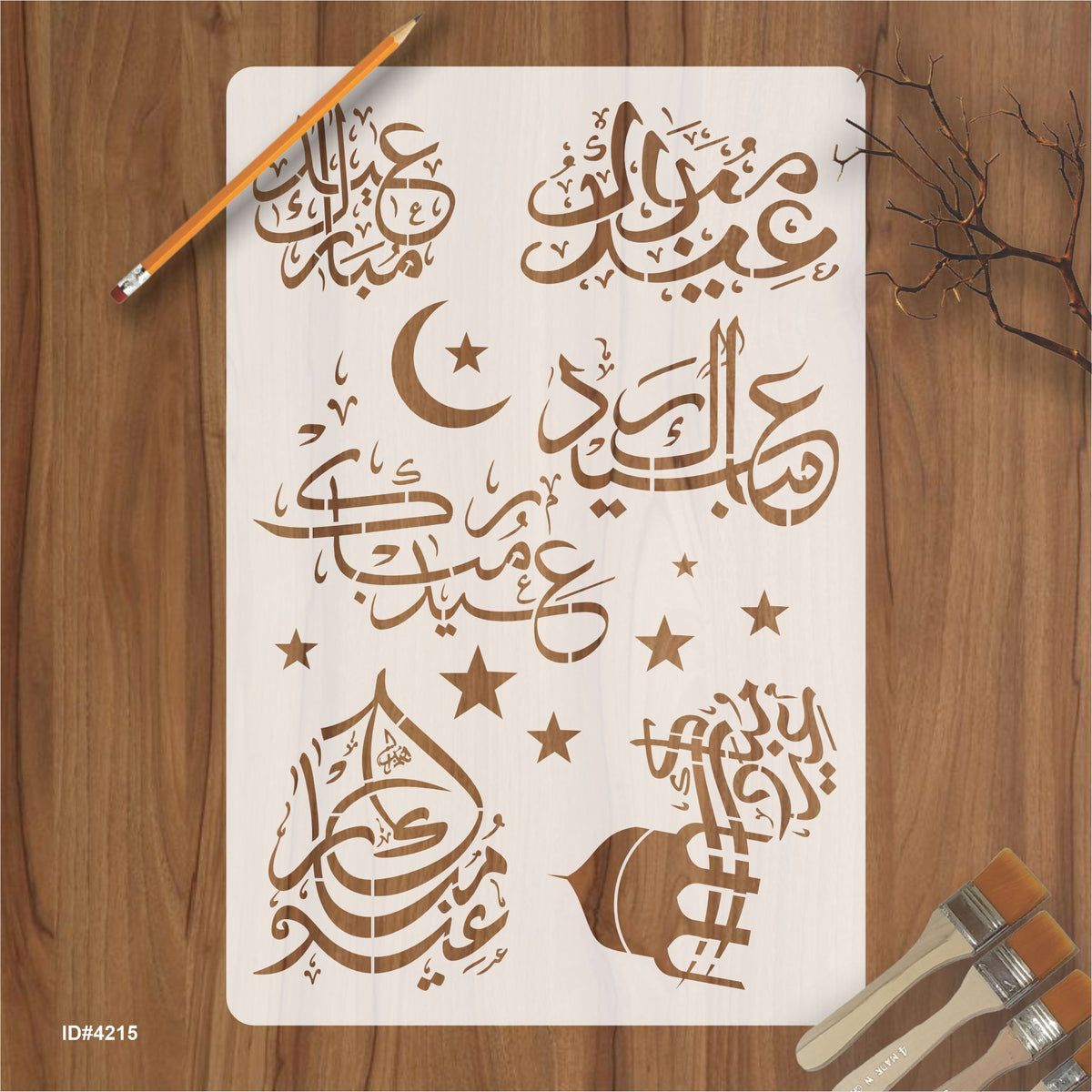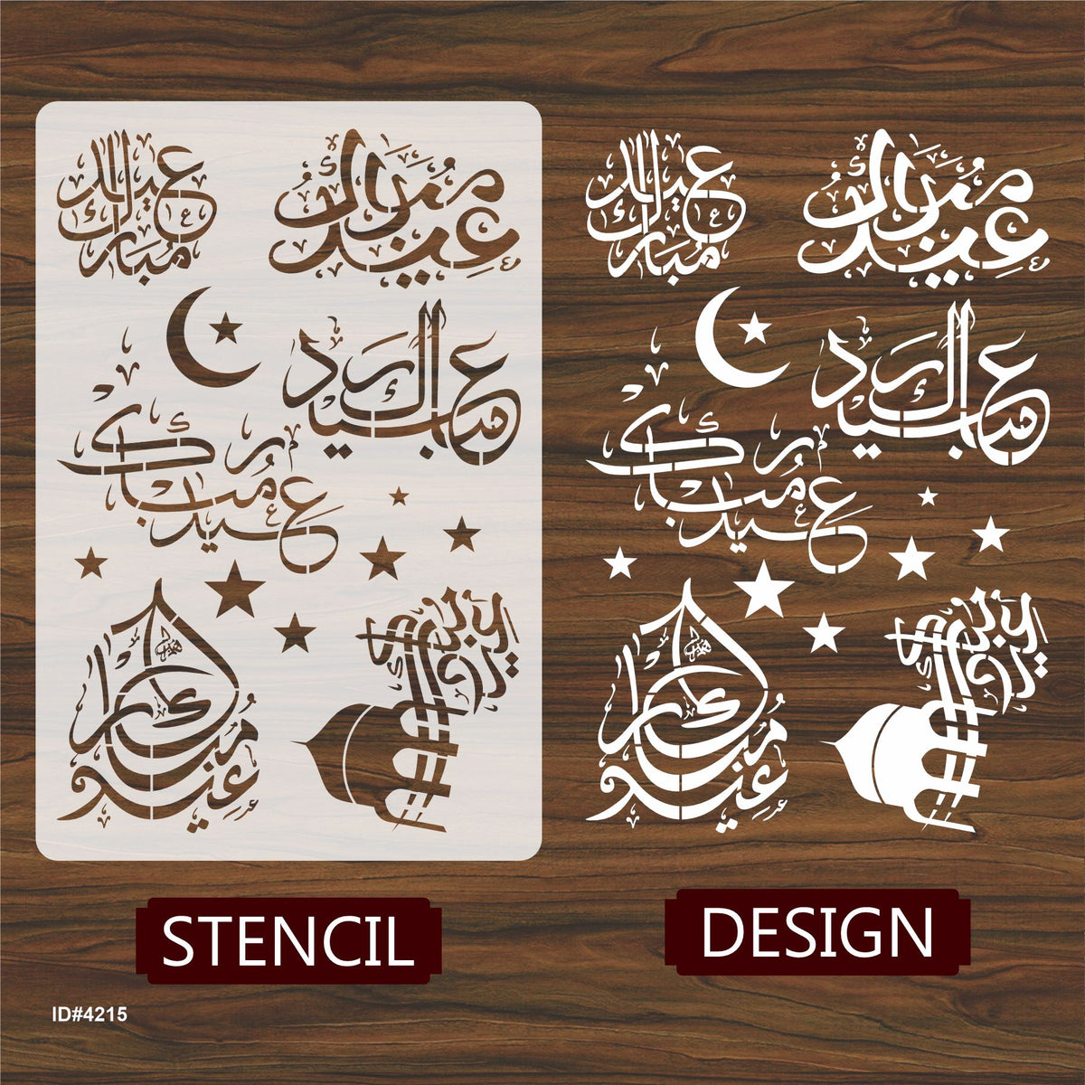 Islamic Calligraphy Stencil of Eid Mubarak For wall decoration, used for Canvas, scrapbooking, and Gift making Our wall stencils are unbreakable and reusable, which can be used with different kinds of paints and techniques, find more calligraphy stencils, floral stencils, Mandela stencils, in our store.