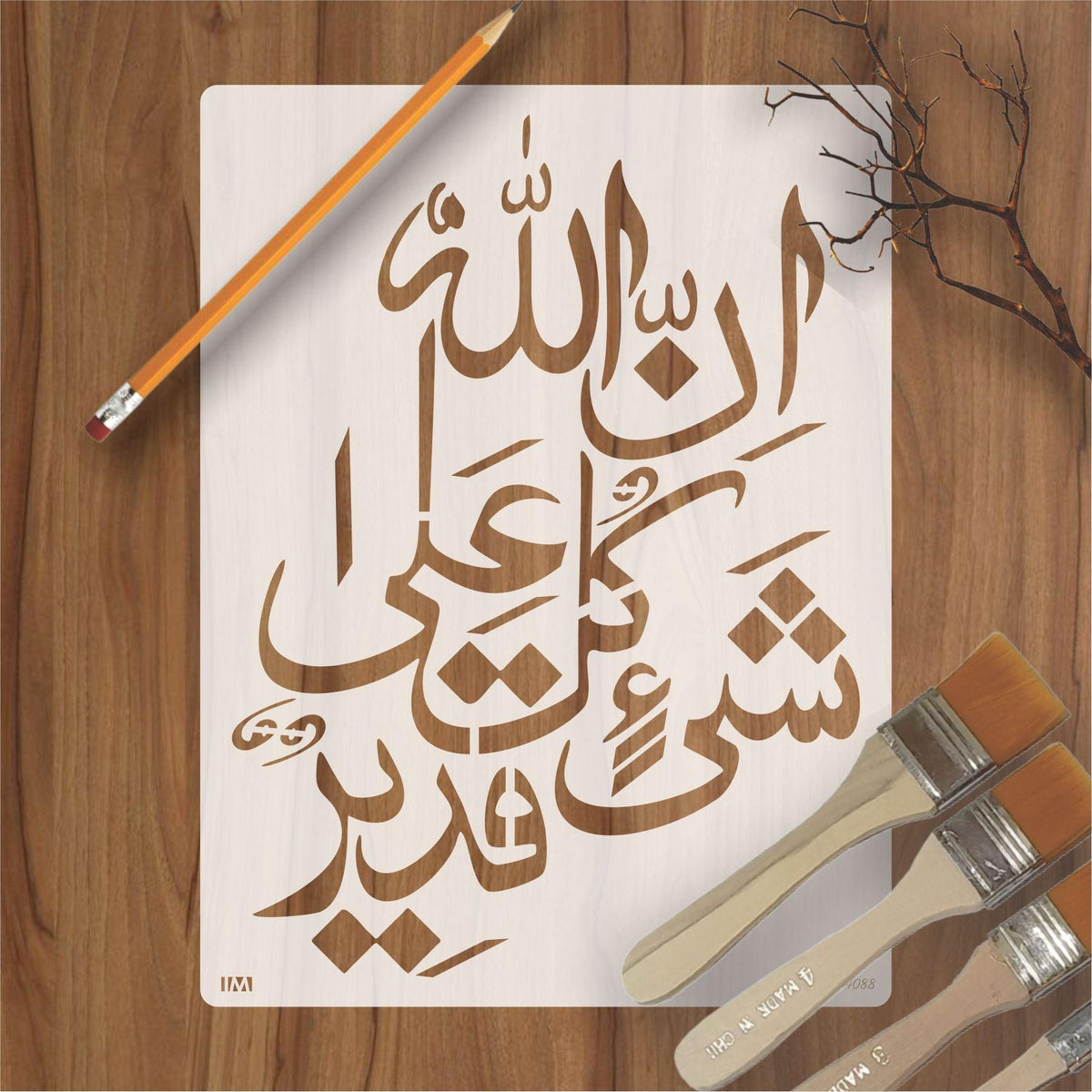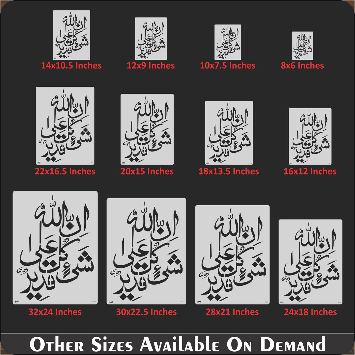 Islamic Calligraphy Stencil of innallaha ala kulli shayin qadeer For wall decoration, used for Canvas and scrapbooking, Our wall stencils are unbreakable and reusable, which can be used with different kinds of paints and techniques, find more calligraphy stencils, floral stencils, Mandela stencils, in our store.