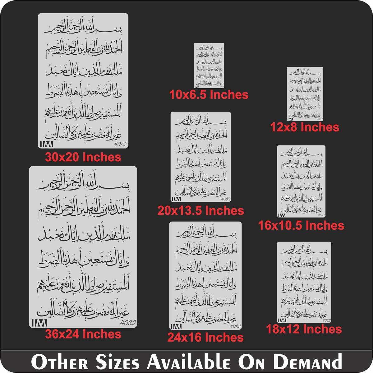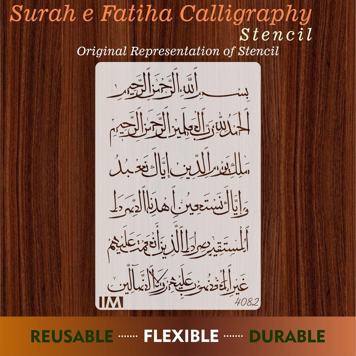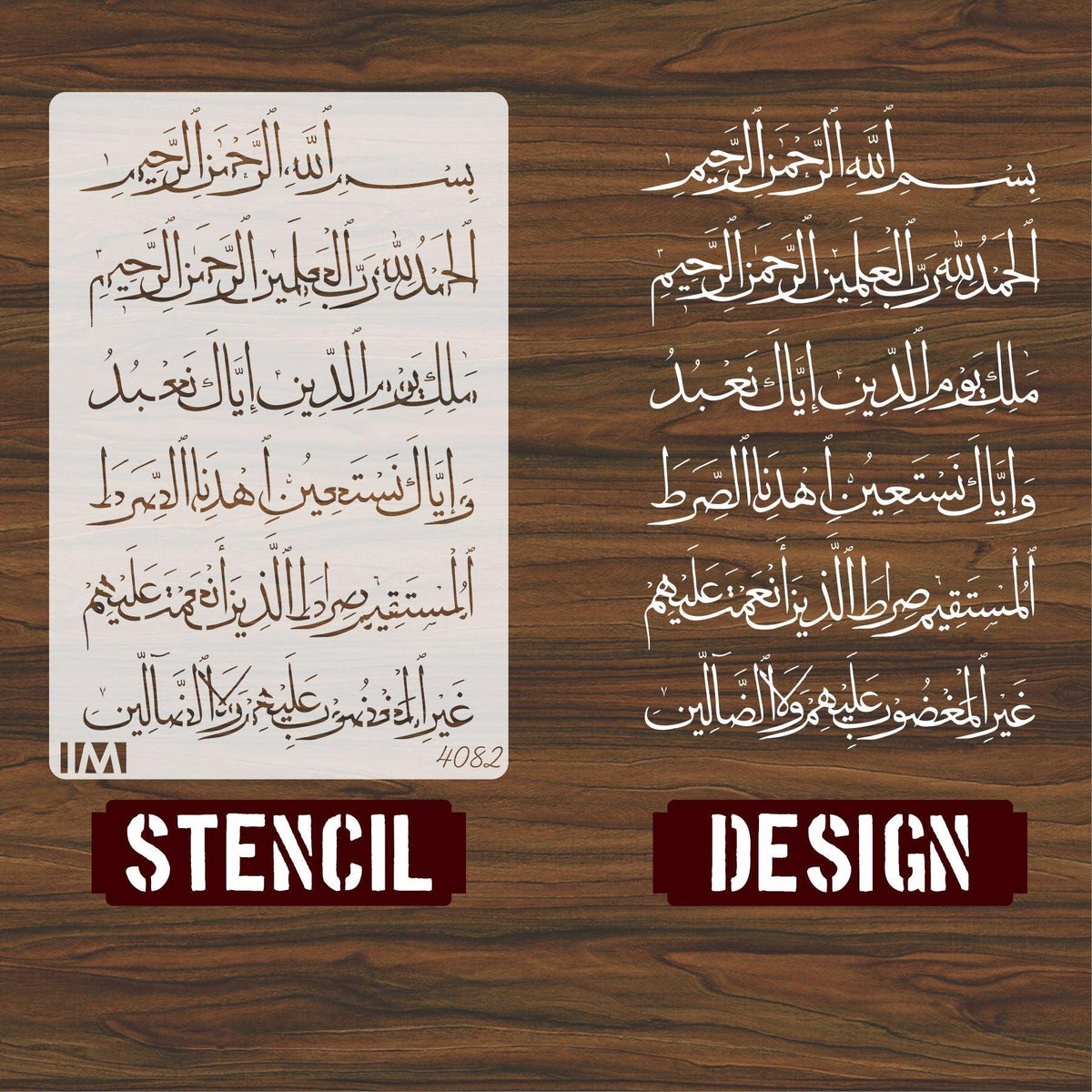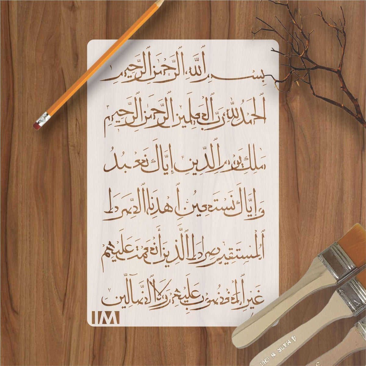 Islamic Calligraphy Stencil of Surah-e-Fatiha For wall decoration, used for Canvas and scrapbooking, Our wall stencils are unbreakable and reusable, which can be used with different kinds of paints and techniques, find more calligraphy stencils, floral stencils, Mandela stencils, in our store.