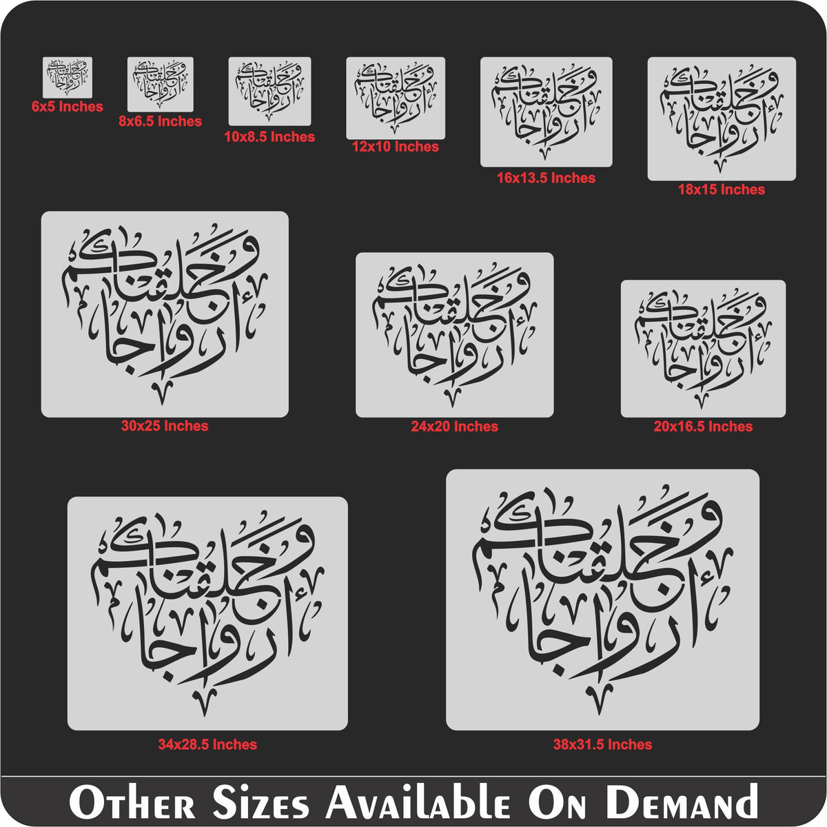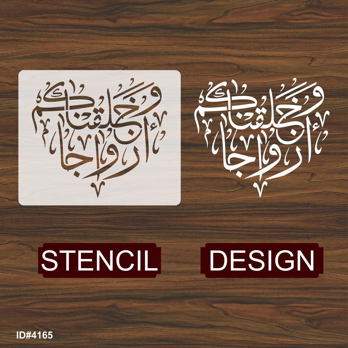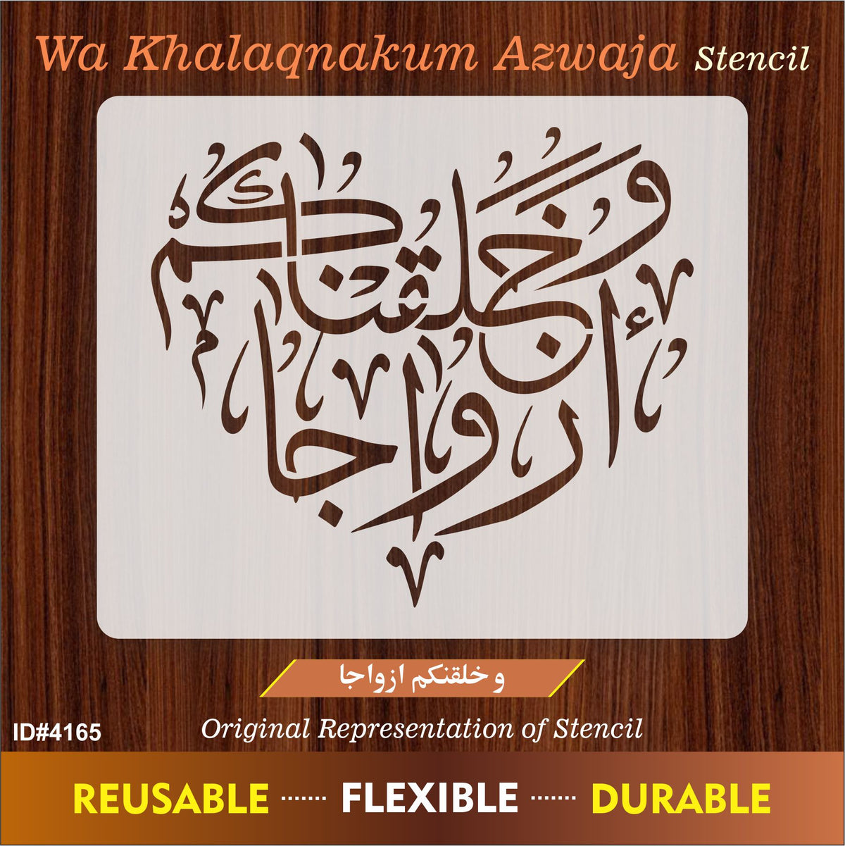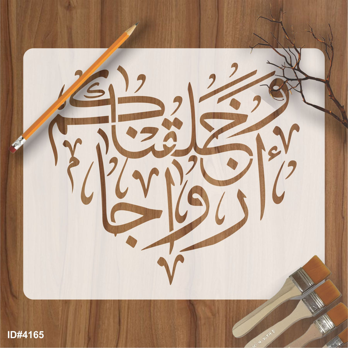 Wa khalaqnakum Azwaja Calligraphy Islamic Reusable Stencil for Canvas and wall painting.ID#4165