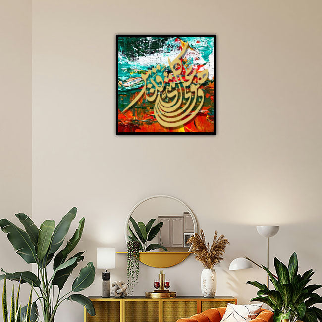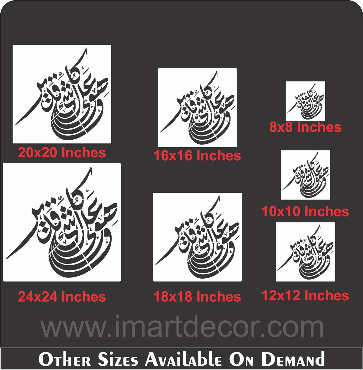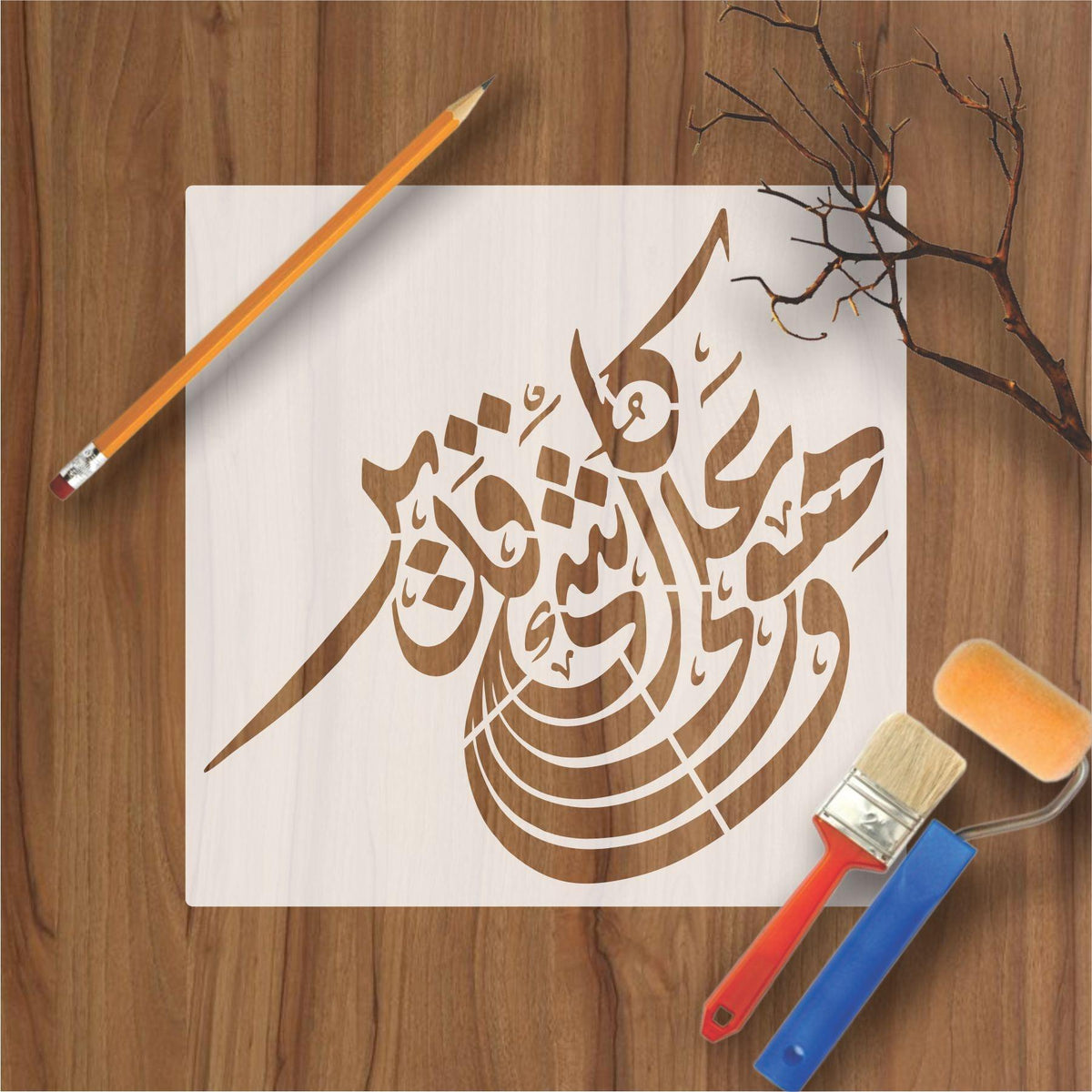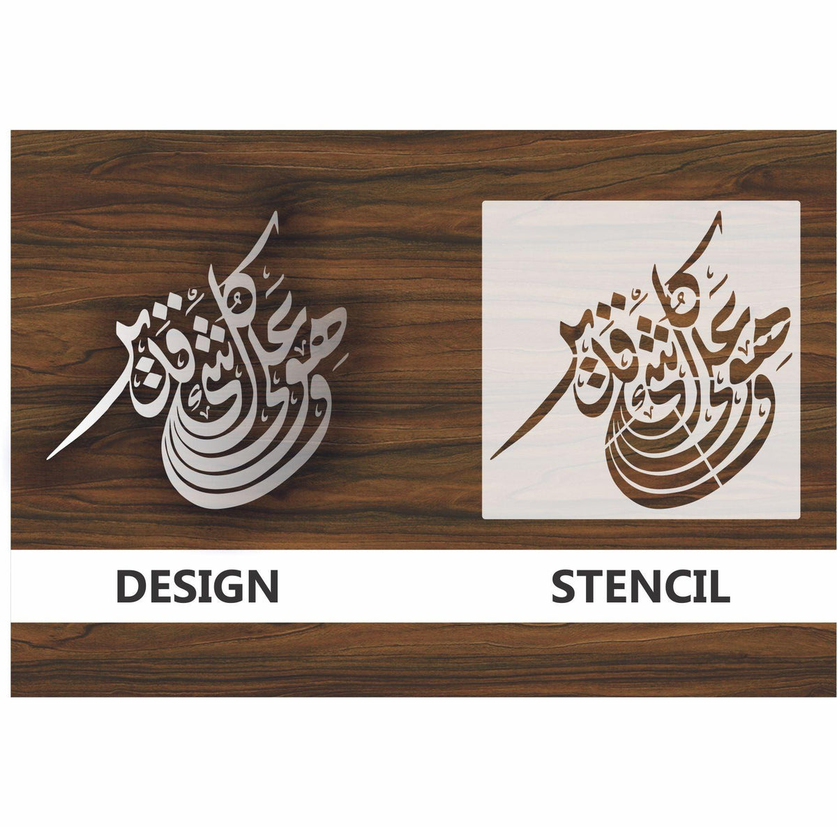Islamic Calligraphy Stencil wahuwa ala kulli shai in qadir for wall decoration, used for Canvas and scrapbooking, Our wall stencils are unbreakable and reusable, which can be used with different kinds of paints and techniques, find more calligraphy stencils, floral stencils, Mandela stencils, in our store.