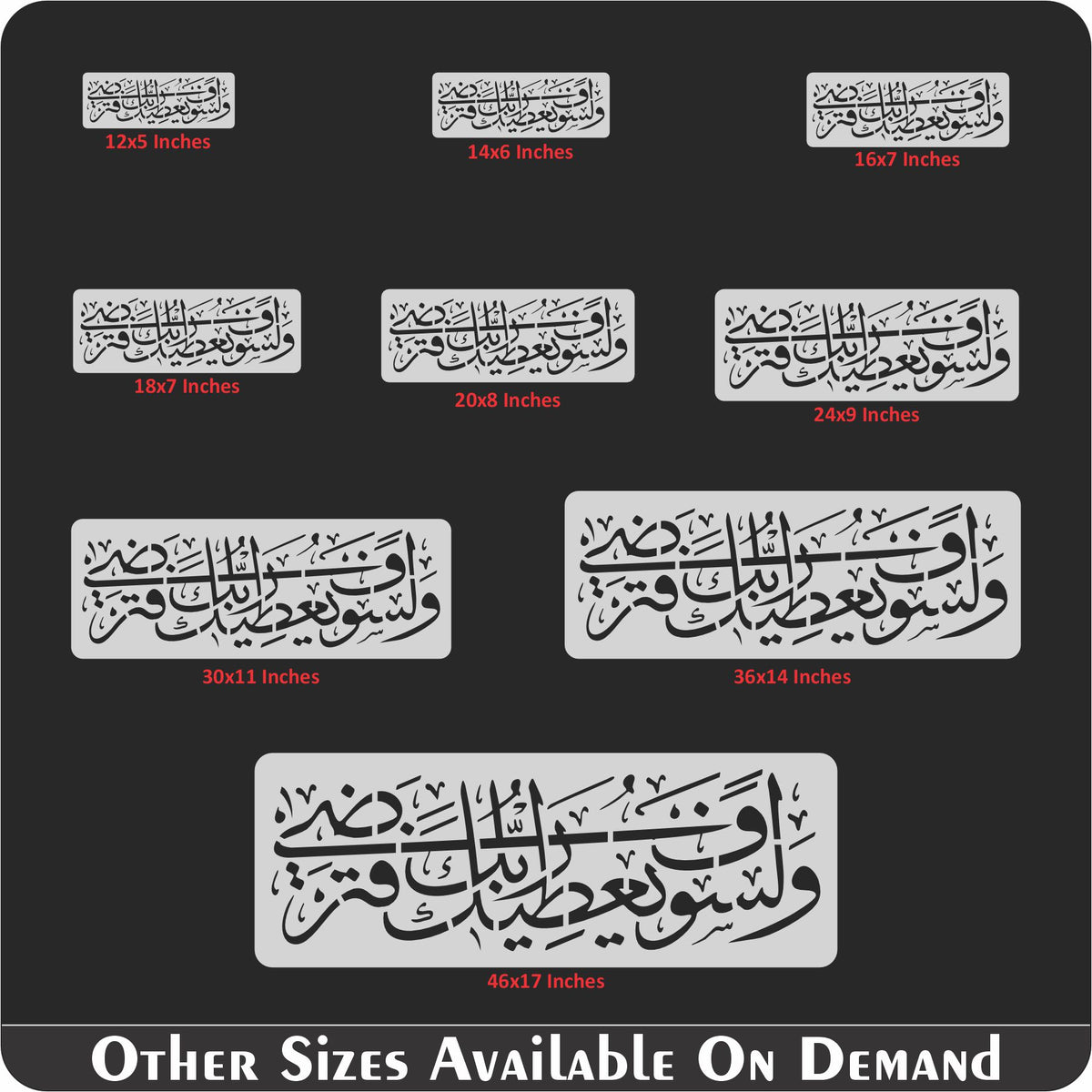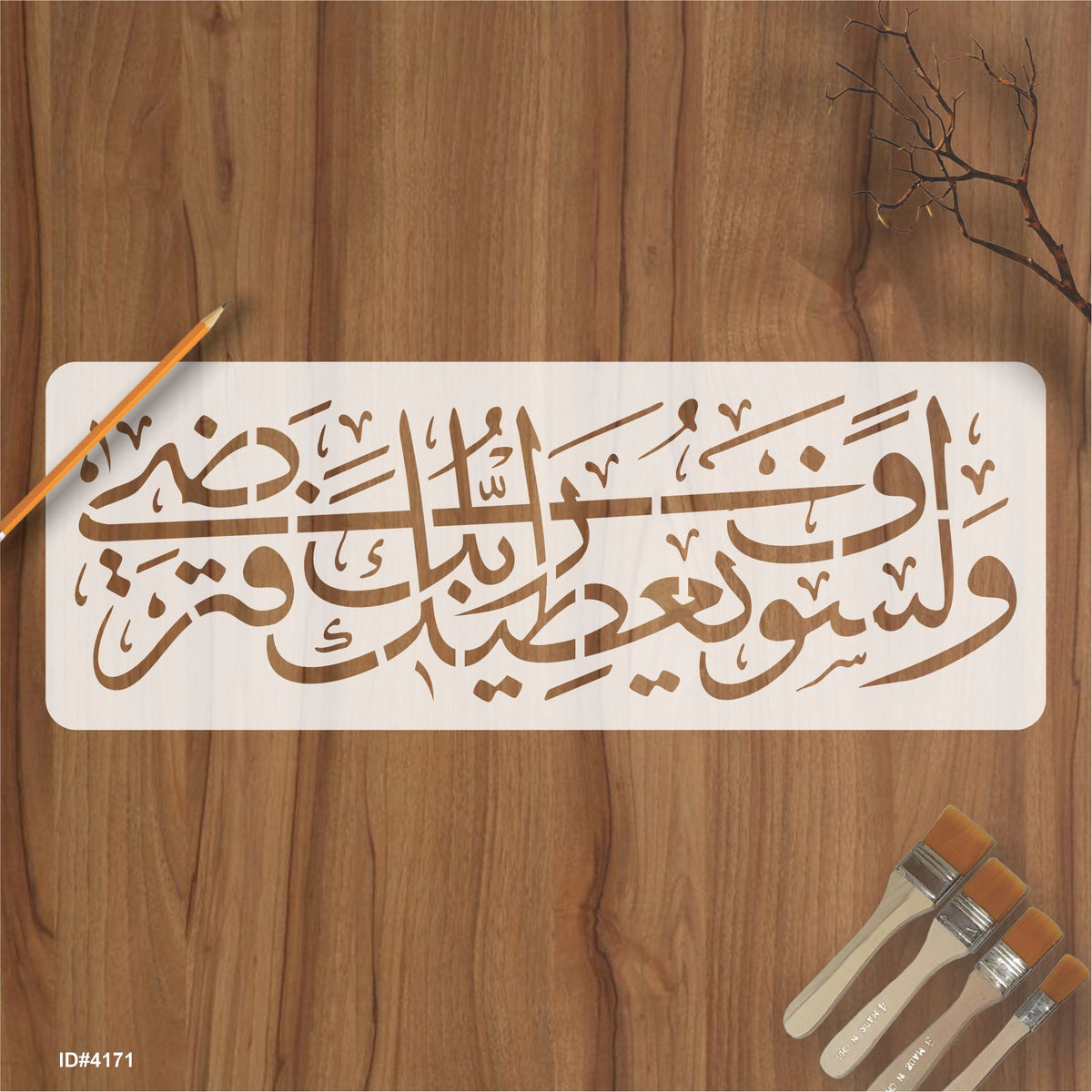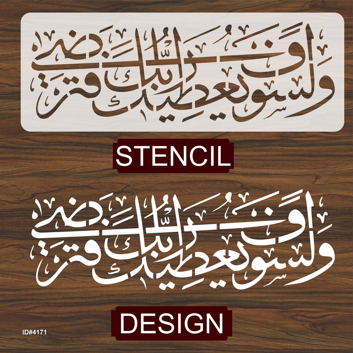Islamic Calligraphy Stencil of Wala Saufa Yutika Rabbuka Fatarda For wall decoration, used for Canvas and scrapbooking, Our wall stencils are unbreakable and reusable and can be used with different kinds of paints and techniques, find more calligraphy stencils, floral stencils, Mandela stencils, in our store.