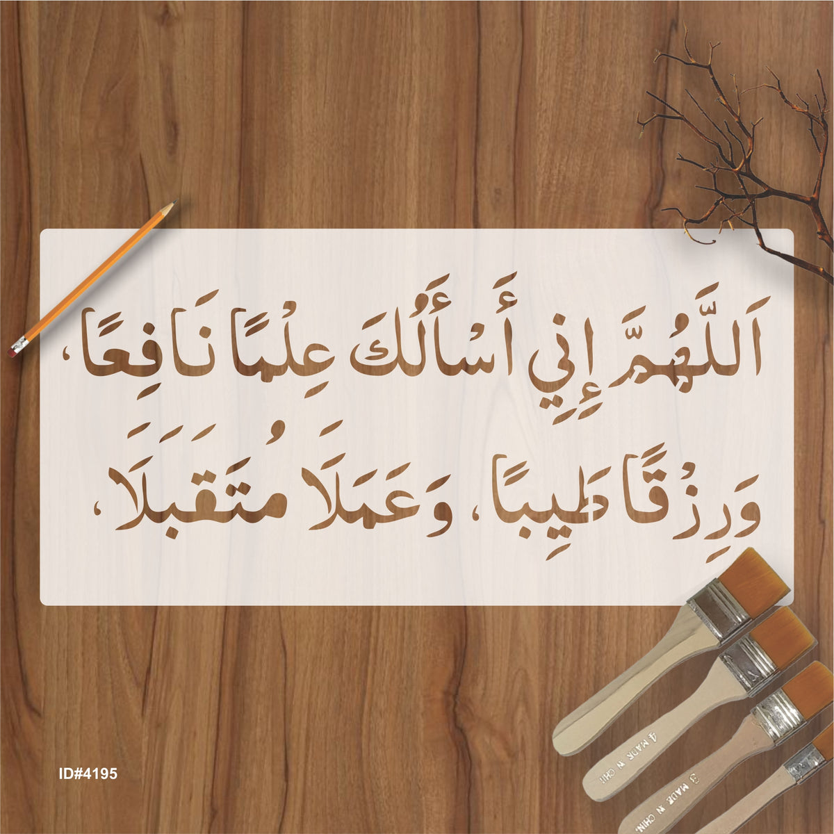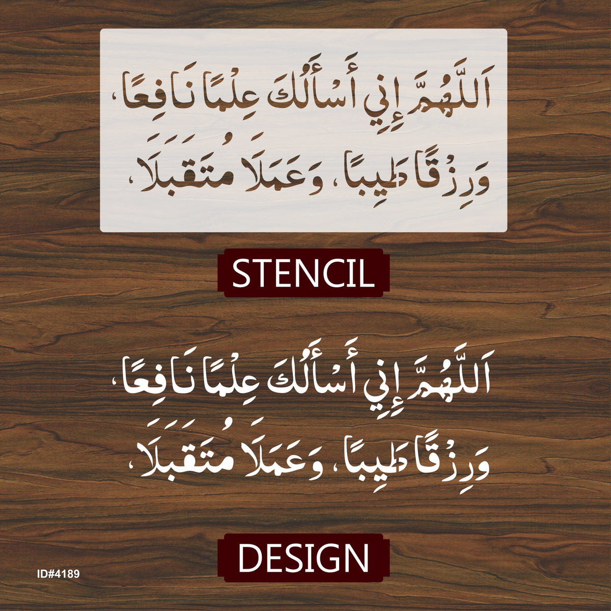 Islamic Calligraphy Stencil of Allahhumma Inni As, Aluka Ilman Nafia Calligraphy Islamic For wall decoration, used for Canvas and scrapbooking, Our wall stencils are unbreakable and reusable, which can be used with different kinds of paints and techniques, find more calligraphy stencils, floral stencils, Mandela stencils, in our store.