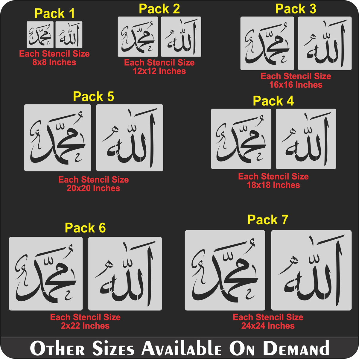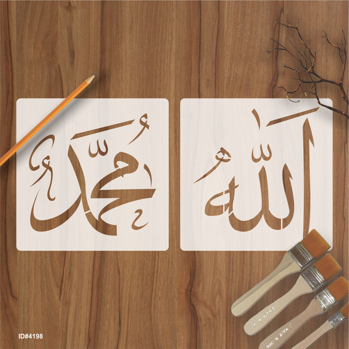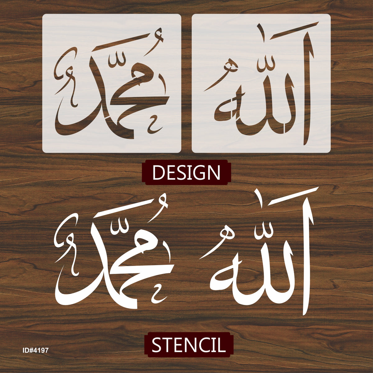 Islamic Calligraphy Stencil of Allah, Muhammad Calligraphy Islamic For wall decoration, used for Canvas and scrapbooking, Our wall stencils are unbreakable and reusable, which can be used with different kinds of paints and techniques, find more calligraphy stencils, floral stencils, Mandela stencils, in our store.