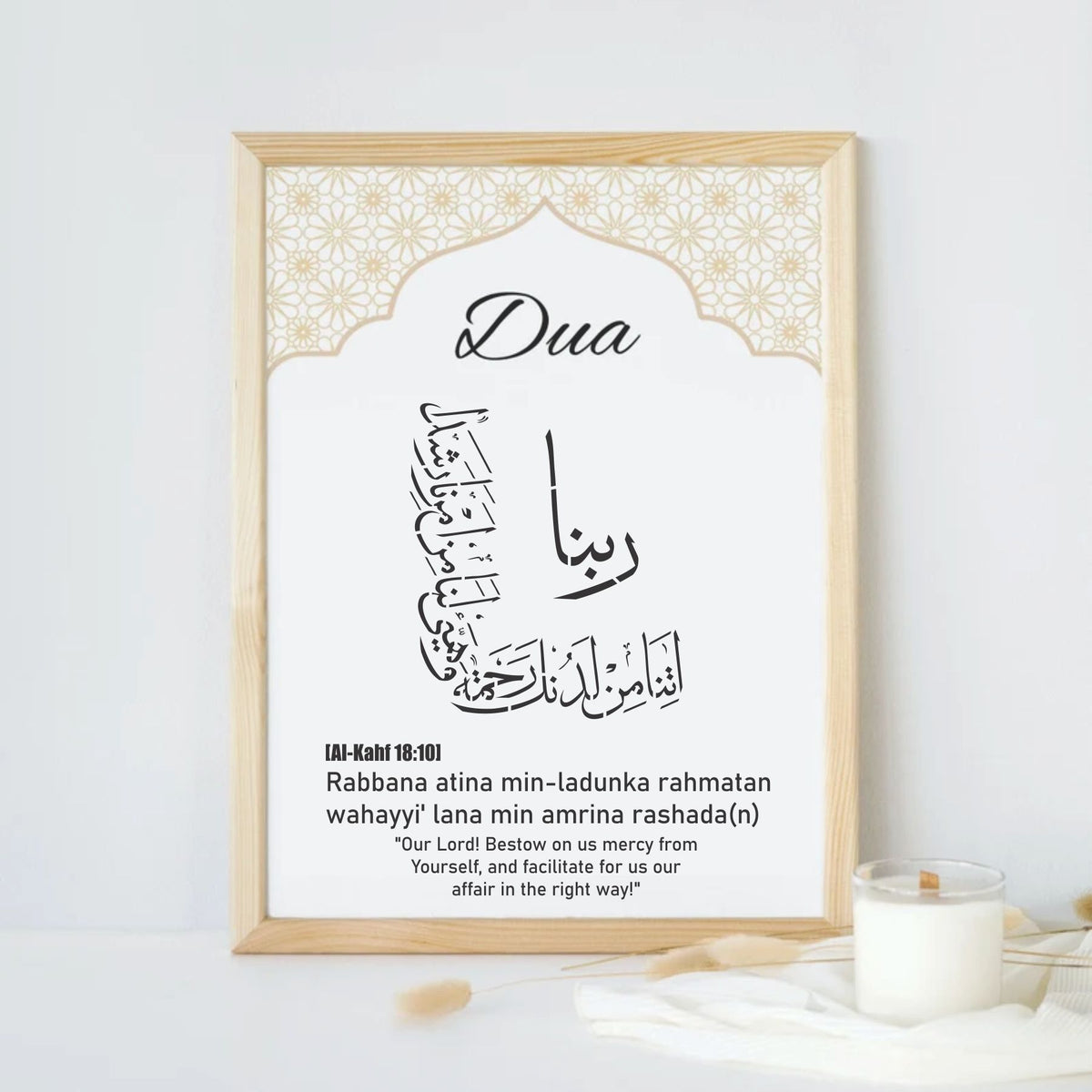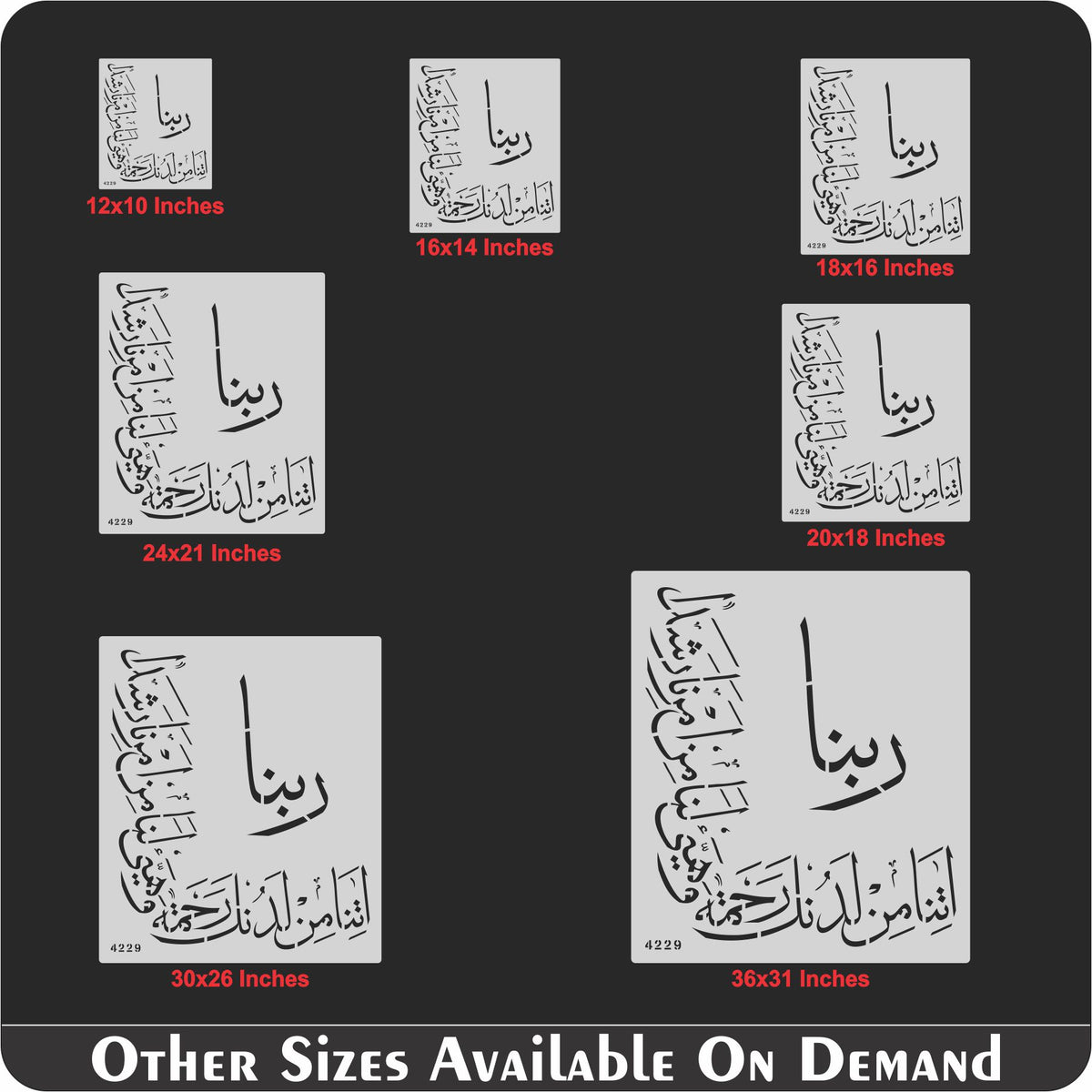 Islamic Calligraphy Stencil of (رَبَّنَا آتِنَا مِن لَّدُنكَ رَحْمَةً وَهَيِّئْ لَنَا مِنْ أَمْرِنَا رَشَدًا) Rabbana Atina Min Ladunka Rahmatan For wall decoration, used for Canvas, and scrapbooking, Our wall stencils are unbreakable and reusable and can be used with different kinds of paints and techniques, find more calligraphy stencils, floral stencils, and Mandela stencils, in our store.
