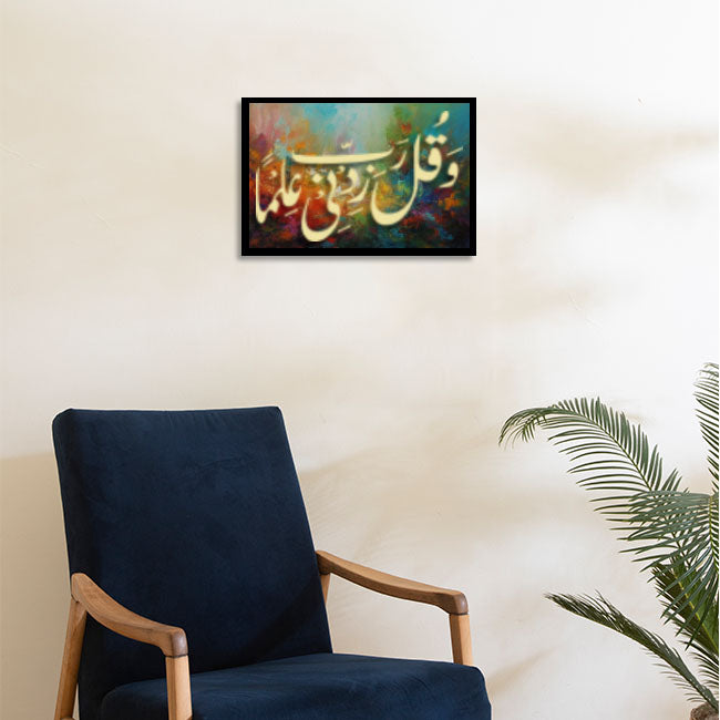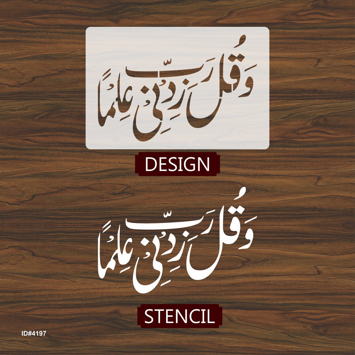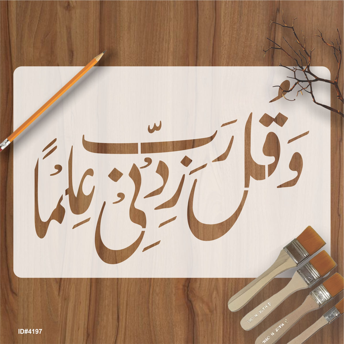 Wa Qul Rabbi Zidni Ilman (Surah Ta-Ha; 20:114] Calligraphy Islamic Reusable Stencil for Canvas and wall painting.ID# 4197