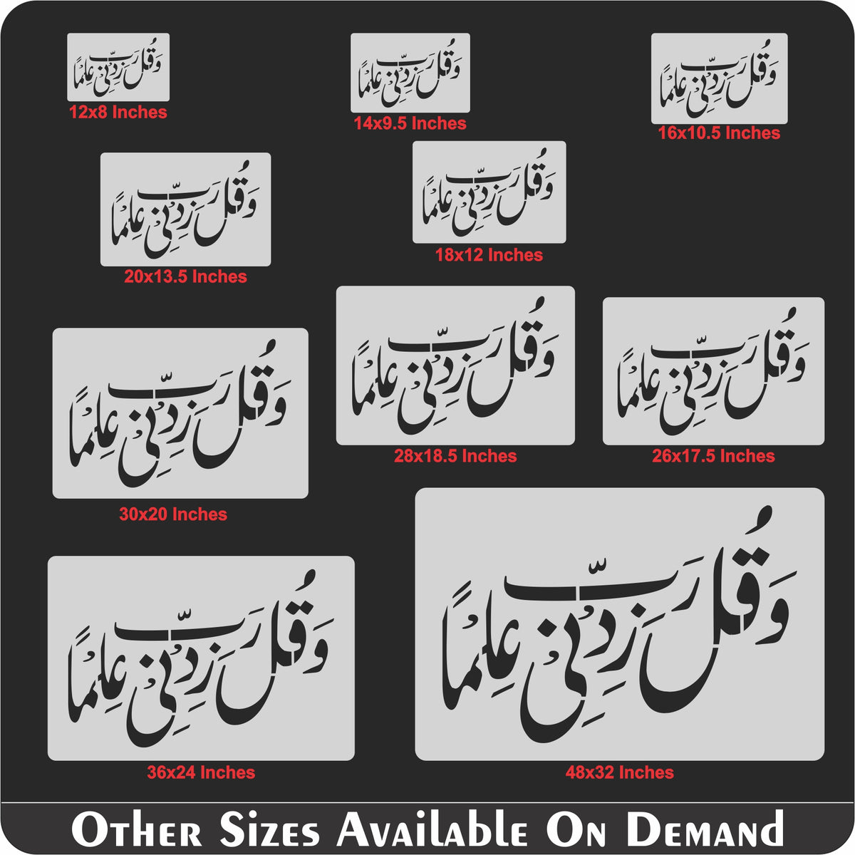 Islamic Calligraphy Stencil of Wa Qul Rabbi Zidni Ilman Calligraphy Islamic For wall decoration, used for Canvas and scrapbooking, Our wall stencils are unbreakable and reusable, which can be used with different kinds of paints and techniques, find more calligraphy stencils, floral stencils, Mandela stencils, in our store.