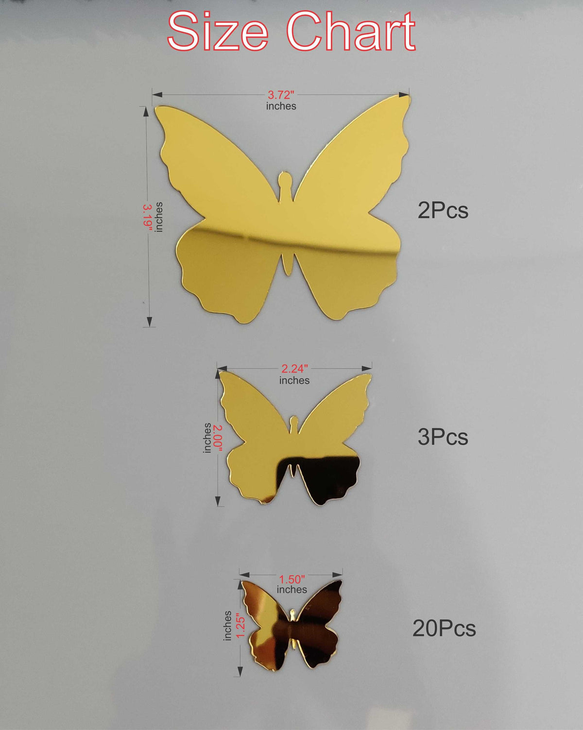 25Pcs Butterflies 3D DIY Mirror Self Adhesive  Wall Sticker Durable DIY Simple Decal for Living Room Art Home Decor