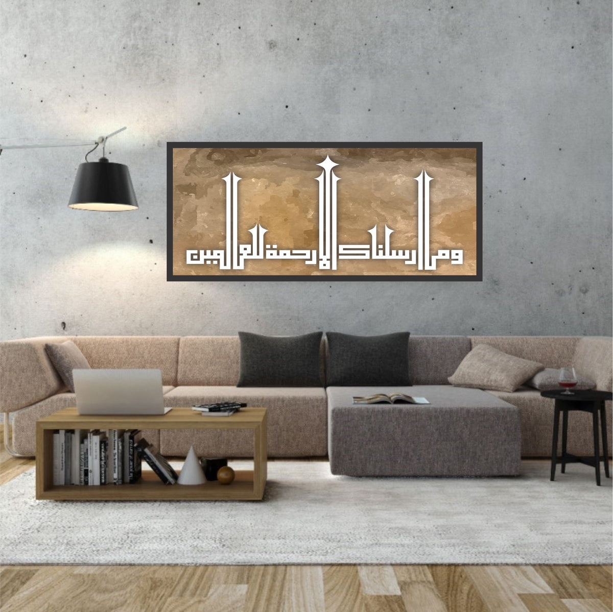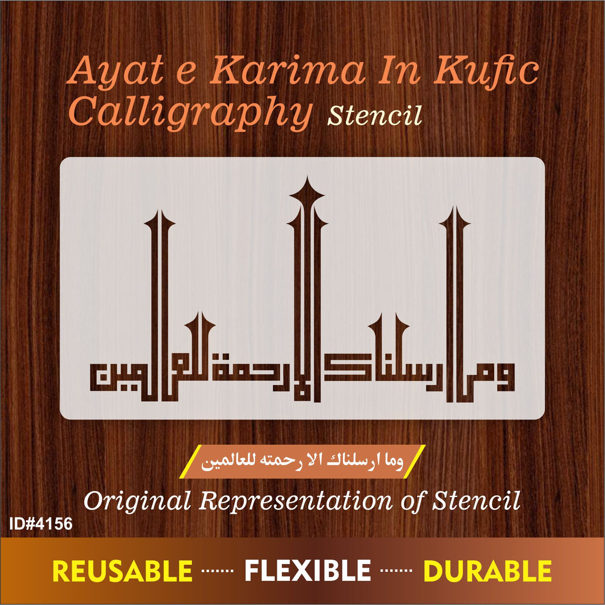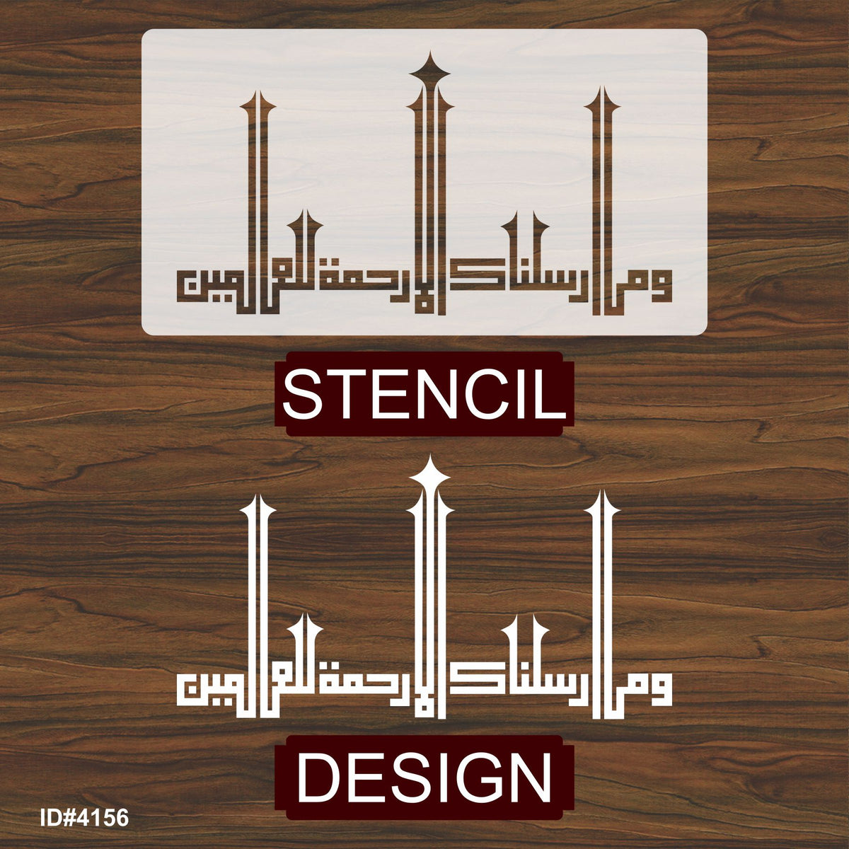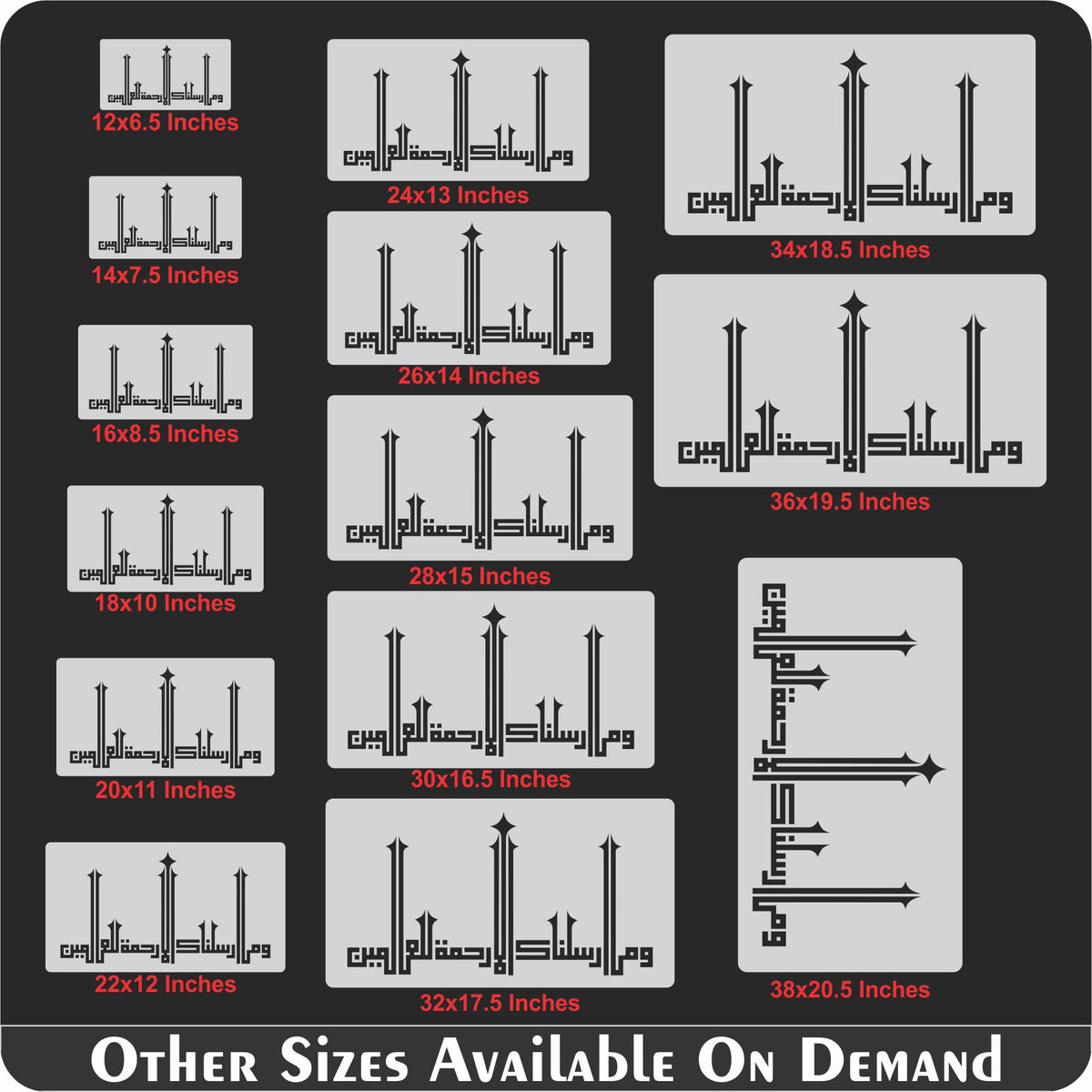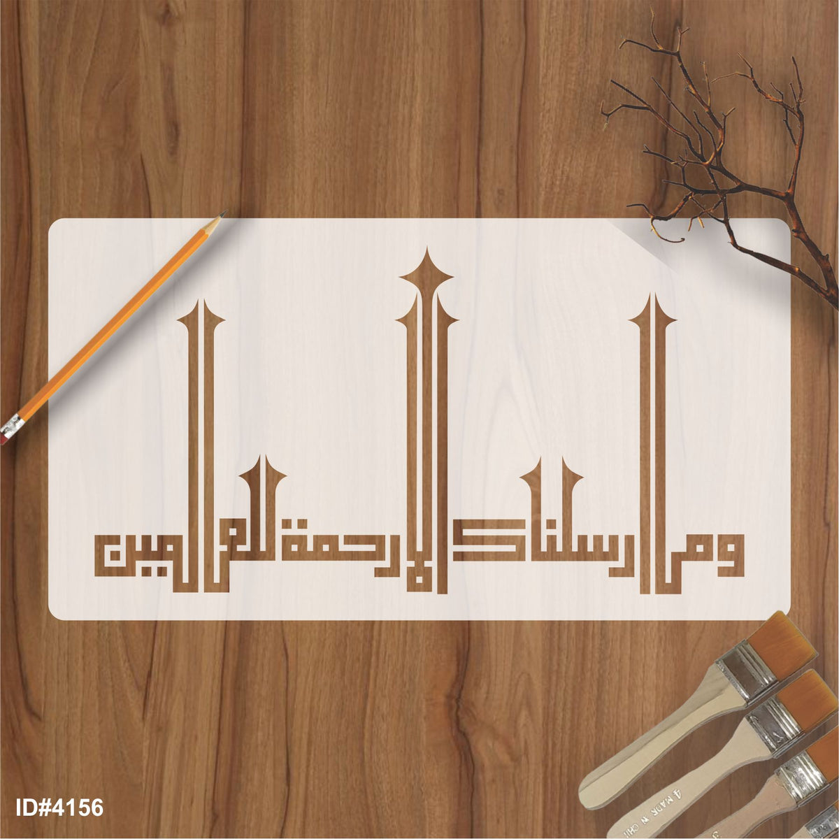 Islamic Calligraphy Stencil of Ayat E karima (Wama Arsalnaka illa Rehmatallil Alameen) For wall decoration, used for Canvas and scrapbooking, Our wall stencils are unbreakable and reusable, which can be used with different kinds of paints and techniques, find more calligraphy stencils, floral stencils, Mandela stencils, in our store.