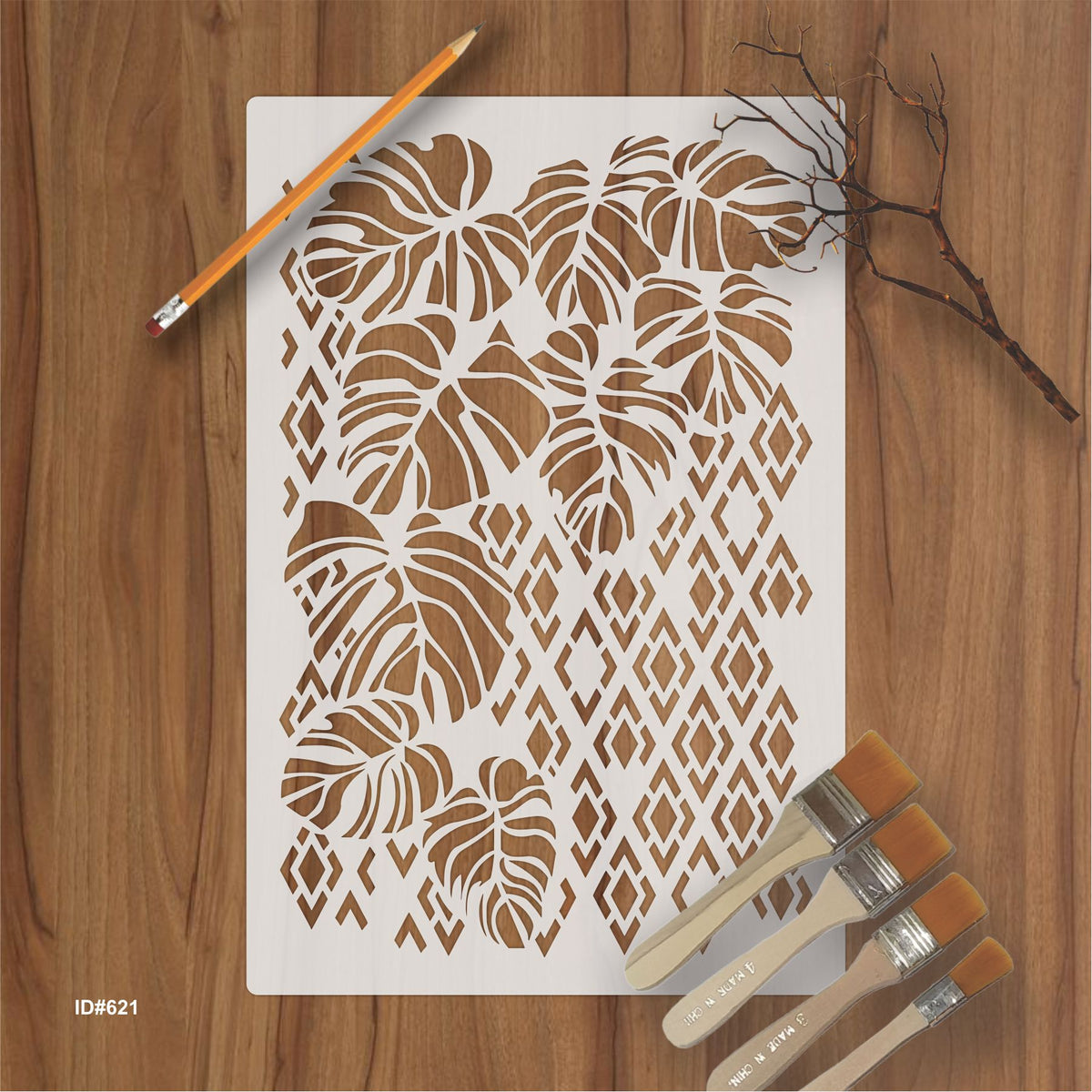 β¨ Bring nature indoors with our Monstera Leaf Diamond Mesh Stencil, designed for walls, wood, glass, tiles, and fabrics.