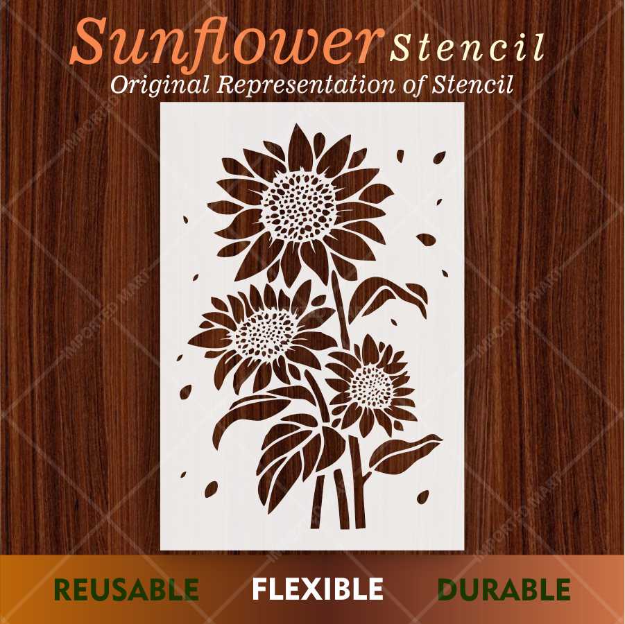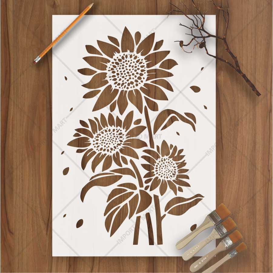 Brighten up your space with this charming Sunflower Bunch stencil, perfect for wall art, wood signs, fabric prints, and floor designs.