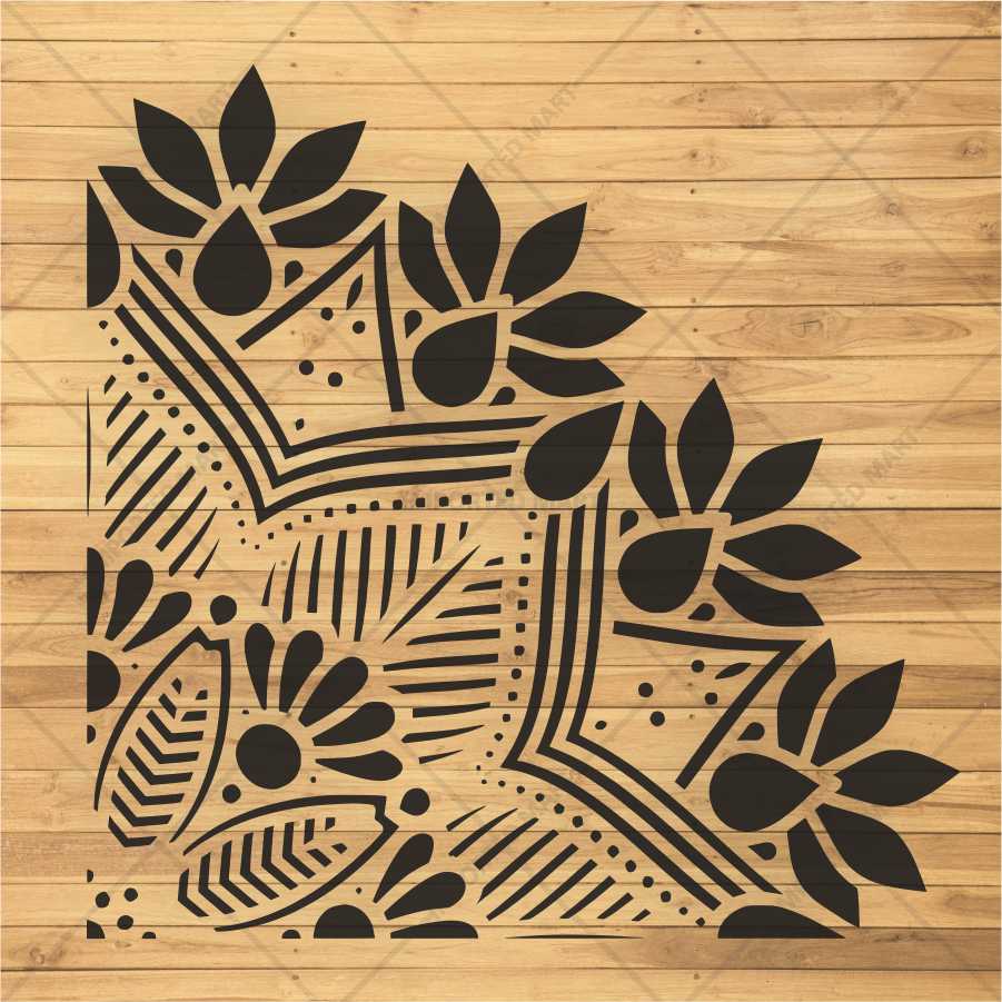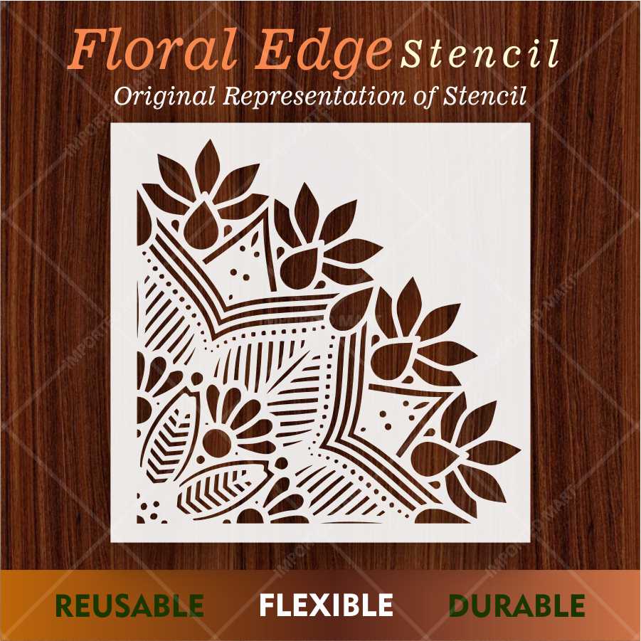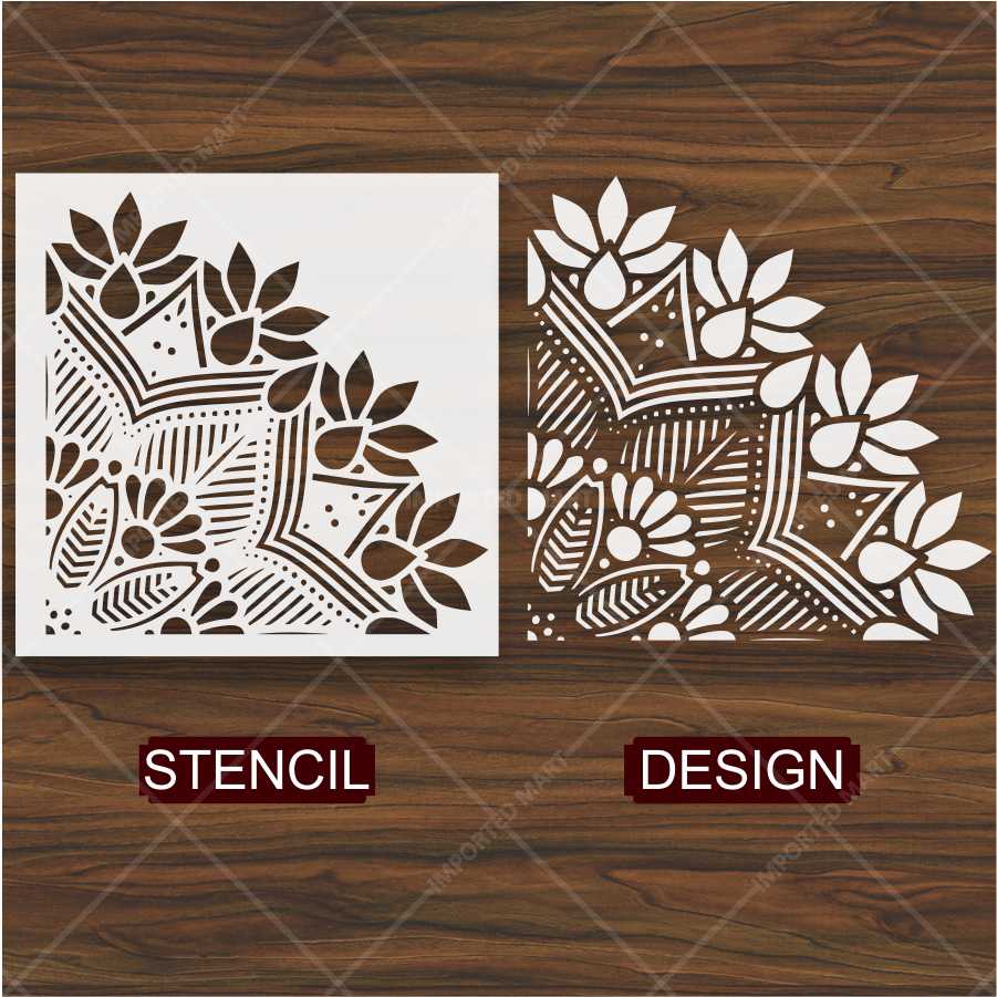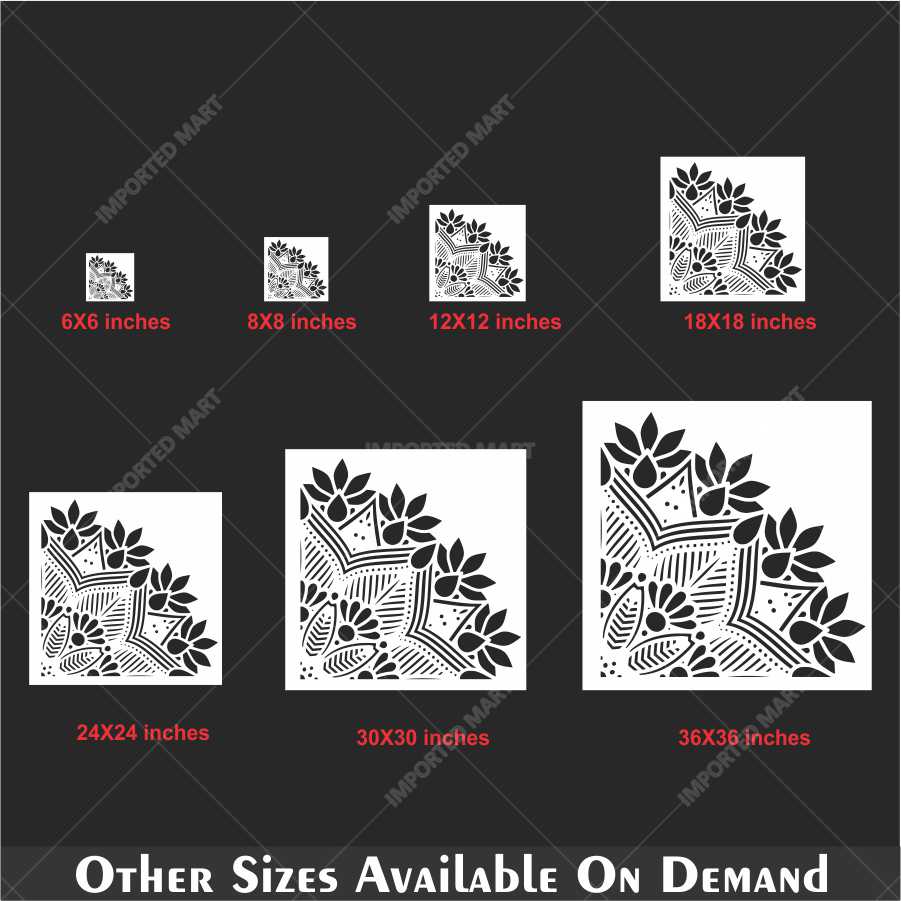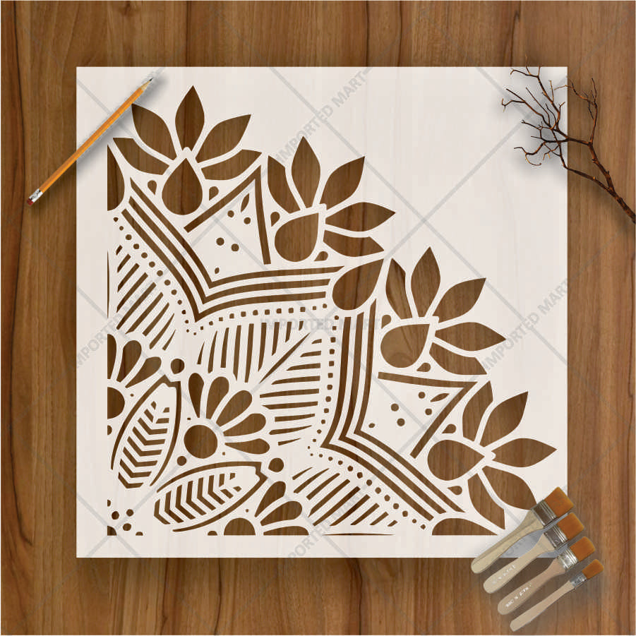 Add intricate elegance to your DIY projects with this traditional floral corner motif stencil. Ideal for enhancing walls, curtains, wood panels, or tile art with symmetrical beauty. Perfect for ethnic, folk, and classic interior themes. Use it on furniture corners, floor tiles, or canvas for standout detailing.
