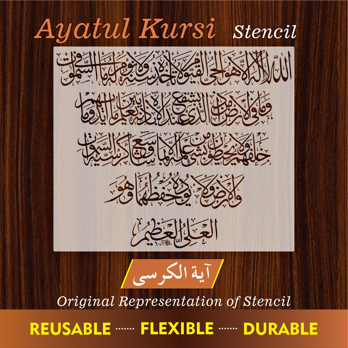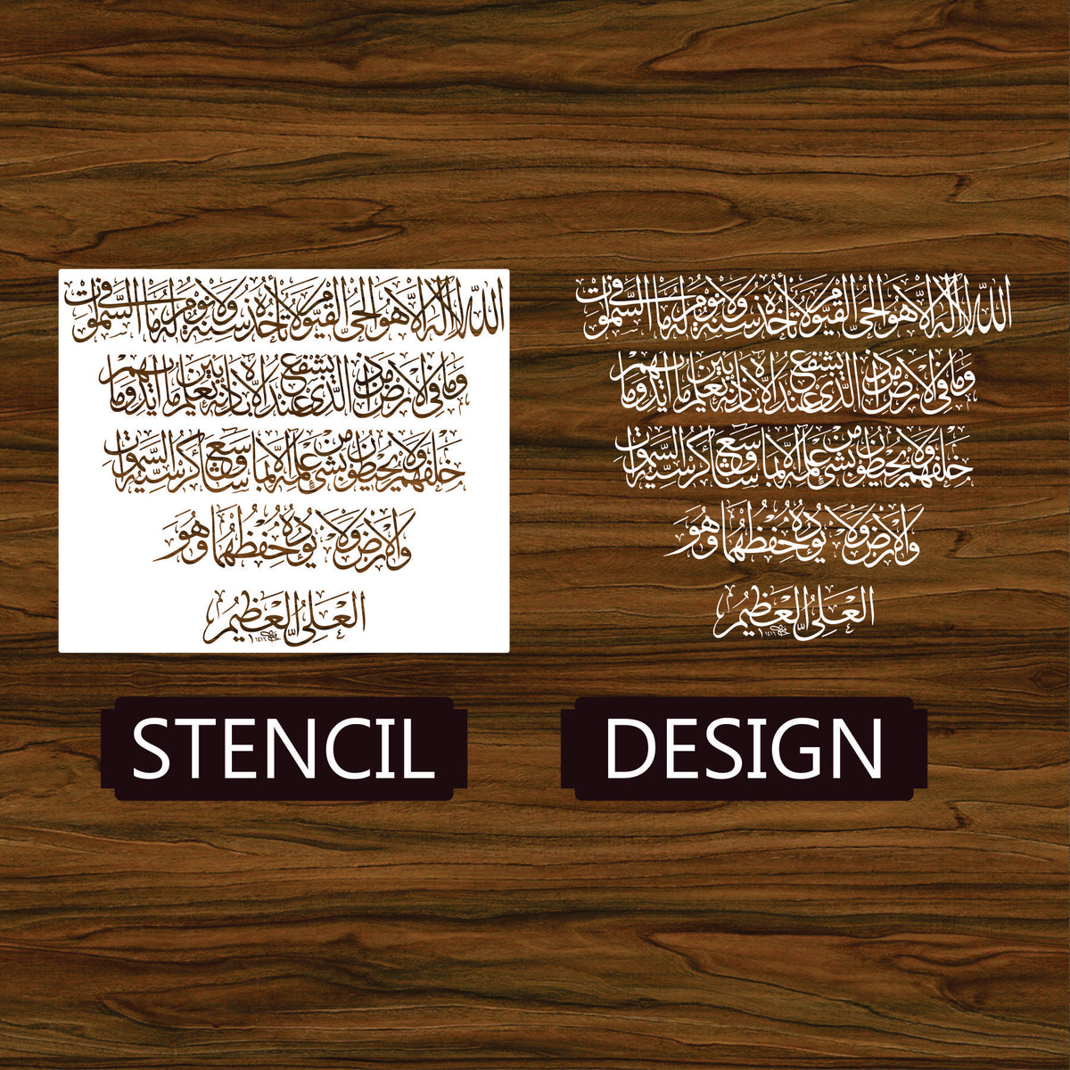 Islamic Calligraphy Stencil of Ayat Ul Kursi Islamic Calligraphy Islamic For wall decoration, used for Canvas and scrapbooking, Our wall stencils are unbreakable and reusable, which can be used with different kinds of paints and techniques, find more calligraphy stencils, floral stencils, Mandela stencils, in our store.