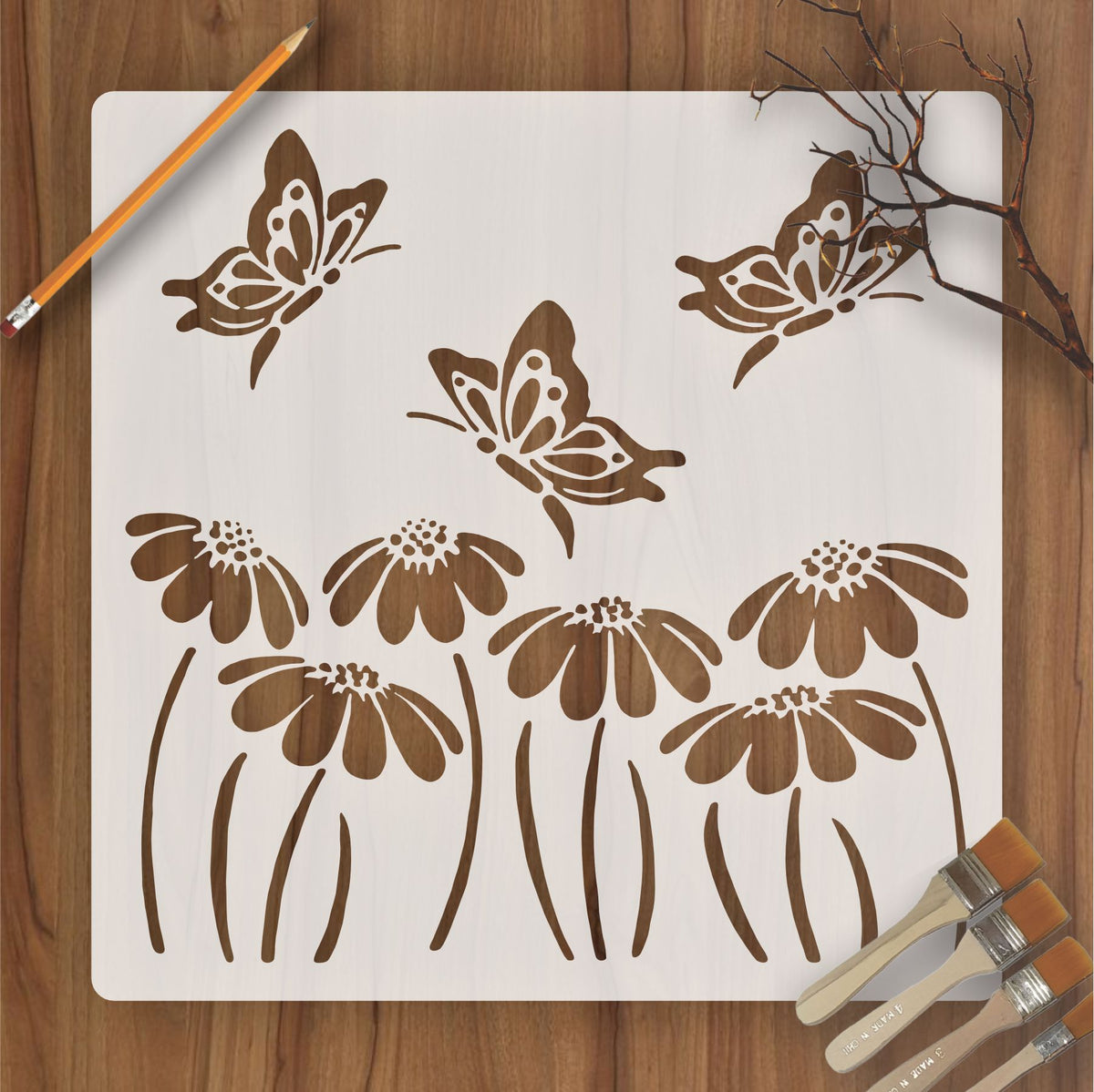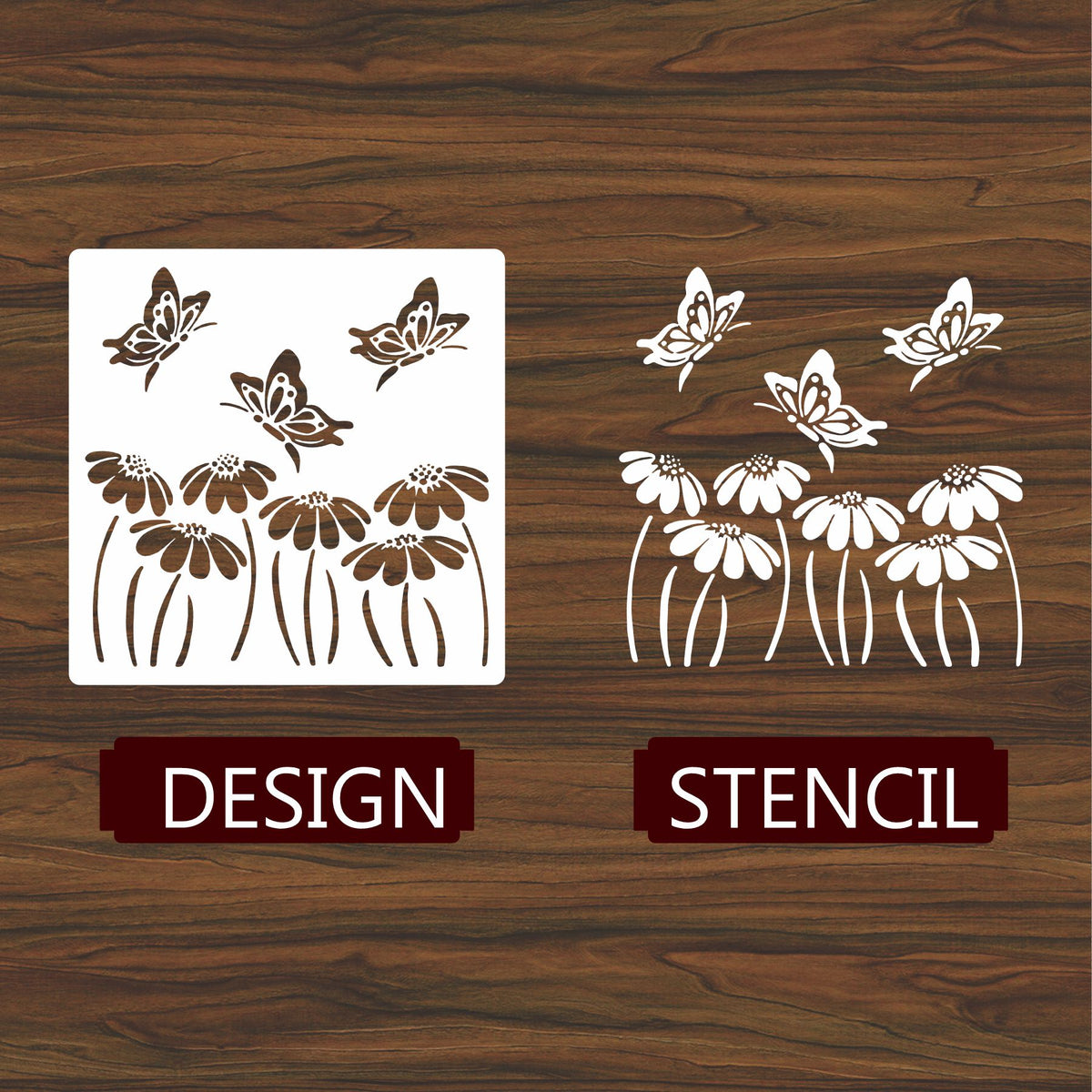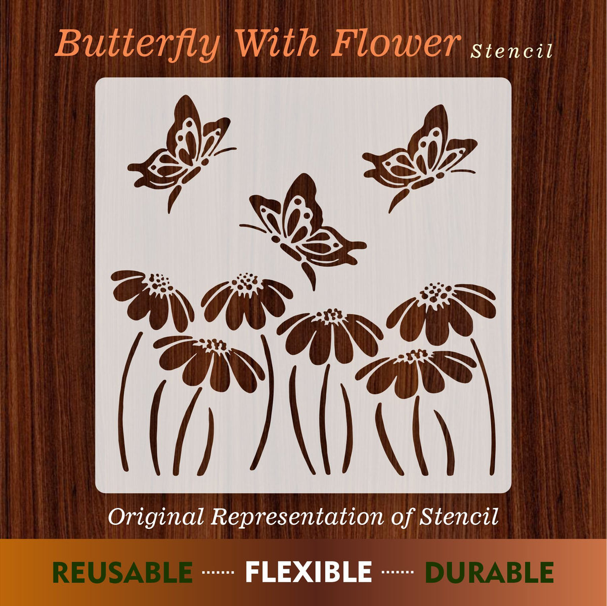 Butterfly With flower Reusable Stencil, Used For Canvas And Scrapbooking, Our Wall Stencils Are Unbreakable And Reusable, Which Can Be Used With Different Kind Of Paints And Techniques, Find More Imart Stencils, Floral Stencils, Mandela Stencils, In Our Store.
