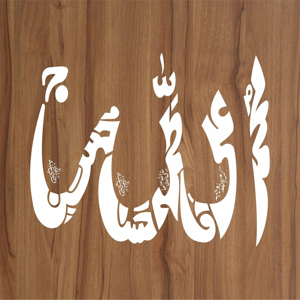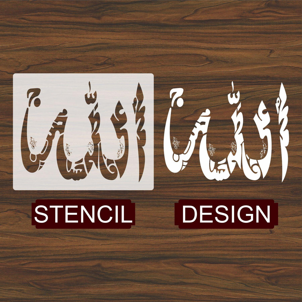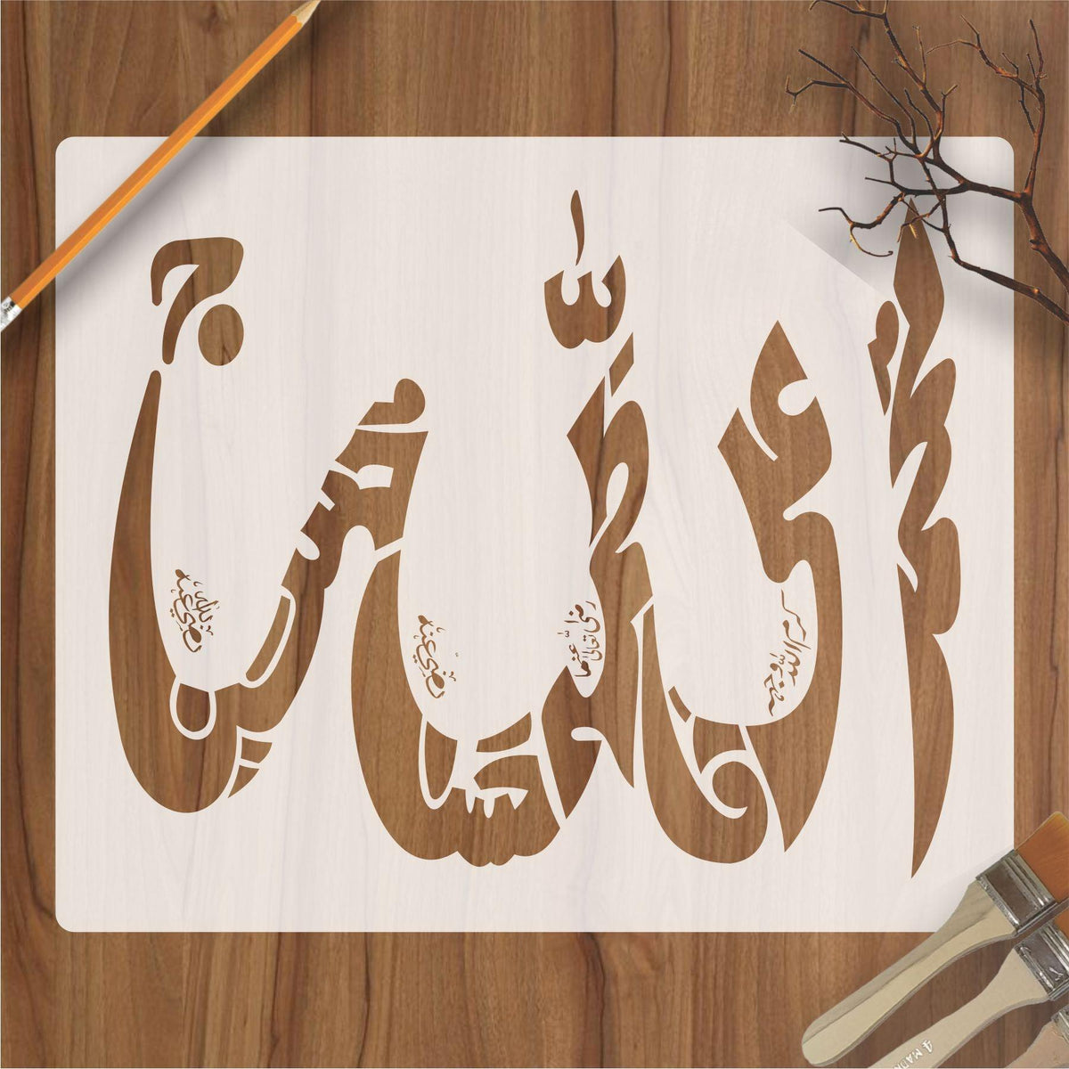 Islamic Calligraphy Stencil of NAME OF ALLAH written with 5 punjtan pak names For wall decoration, used for Canvas and scrapbooking, Our wall stencils are unbreakable and reusable, which can be used with different kinds of paints and techniques, find more calligraphy stencils, floral stencils, Mandela stencils, in our store.