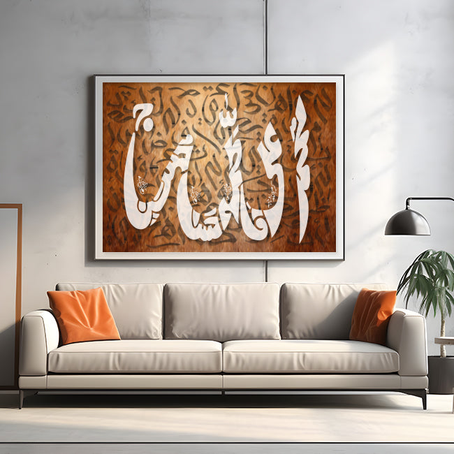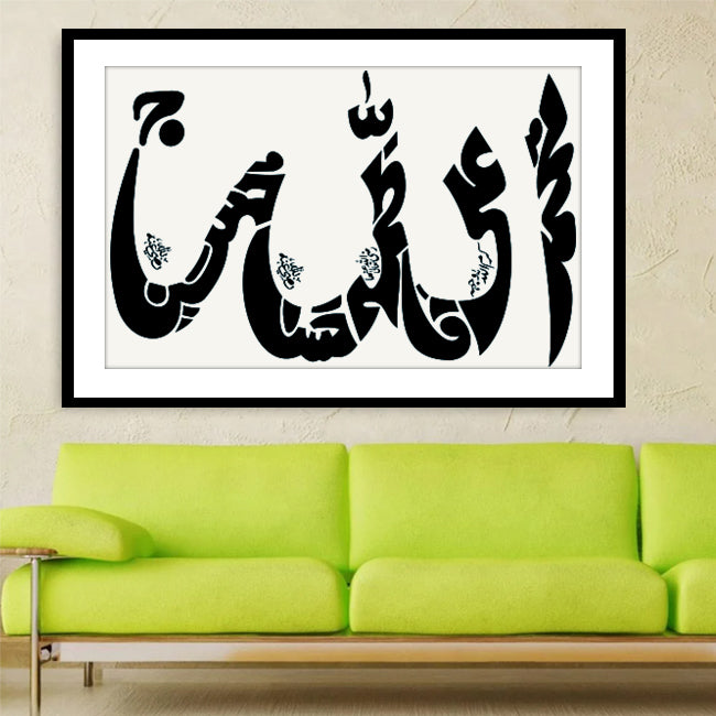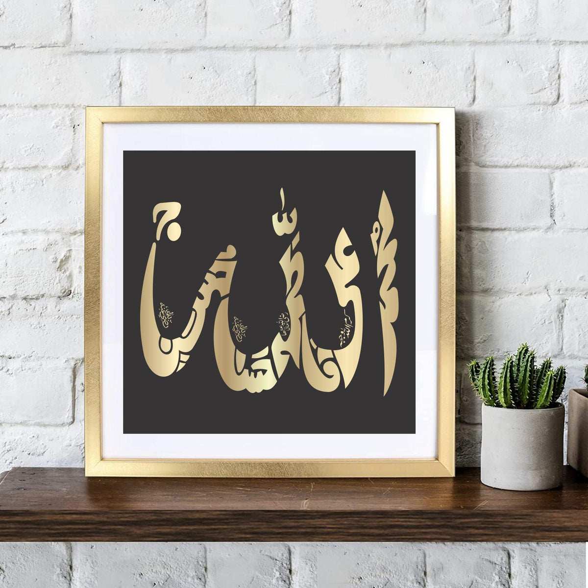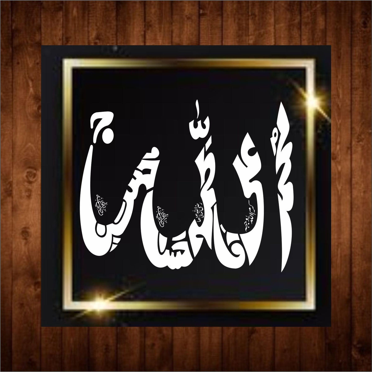 Islamic Calligraphy Stencil of NAME OF ALLAH written with 5 punjtan pak names For wall decoration, used for Canvas and scrapbooking, Our wall stencils are unbreakable and reusable, which can be used with different kinds of paints and techniques, find more calligraphy stencils, floral stencils, Mandela stencils, in our store.