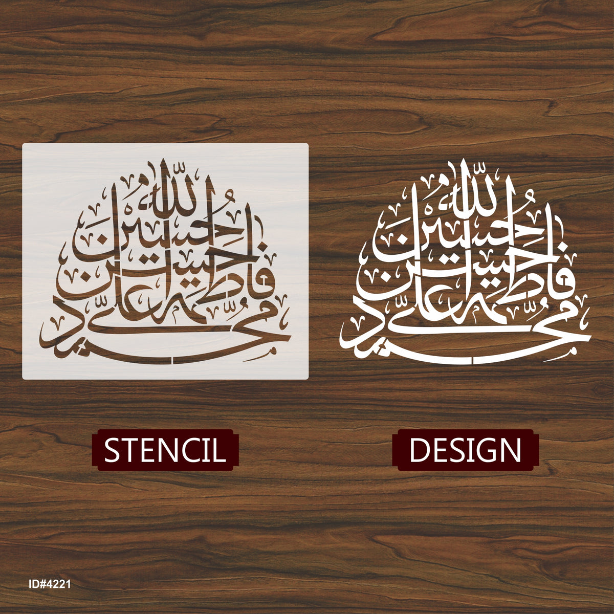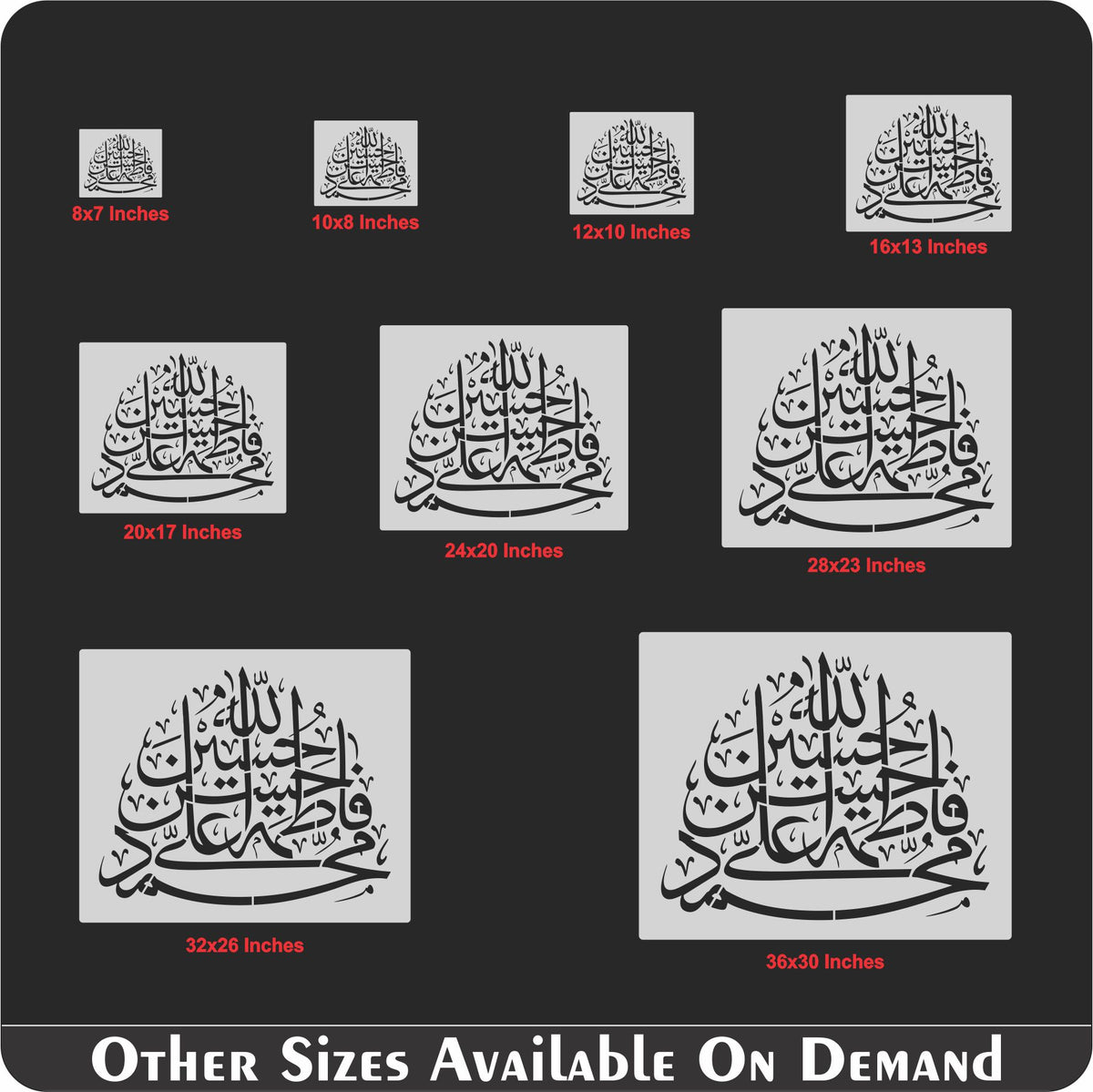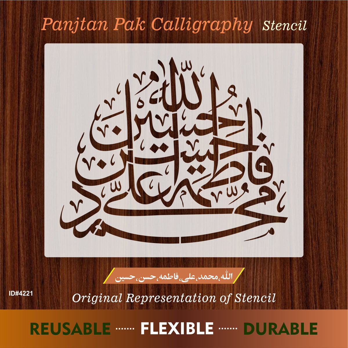 Islamic Calligraphy Stencil of Panjtan Pak For wall decoration, used for Canvas and scrapbooking, Our wall stencils are unbreakable and reusable, which can be used with different kinds of paints and techniques, find more calligraphy stencils, floral stencils, Mandela stencils, in our store.