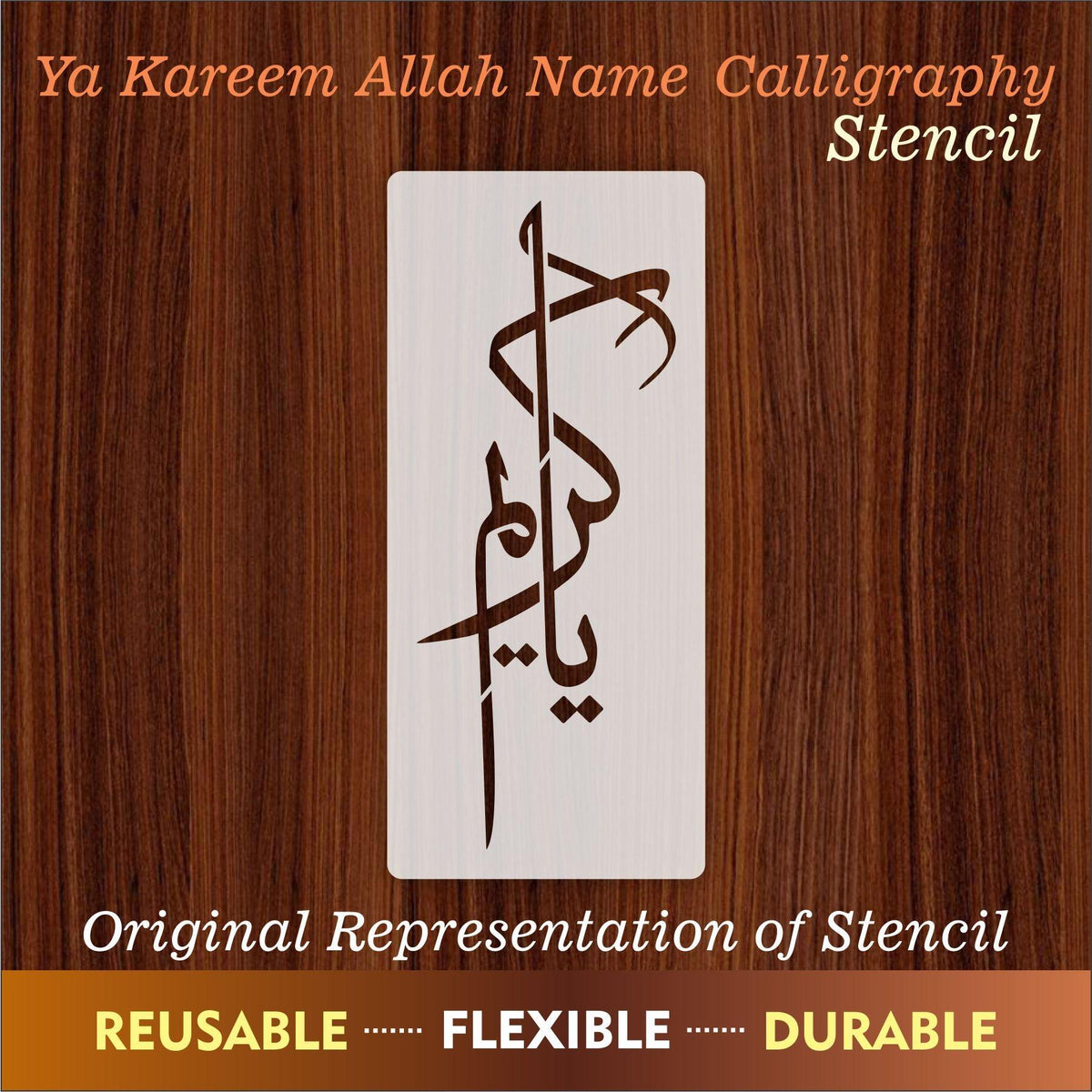Islamic Calligraphy Stencil of Ya Kareem(Allah Name) For wall decoration, used for Canvas and scrapbooking, Our wall stencils are unbreakable and reusable, which can be used with different kinds of paints and techniques, find more calligraphy stencils, floral stencils, Mandela stencils, in our store.