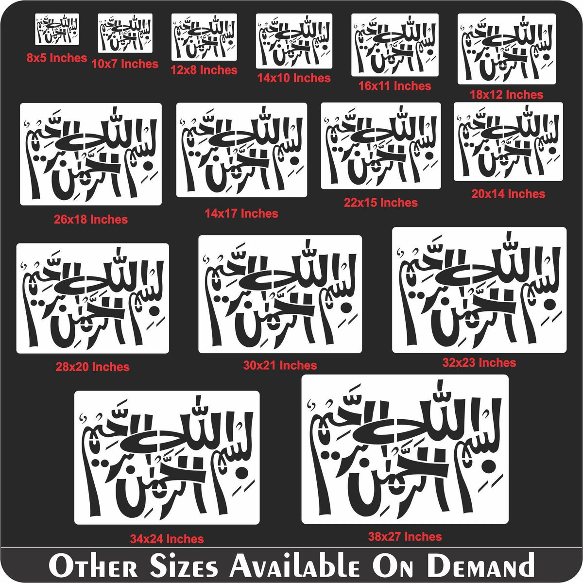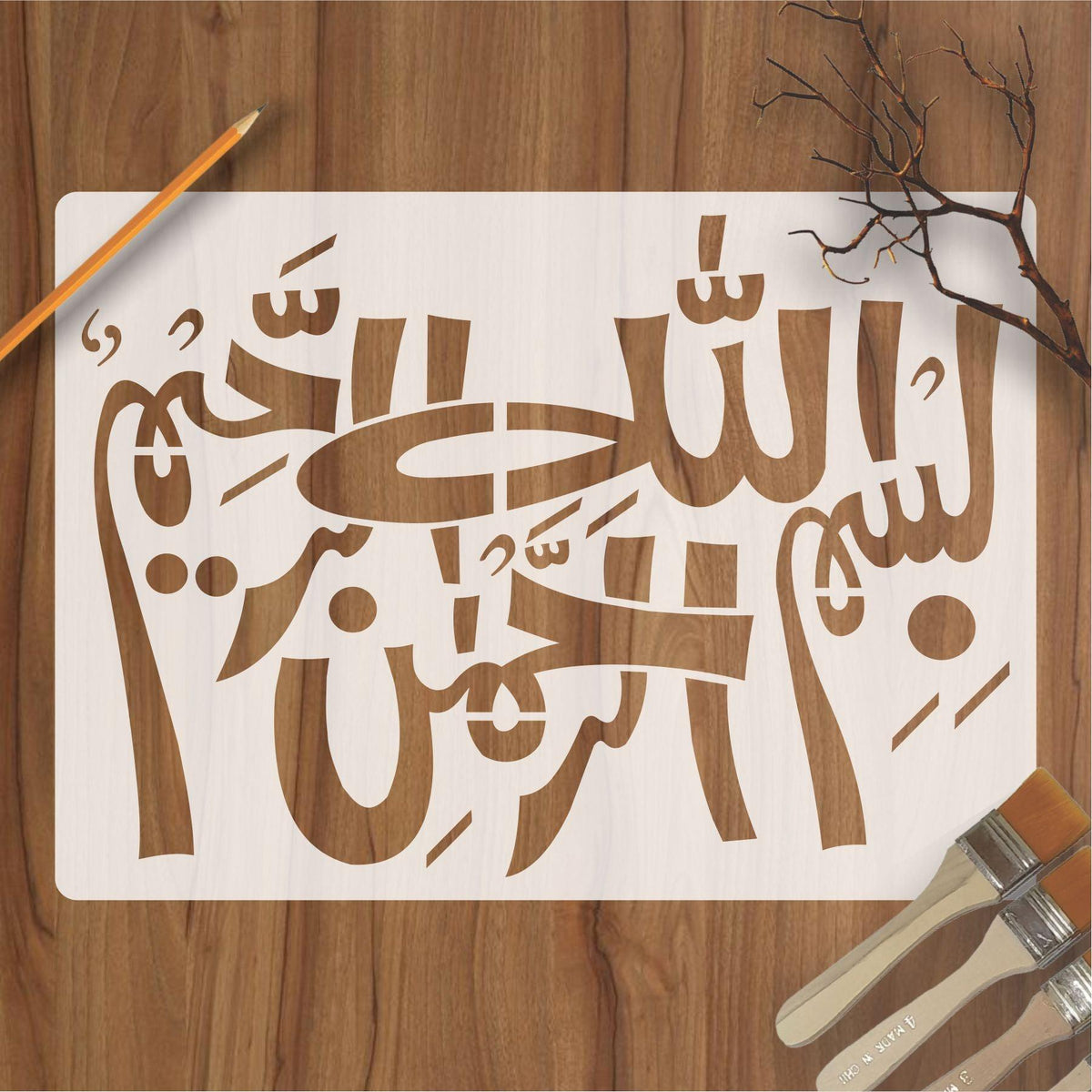 Islamic Calligraphy Stencil of Bismillah For wall decoration, used for Canvas and scrapbooking, Our wall stencils are unbreakable and reusable, which can be used with different kinds of paints and techniques, find more calligraphy stencils, floral stencils, Mandela stencils, in our store.
