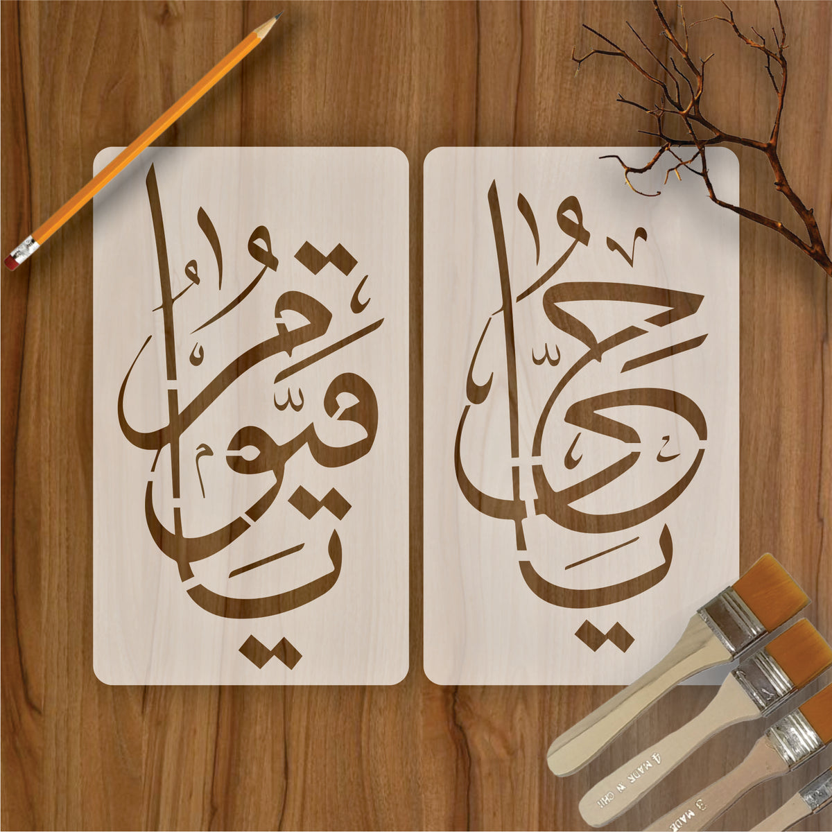 Islamic Calligraphy Stencil of Pack of 2 Ya Hayyu Ya Qayyum Islamic For wall decoration, used for Canvas and scrapbooking, Our wall stencils are unbreakable and reusable, which can be used with different kinds of paints and techniques, find more calligraphy stencils, floral stencils, Mandela stencils, in our store.