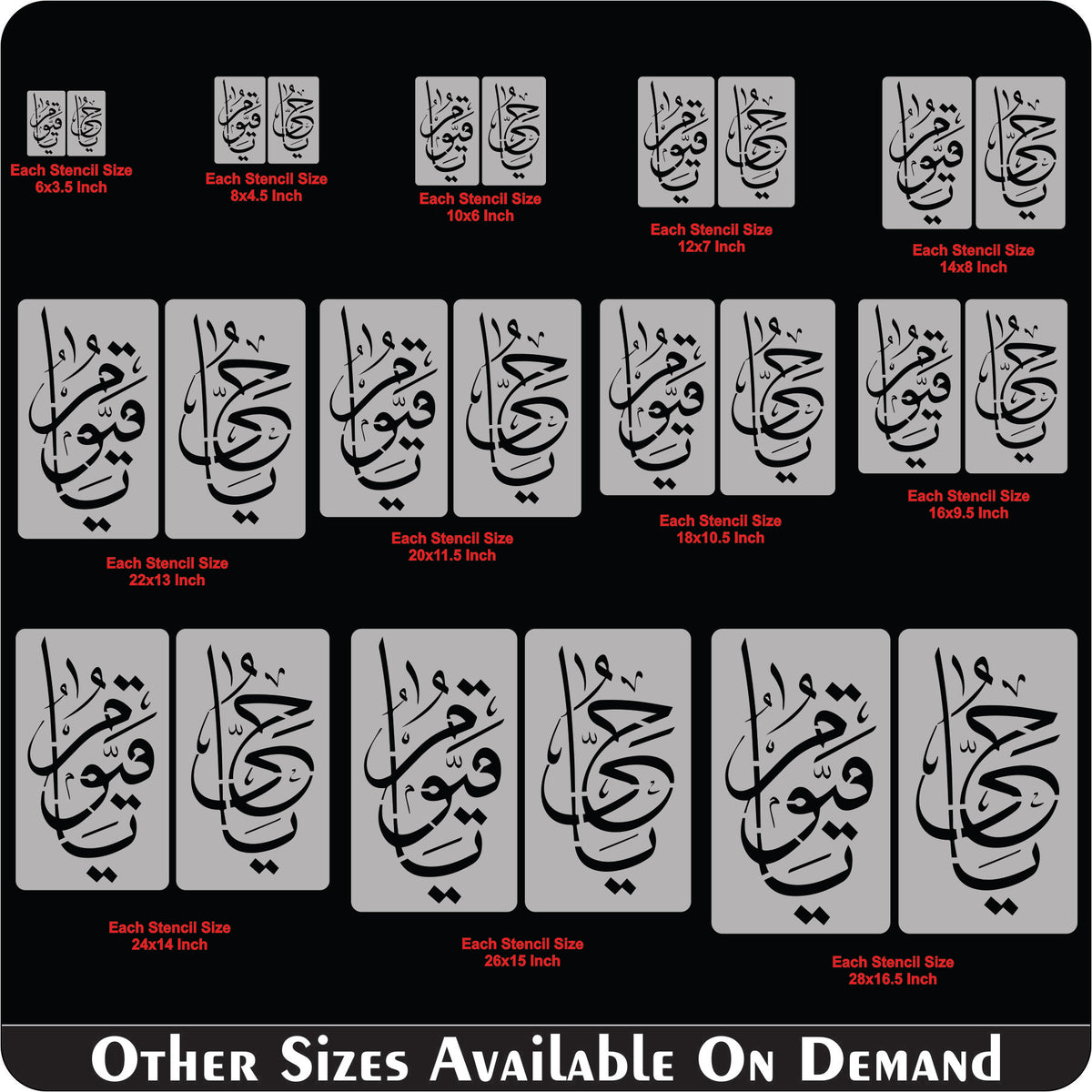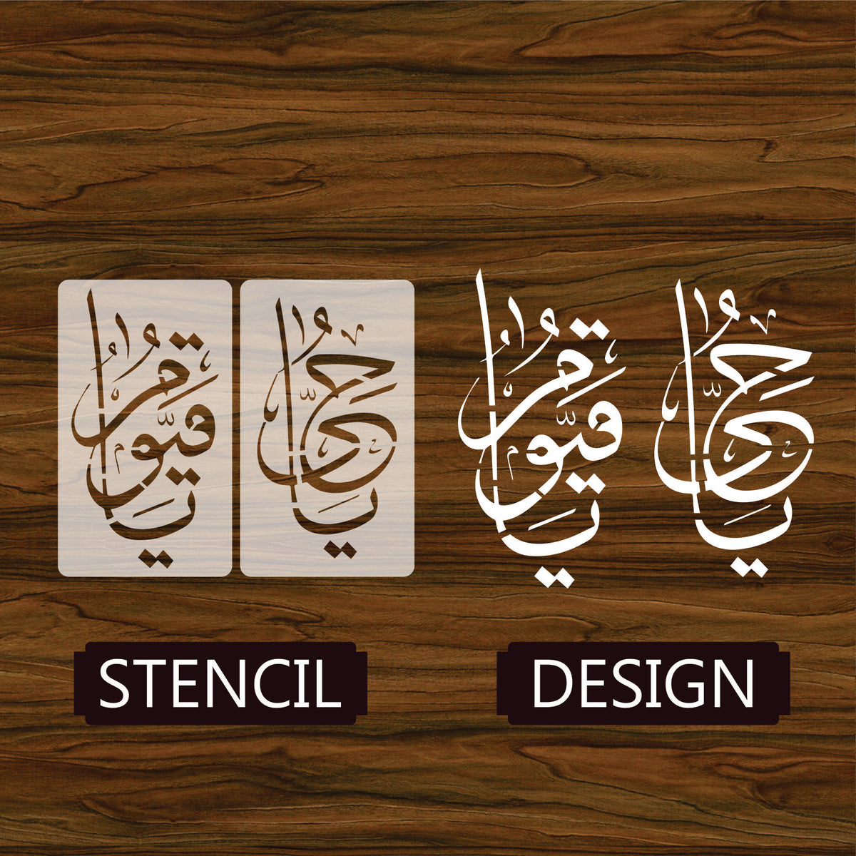 - Pack of 2 Ya Hayyu Ya Qayyum Islamic calligraphy stencils.