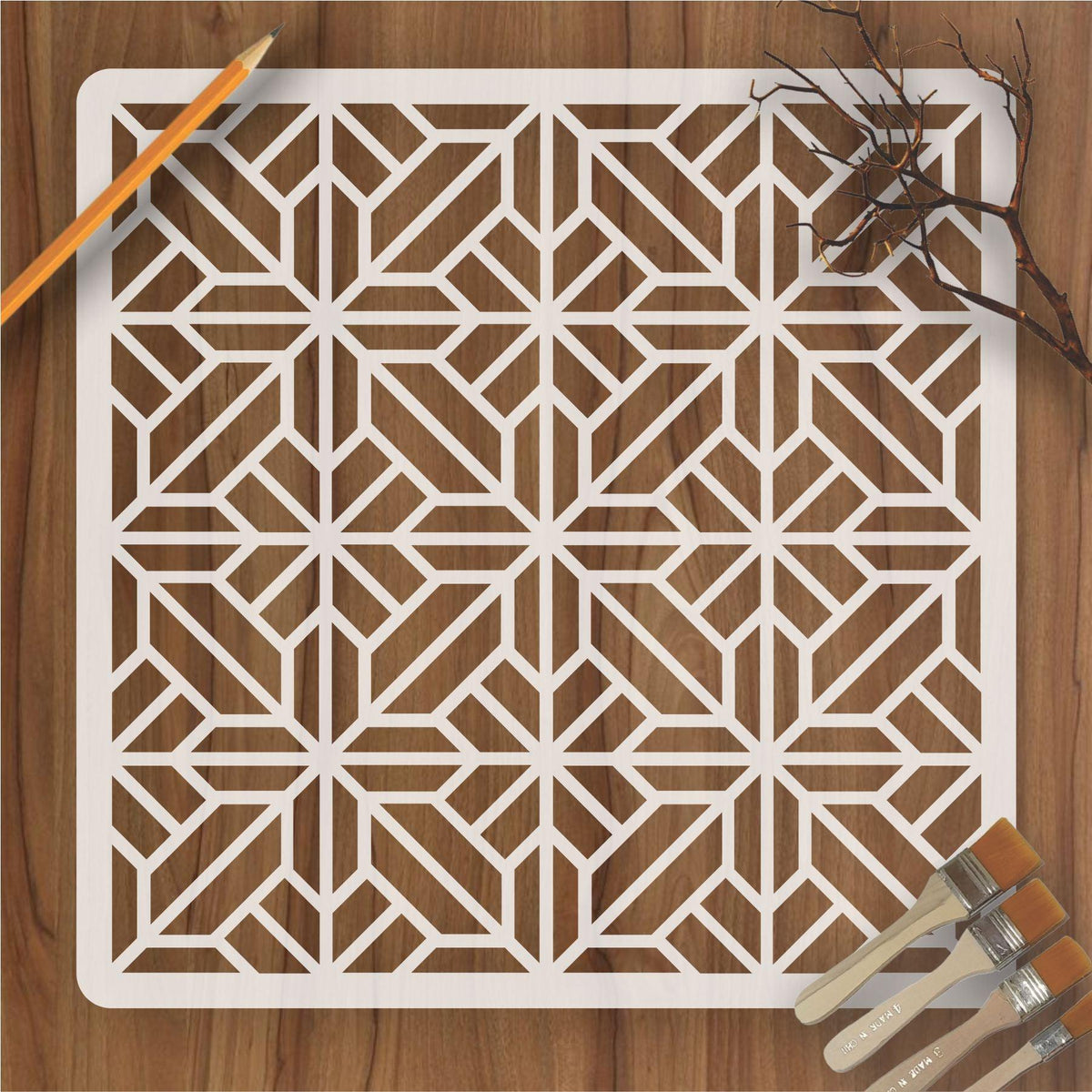 Geometric Star Grid Pattern Reusable Stencil for Canvas and wall painting.ID# 18