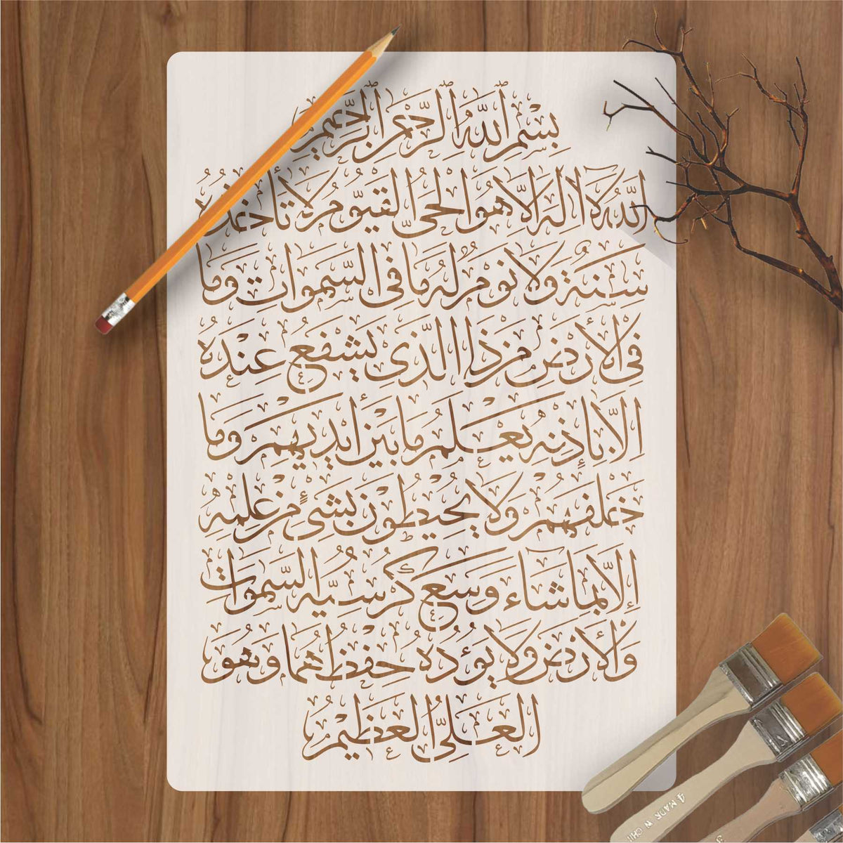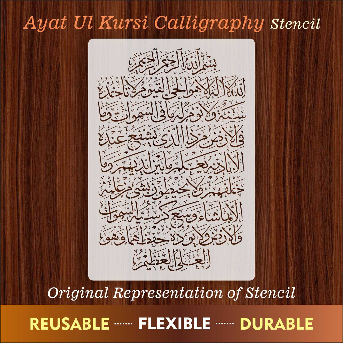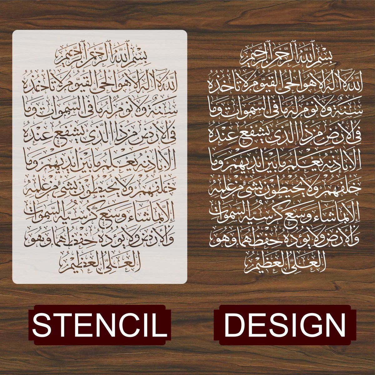 Islamic Calligraphy Stencil of Ayat ul kursi For wall decoration, used for Canvas and scrapbooking, Our wall stencils are unbreakable and reusable, which can be used with different kinds of paints and techniques, find more calligraphy stencils, floral stencils, Mandela stencils, in our store.