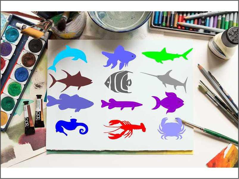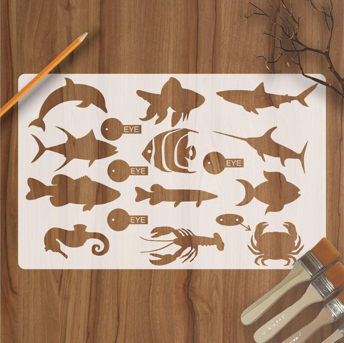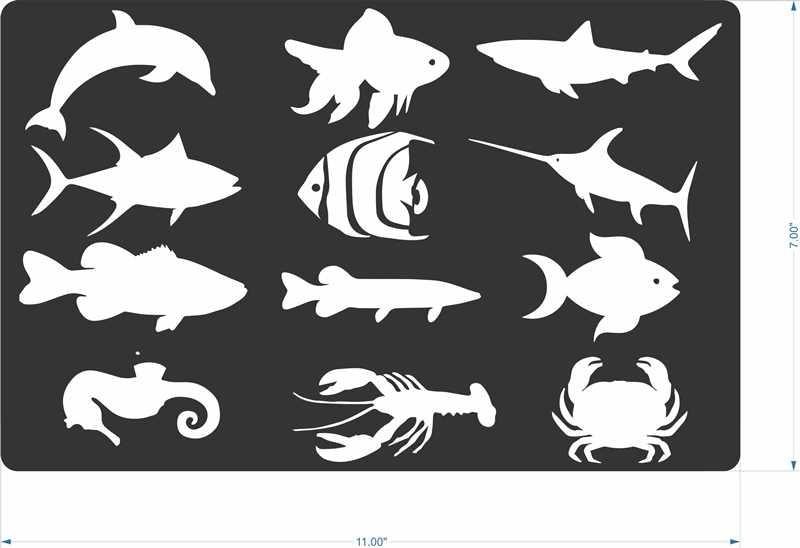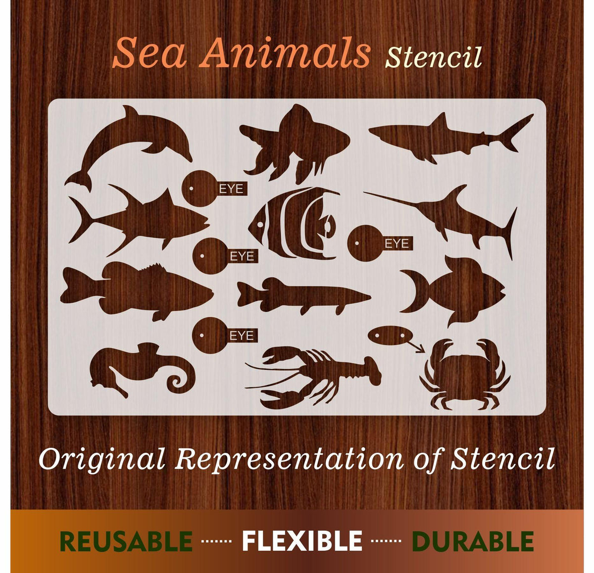 Sea Animals Reusable Stencil For Canvas And Wall Painting.ID#134