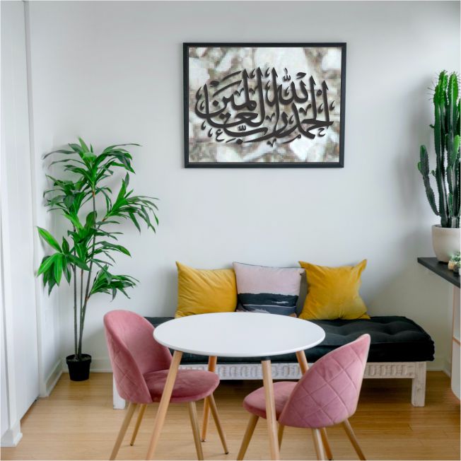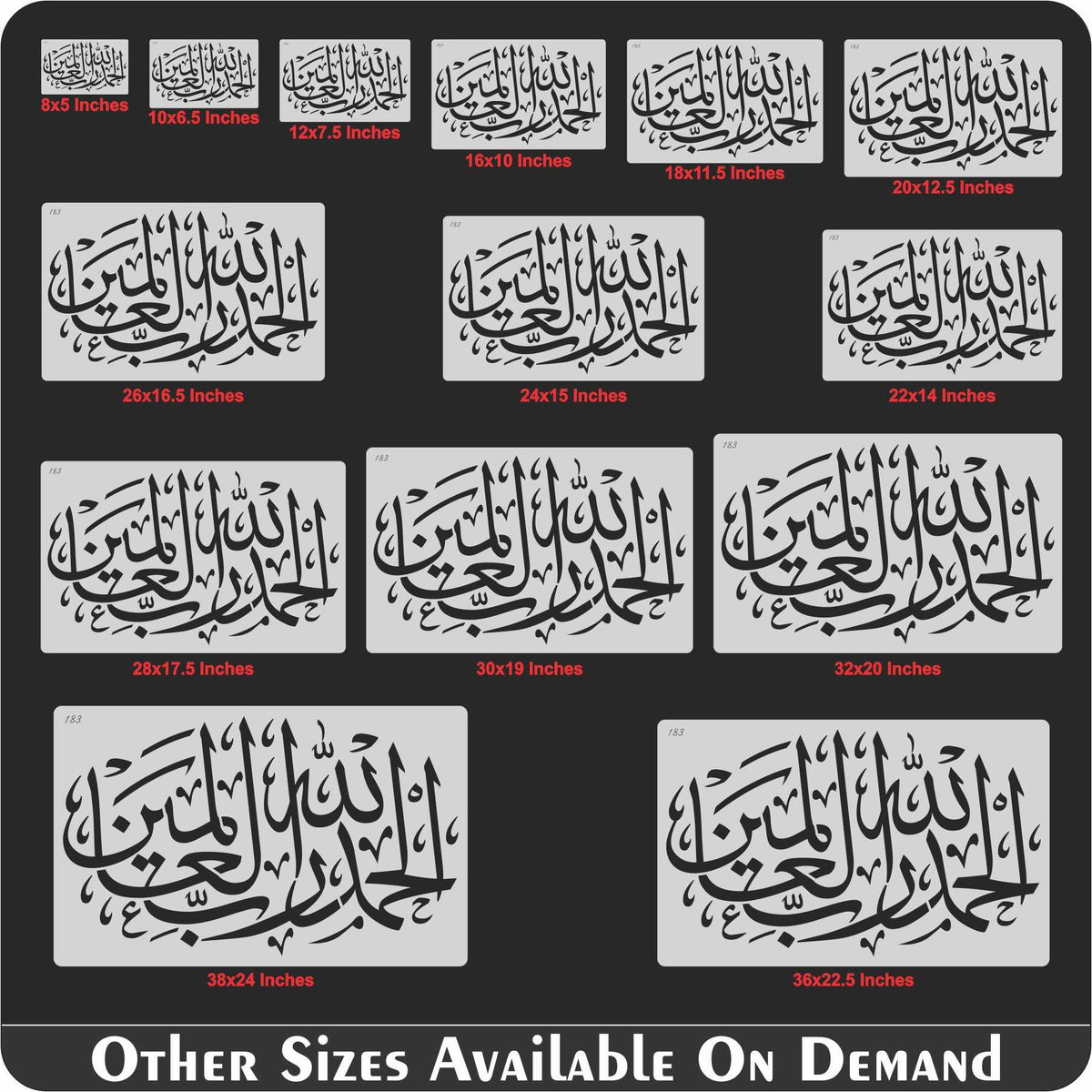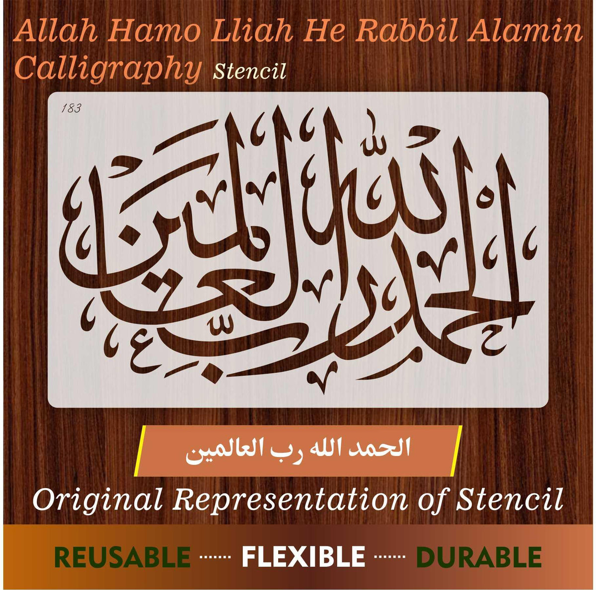 Islamic Calligraphy Stencil of Alhamdulillahi Rabbil Alamin  For wall decoration, used for Canvas and scrapbooking, Our wall stencils are unbreakable and reusable, which can be used with different kinds of paints and techniques, find more calligraphy stencils, floral stencils, Mandela stencils, in our store.