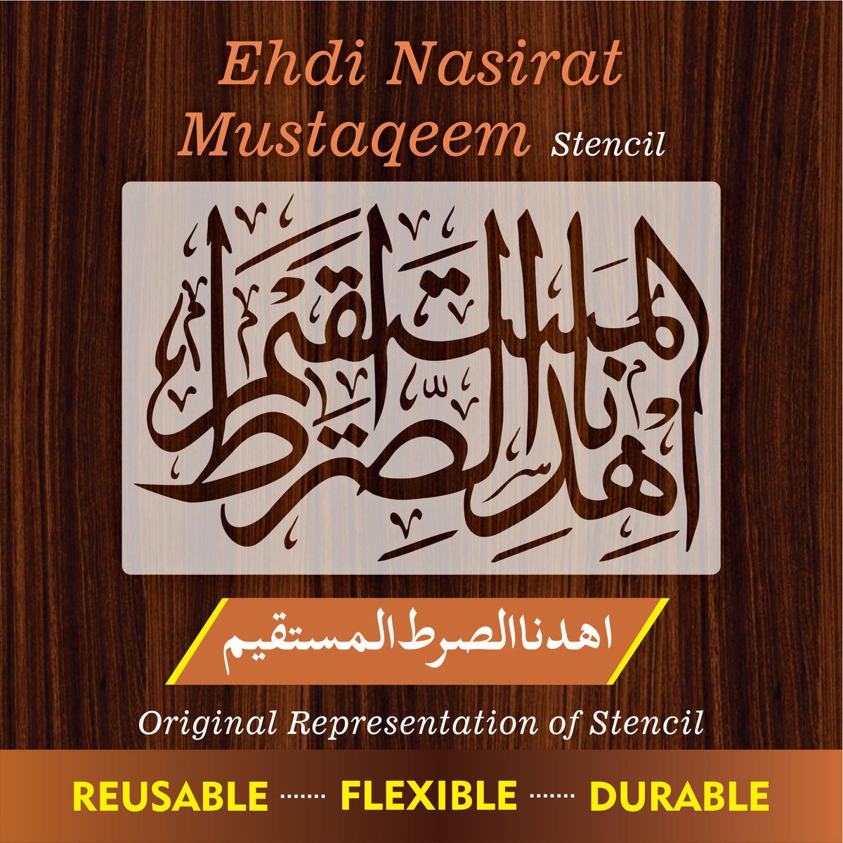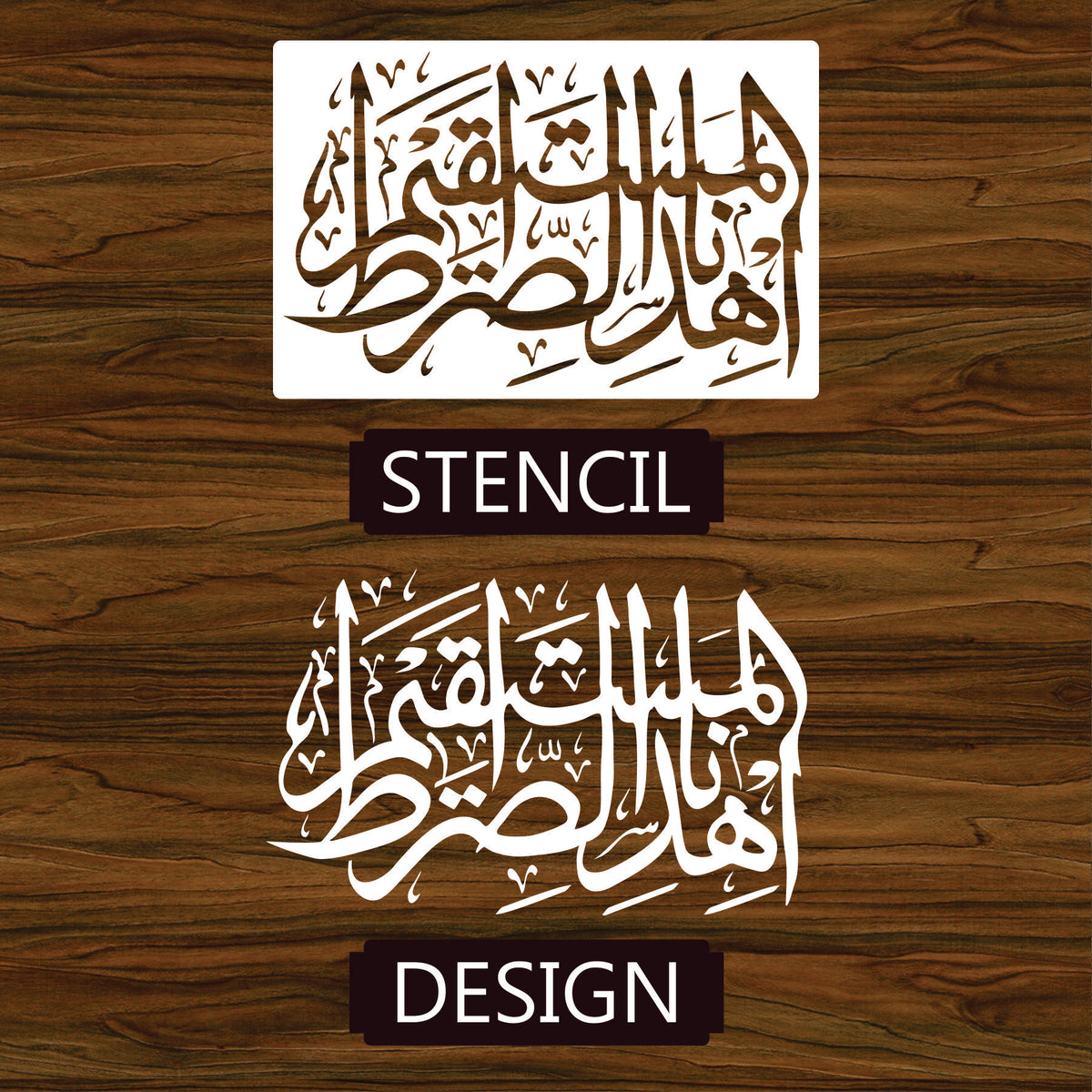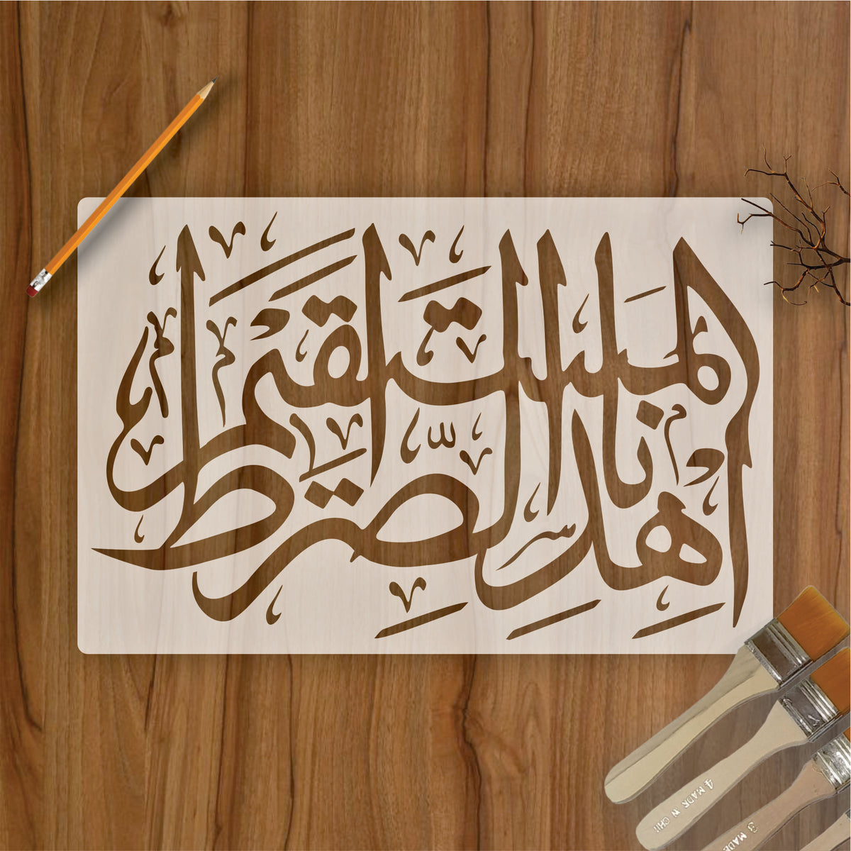 Islamic Calligraphy Stencil of Ehdi Nas Sirat Al Mustaqeem For wall decoration, used for Canvas and scrapbooking, Our wall stencils are unbreakable and reusable, which can be used with different kinds of paints and techniques, find more calligraphy stencils, floral stencils, Mandela stencils, in our store.