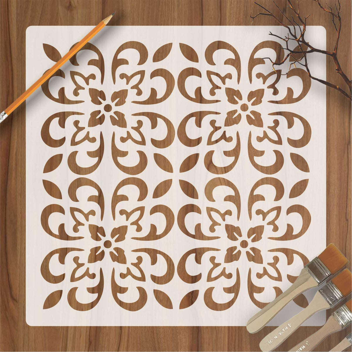 Floral Motif Reusable Stencil For wall decoration, used for Canvas and scrapbooking, Our wall stencils are unbreakable and reusable, which can be used with different kind of paints and techniques, find more imart stencils, floral stencils, Mandela stencils, in our store.