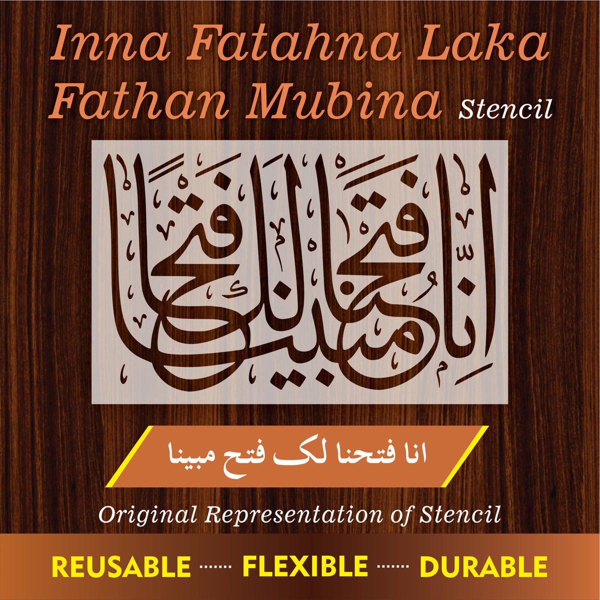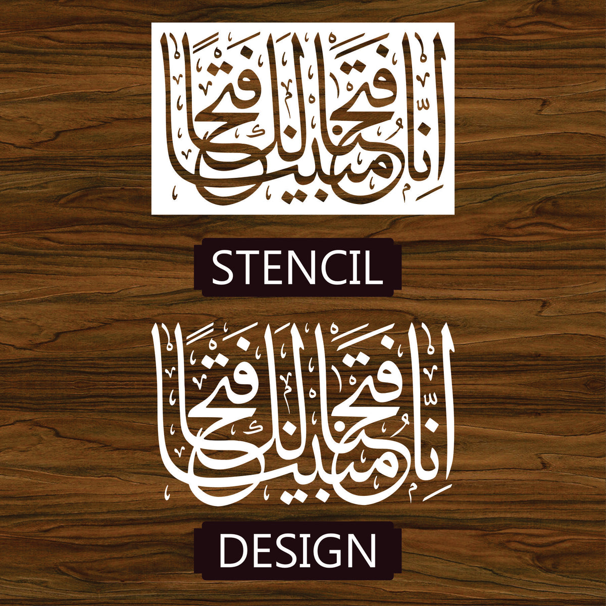 Islamic Calligraphy Stencil of Ina Fathnaa Laka Fathen Mubeena Calligraphy Islamic For wall decoration, used for Canvas and scrapbooking, Our wall stencils are unbreakable and reusable, which can be used with different kinds of paints and techniques, find more calligraphy stencils, floral stencils, Mandela stencils, in our store.