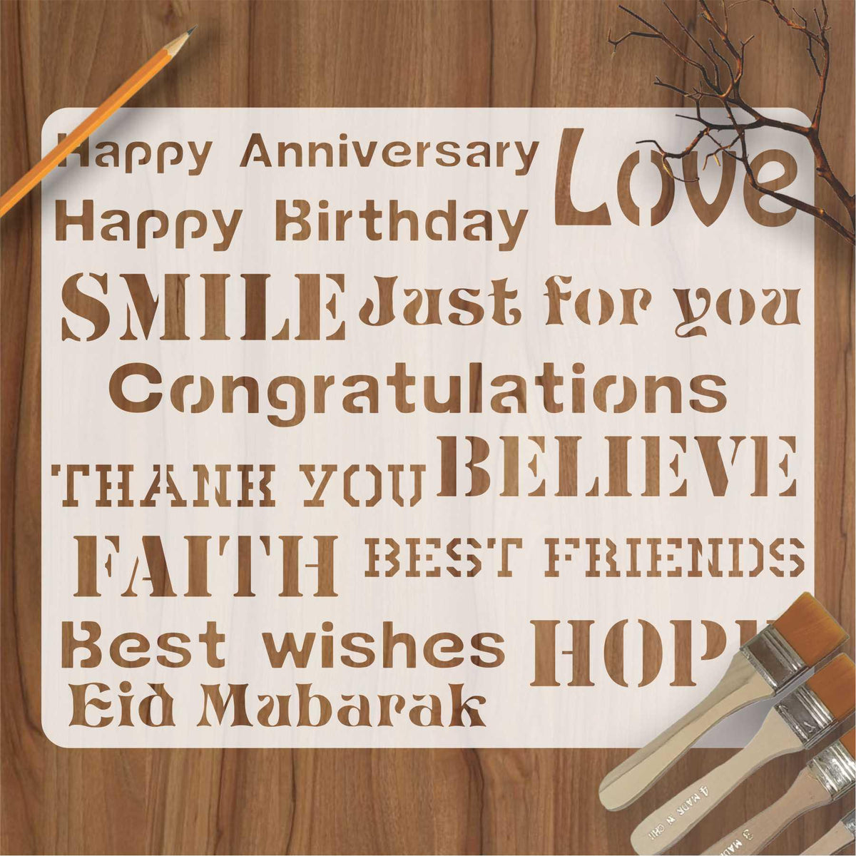 Wishes Quotes Stencil For Gift And Wall Decoration, Used For Canvas And Scrapbooking, Our Wall Stencils Are Unbreakable And Reusable, Which Can Be Used With Different Kind Of Paints And Techniques, Find More Imart Stencils, Floral Stencils, Mandela Stencils, In Our Store.