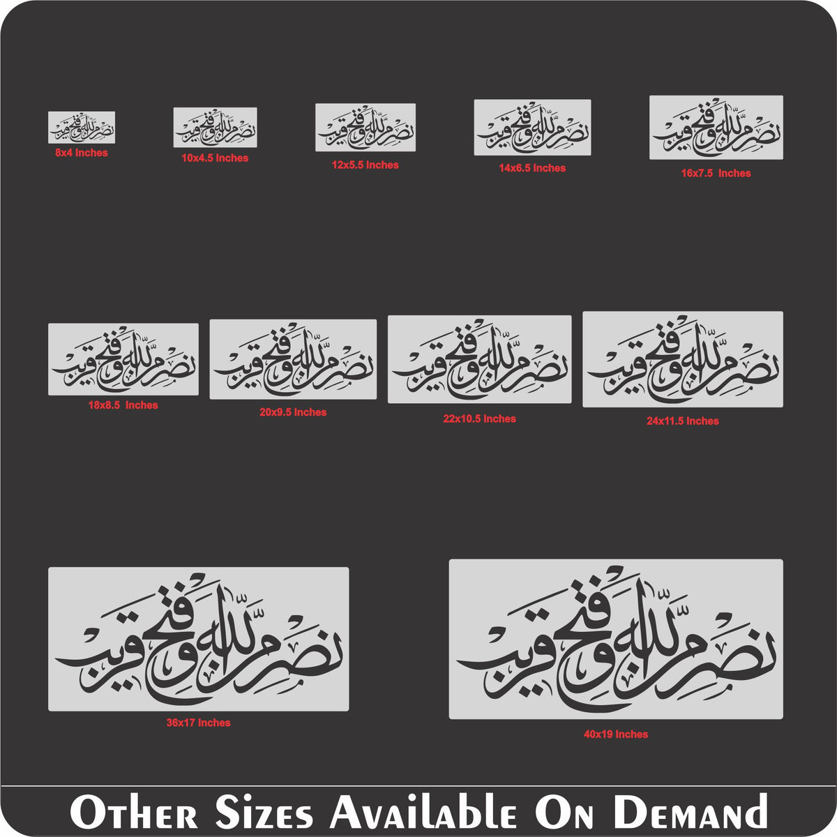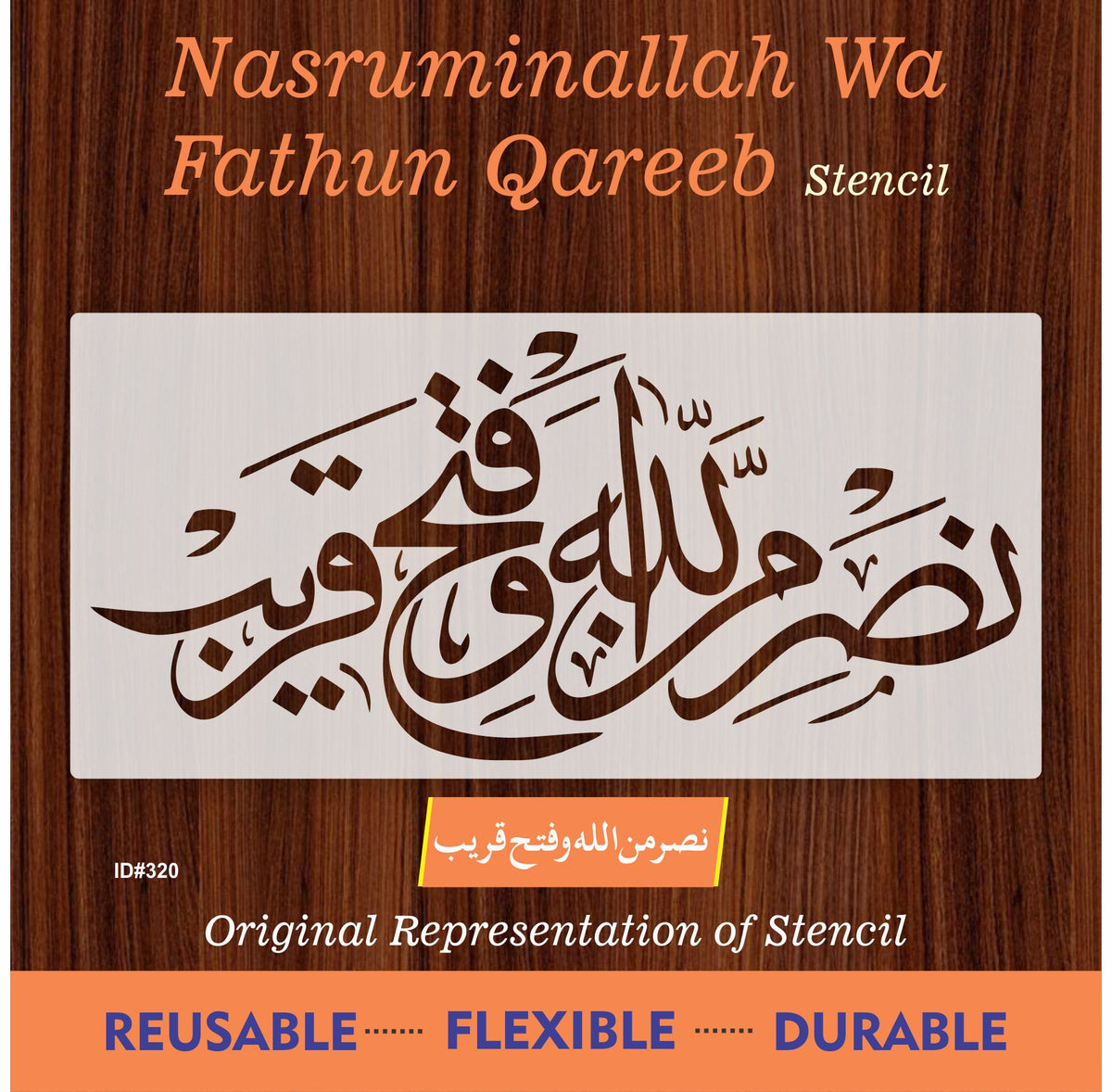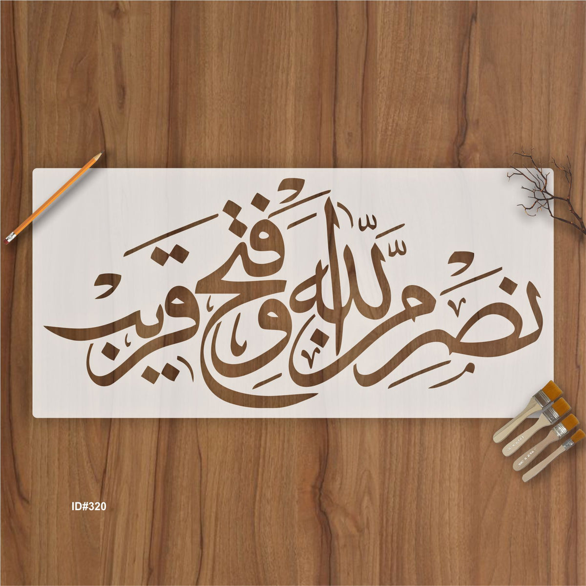 Islamic Calligraphy Stencil of Nasrum Minallah He Wa Fatthun Qareeb Calligraphy Islamic For wall decoration, used for Canvas and scrapbooking, Our wall stencils are unbreakable and reusable, which can be used with different kinds of paints and techniques, find more calligraphy stencils, floral stencils, Mandela stencils, in our store.