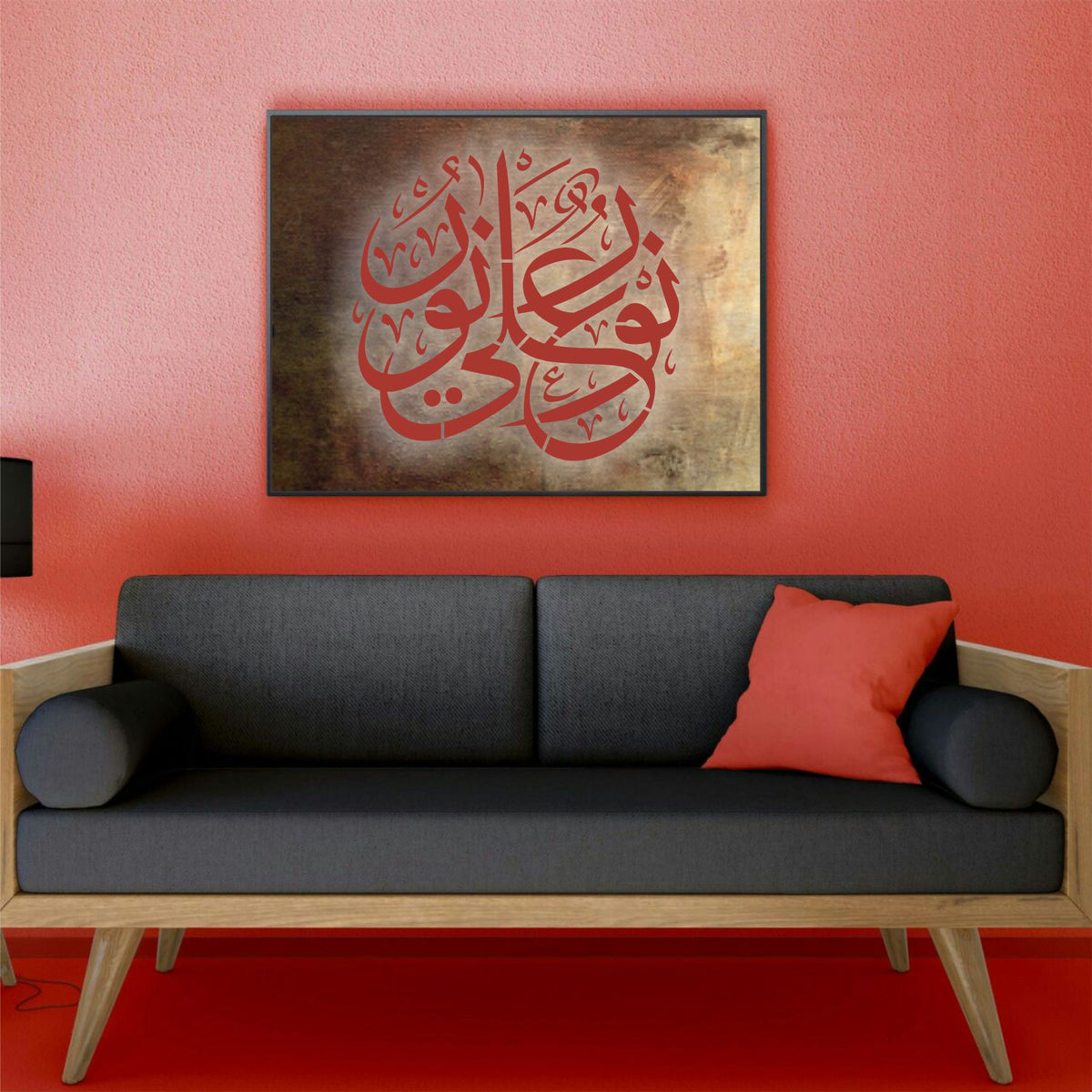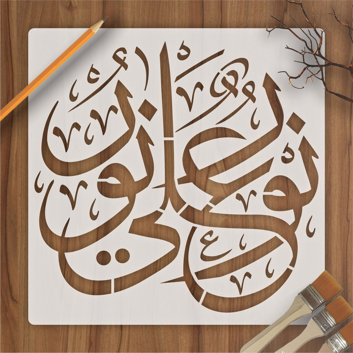 Nooron Ala Noor Calligraphy Islamic Reusable Stencil for Canvas and wall paintingl.ID# 400
