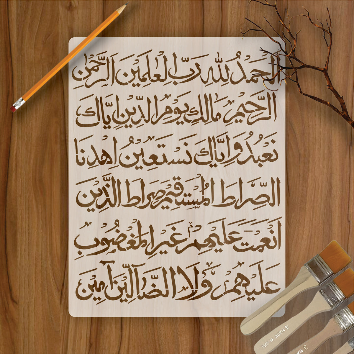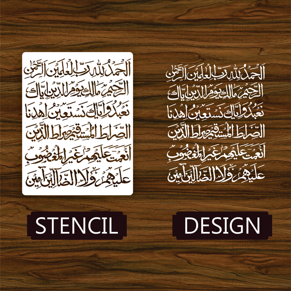 Islamic Calligraphy Stencil of Surah Fatiha  For wall decoration, used for Canvas and scrapbooking, Our wall stencils are unbreakable and reusable, which can be used with different kinds of paints and techniques, find more calligraphy stencils, floral stencils, Mandela stencils, in our store.