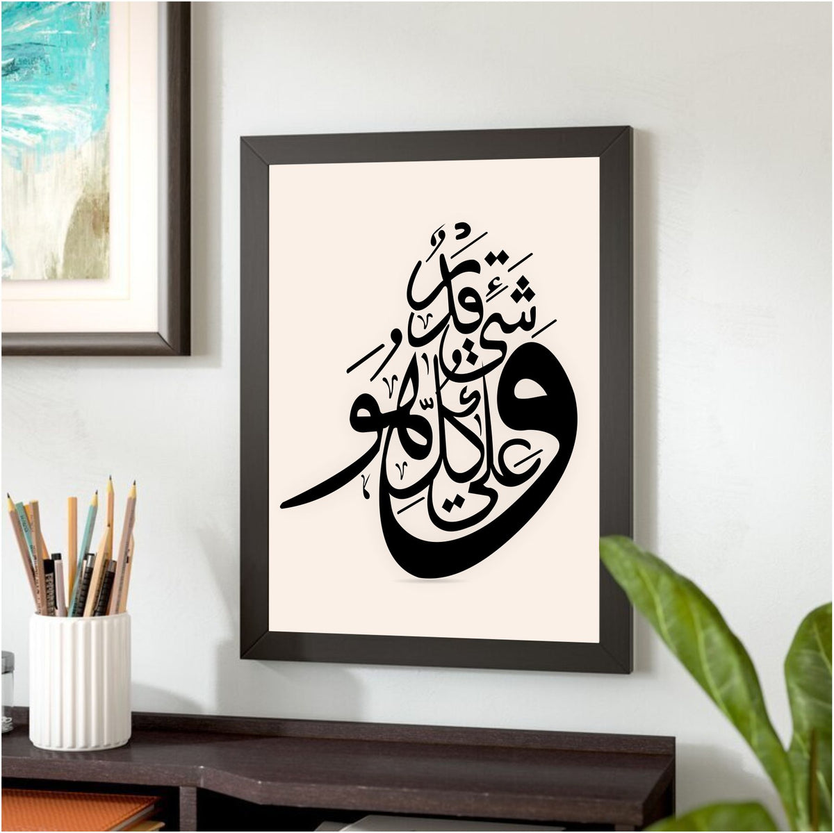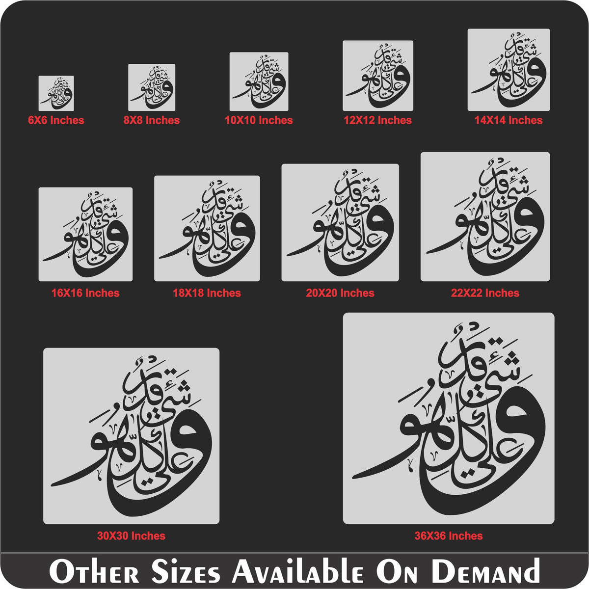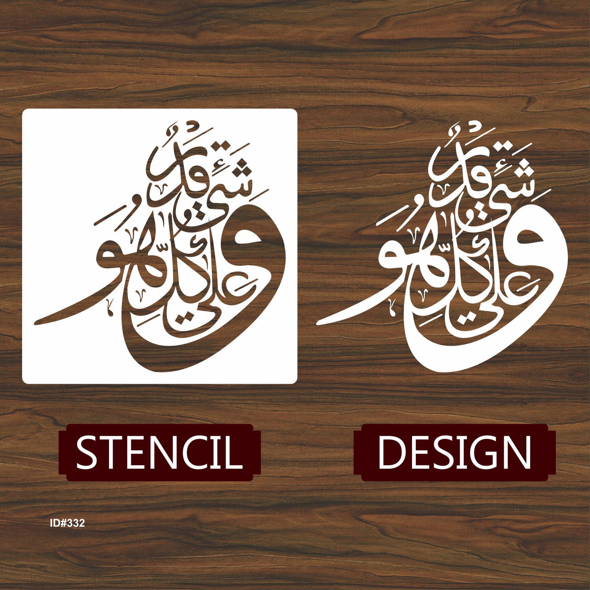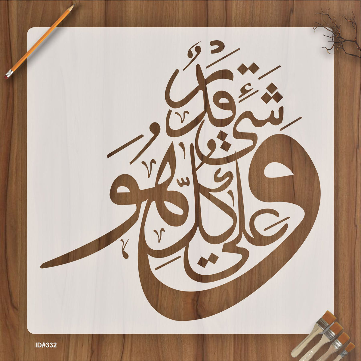 Islamic Calligraphy Stencil of Wa Huwa Ala Kulli Shayin Qadeer Calligraphy Islamic For wall decoration, used for Canvas and scrapbooking, Our wall stencils are unbreakable and reusable, which can be used with different kinds of paints and techniques, find more calligraphy stencils, floral stencils, Mandela stencils, in our store.